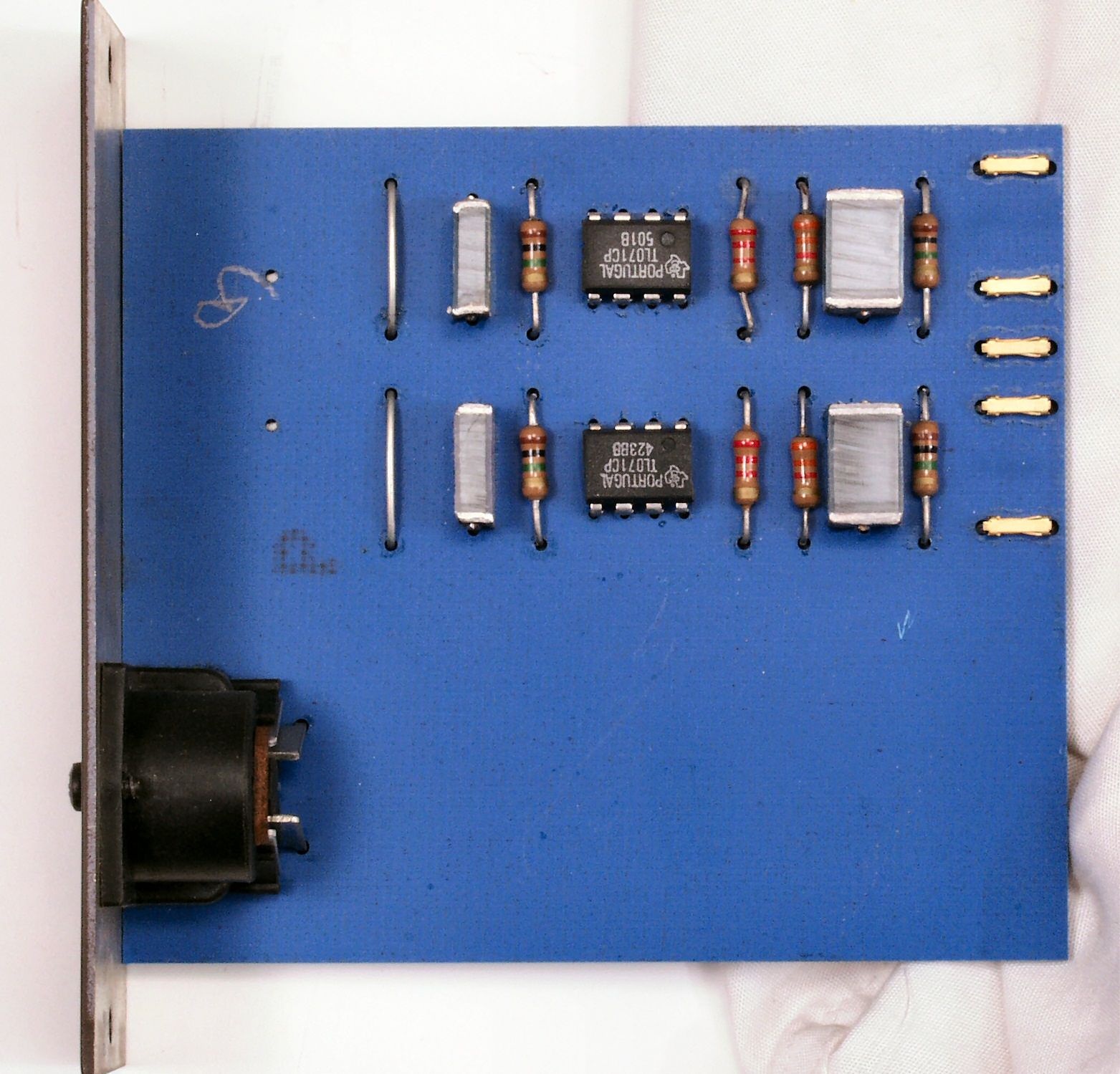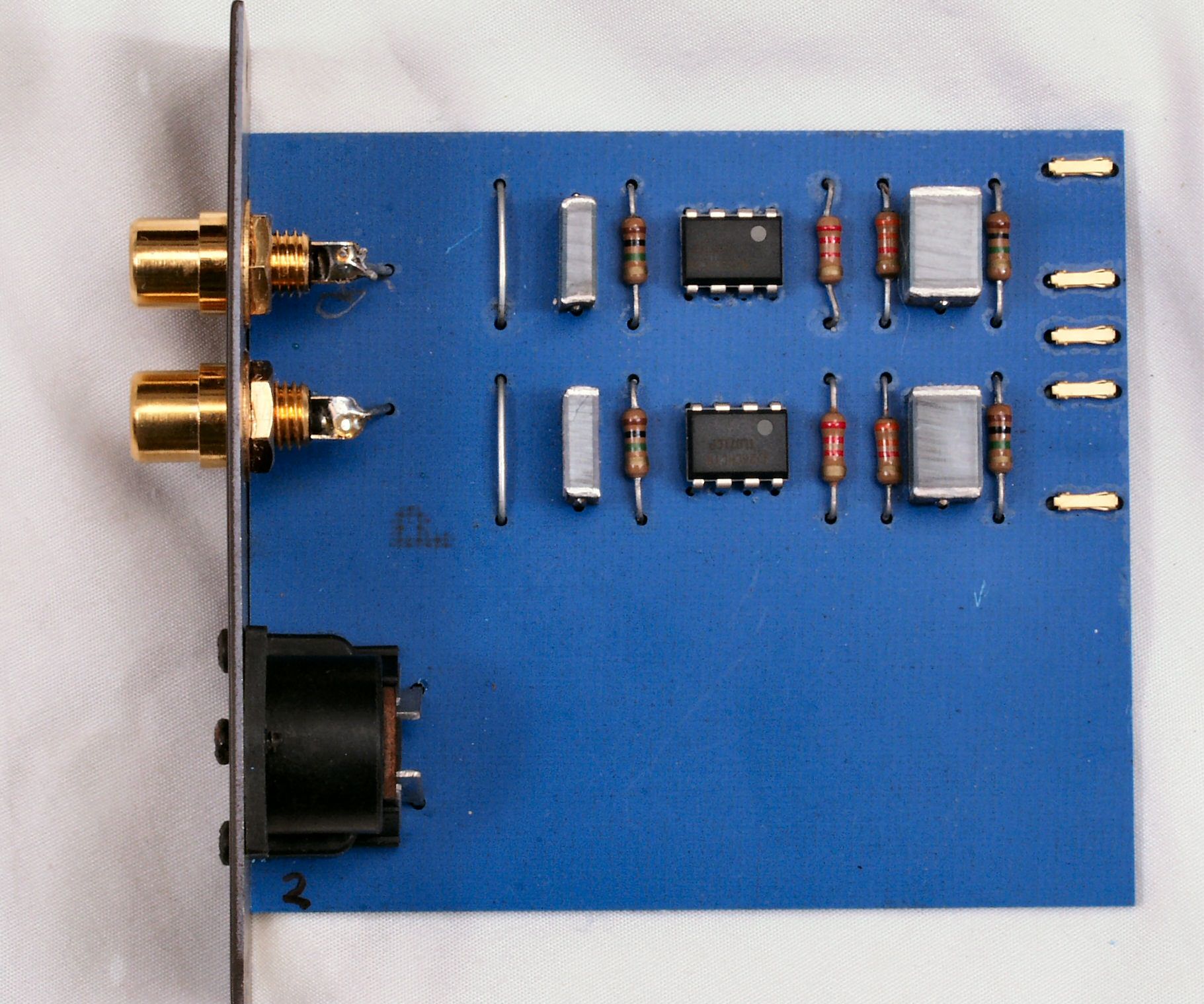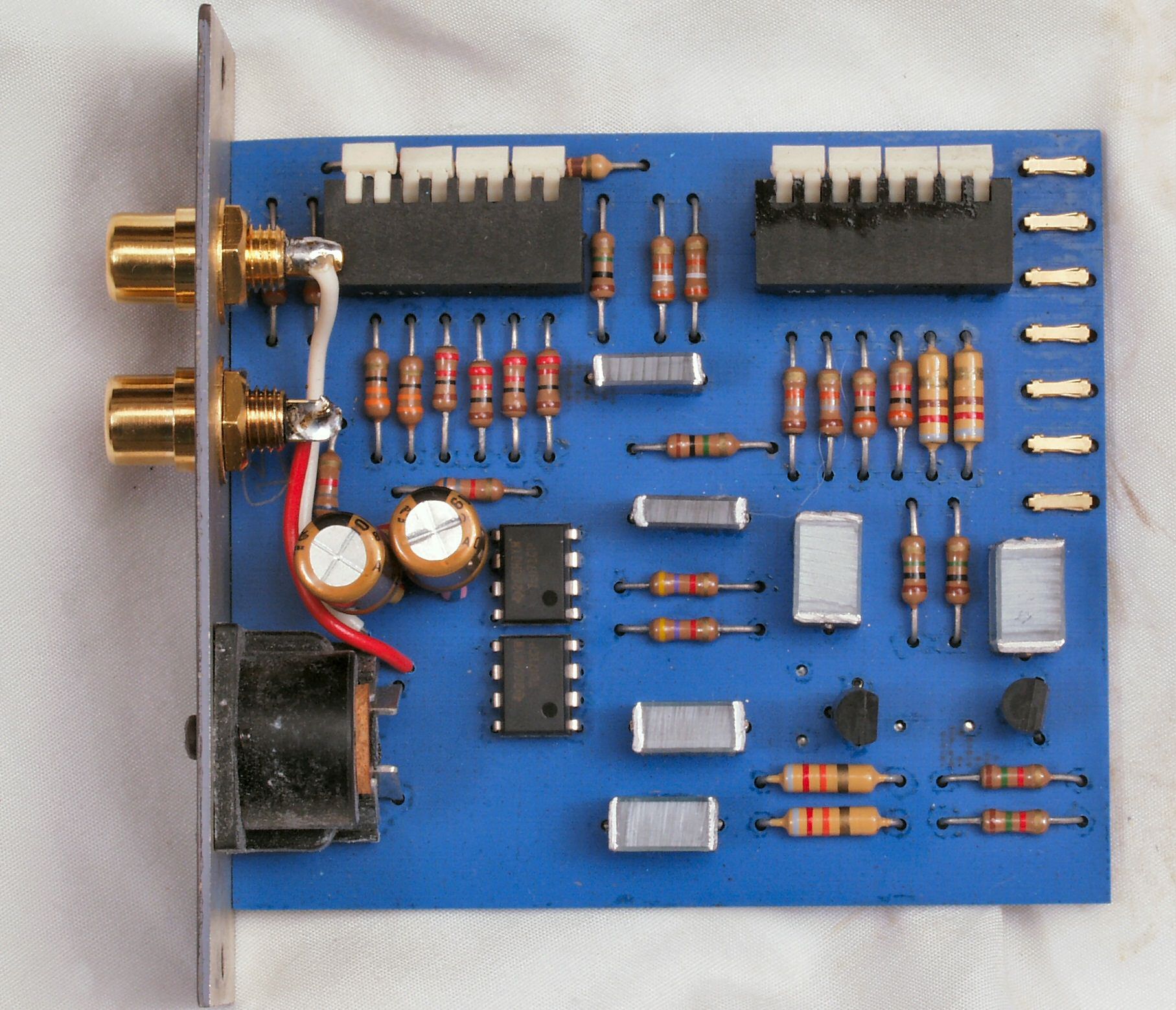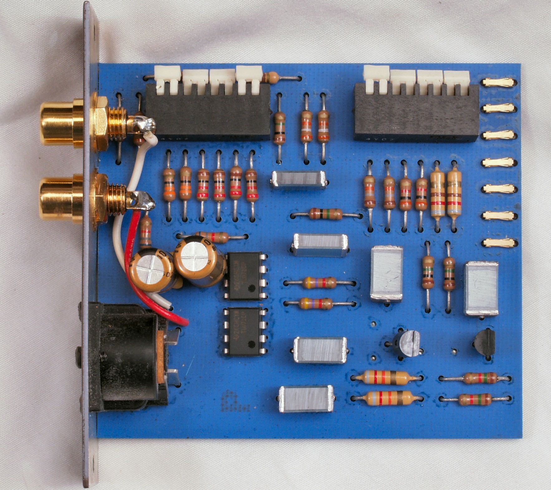 C2B. 修理後 TAPE2入力基板 OP−AMP2個、電解コンデンサー2個交換。RCA端子2個増設。