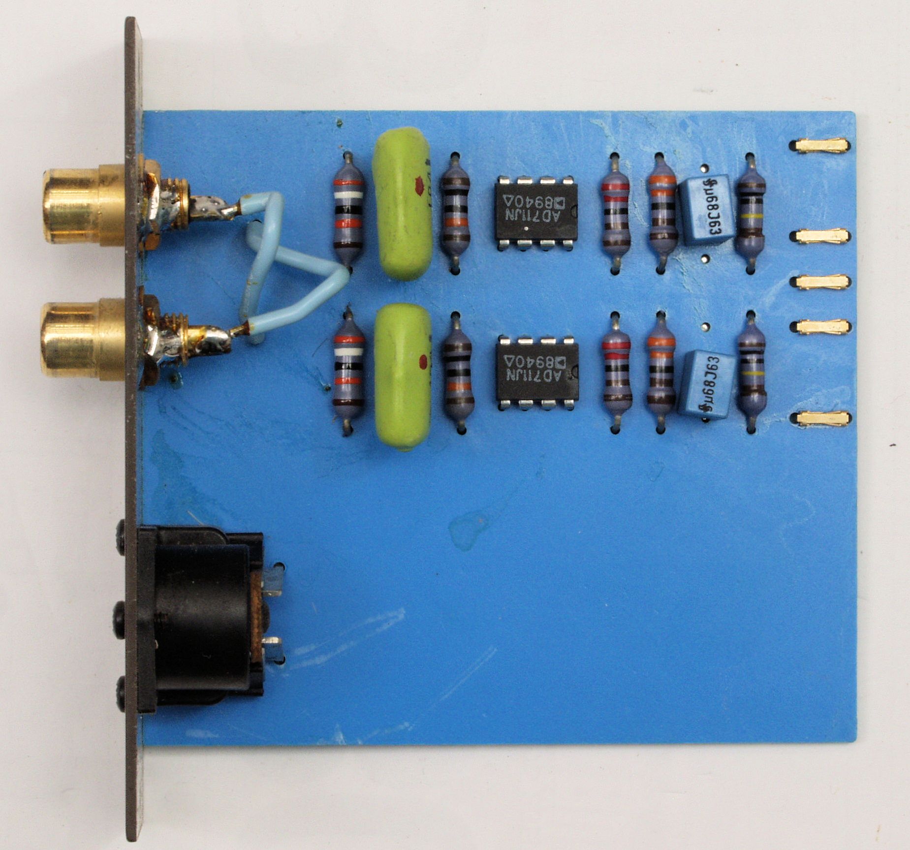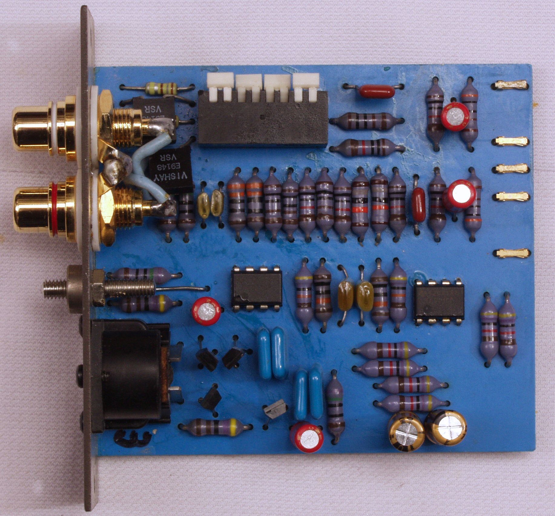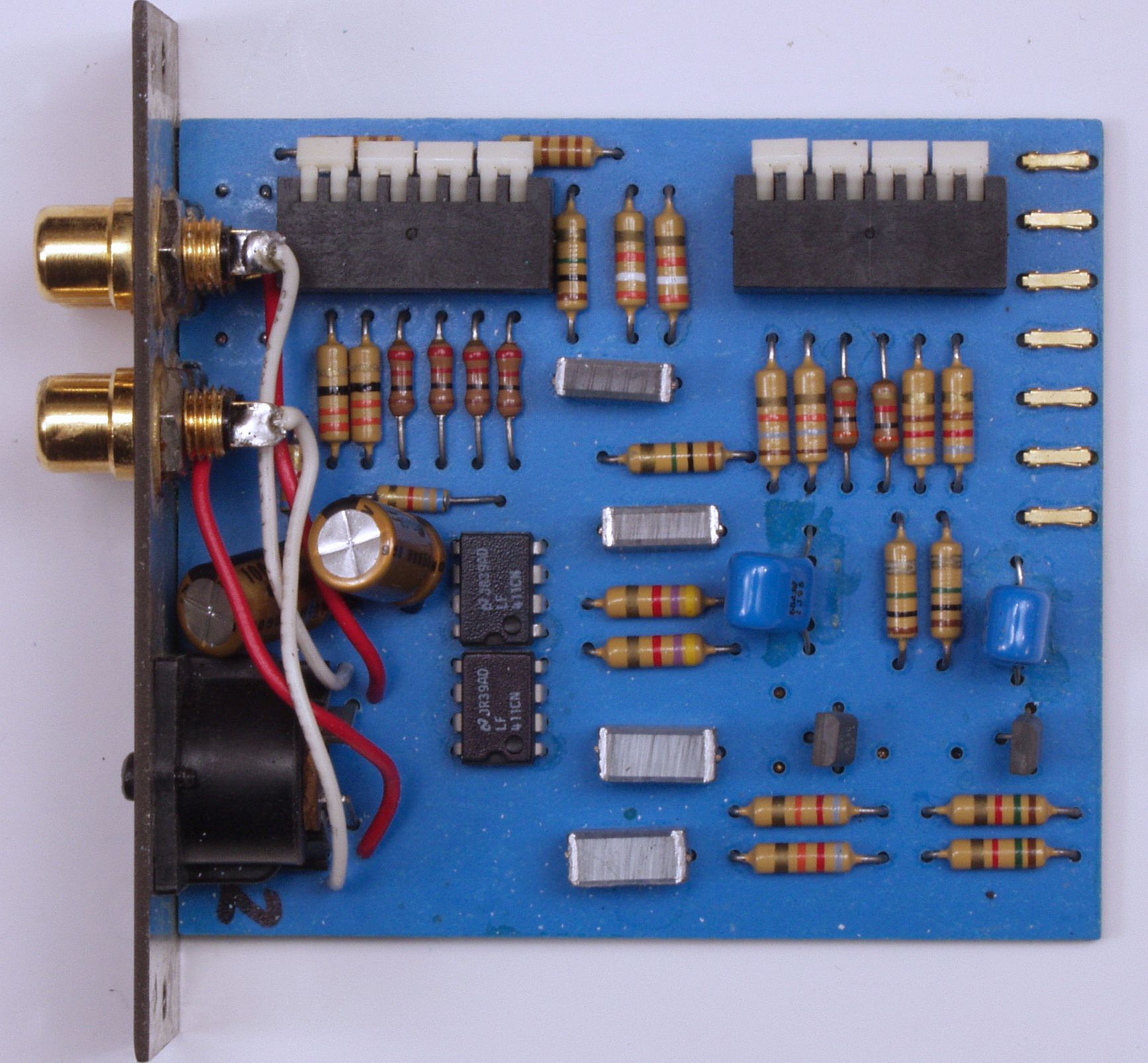 C22. 修理後 TAPE2入力基板 電解コンデンサー2個、フイルムコンデンサー2個、OP−AMP2個交換。 RCA端子4個増設。