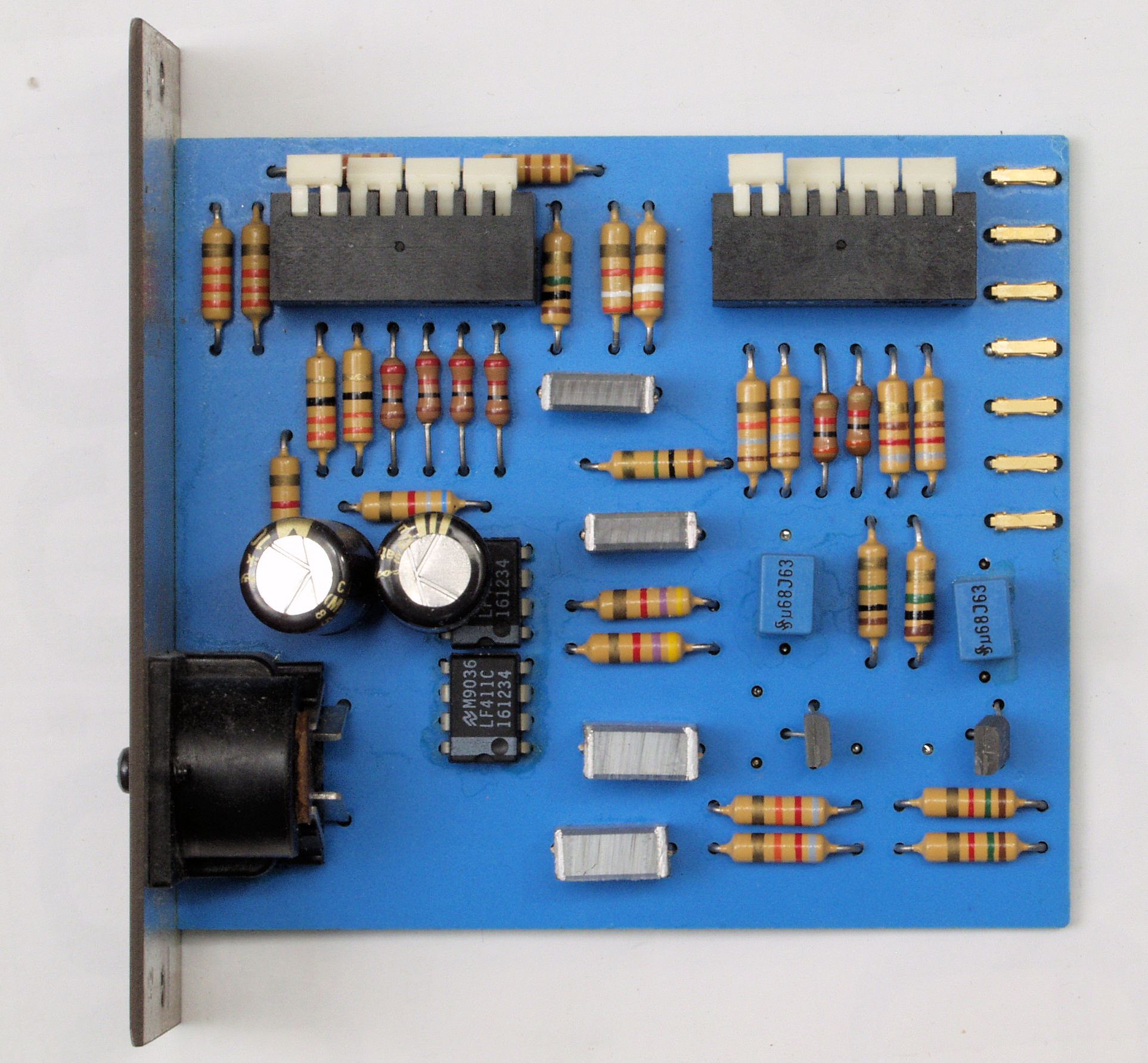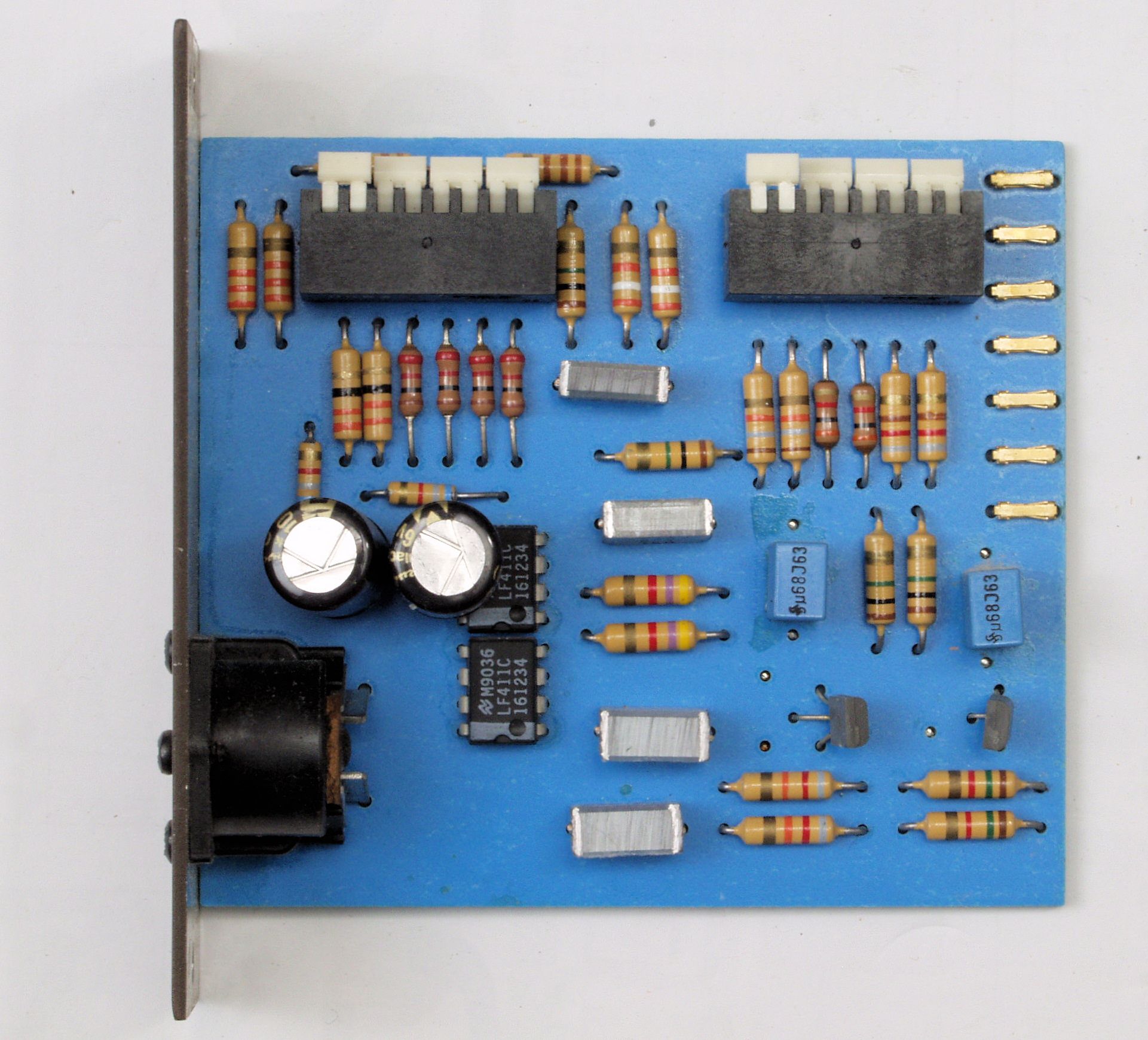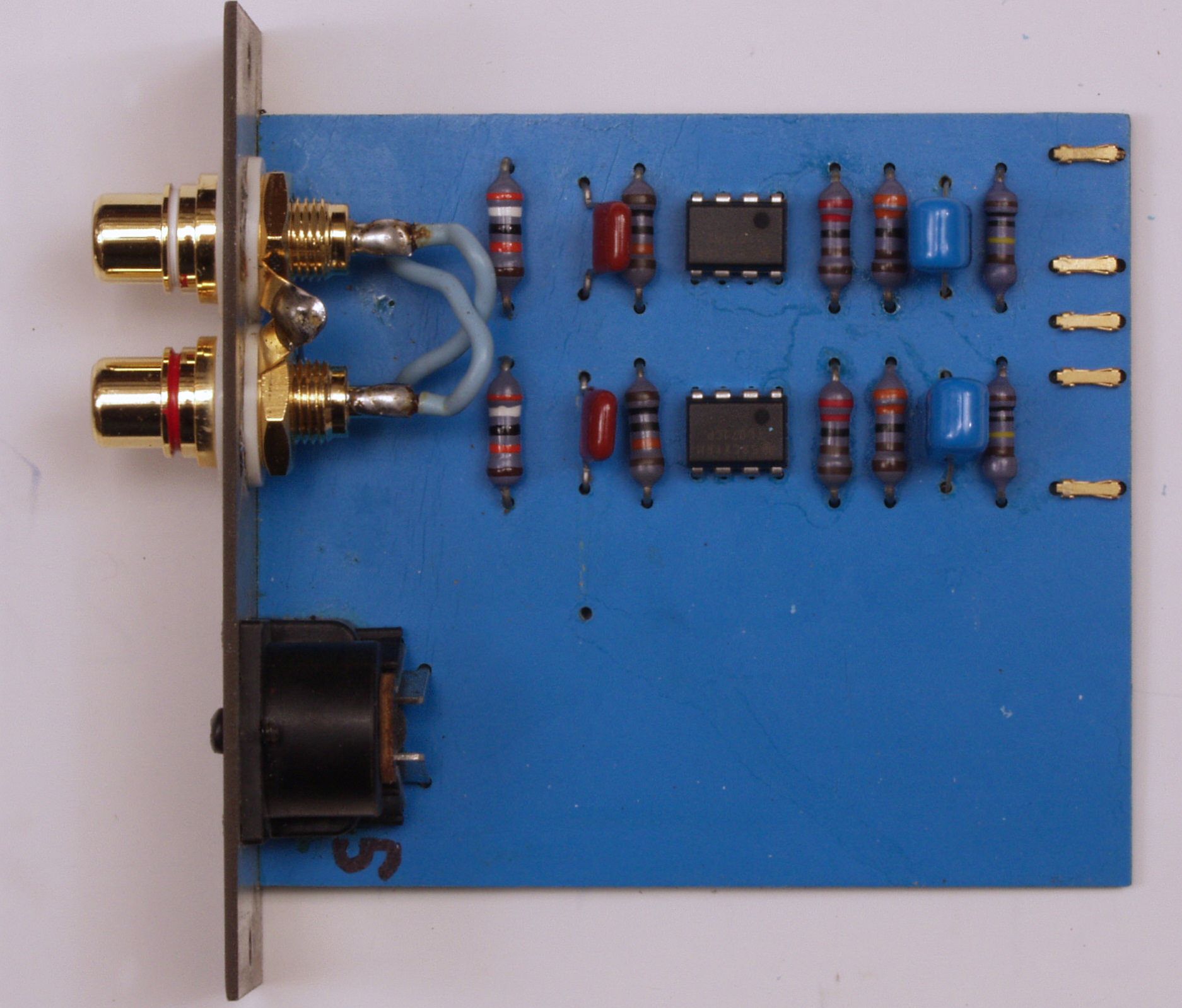 C22. 修理後 TAPE2入力基板 電解コンデンサー2個、フイルムコンデンサー2個、OP−AMP2個交換。 RCA端子4個増設。