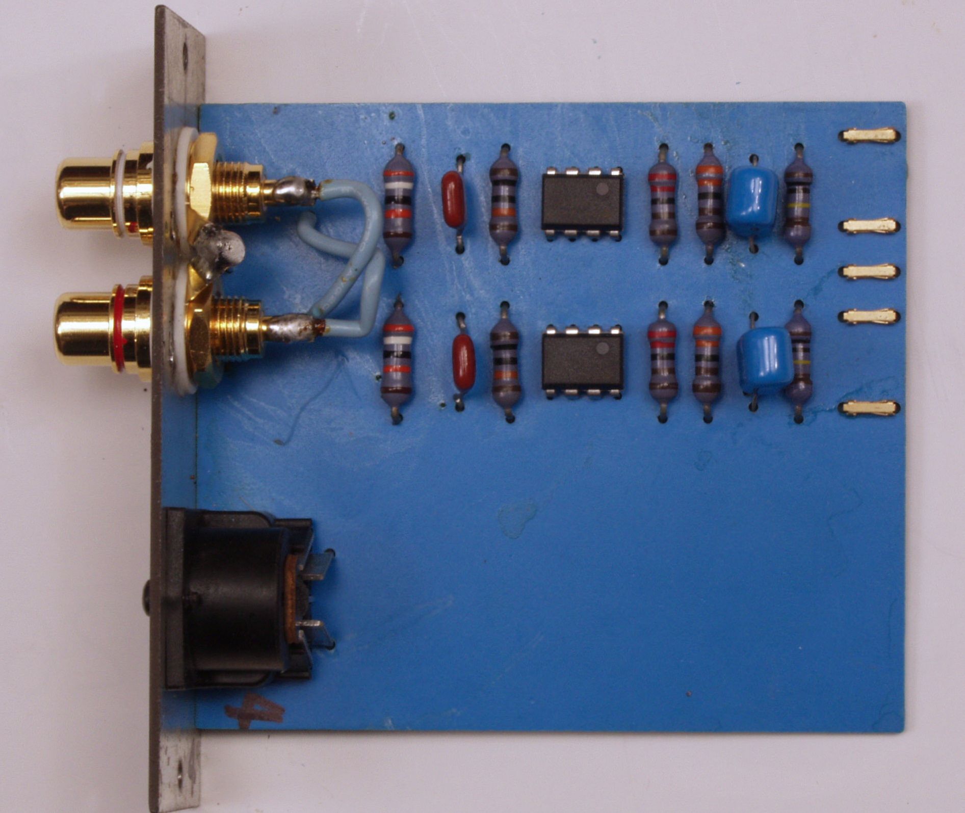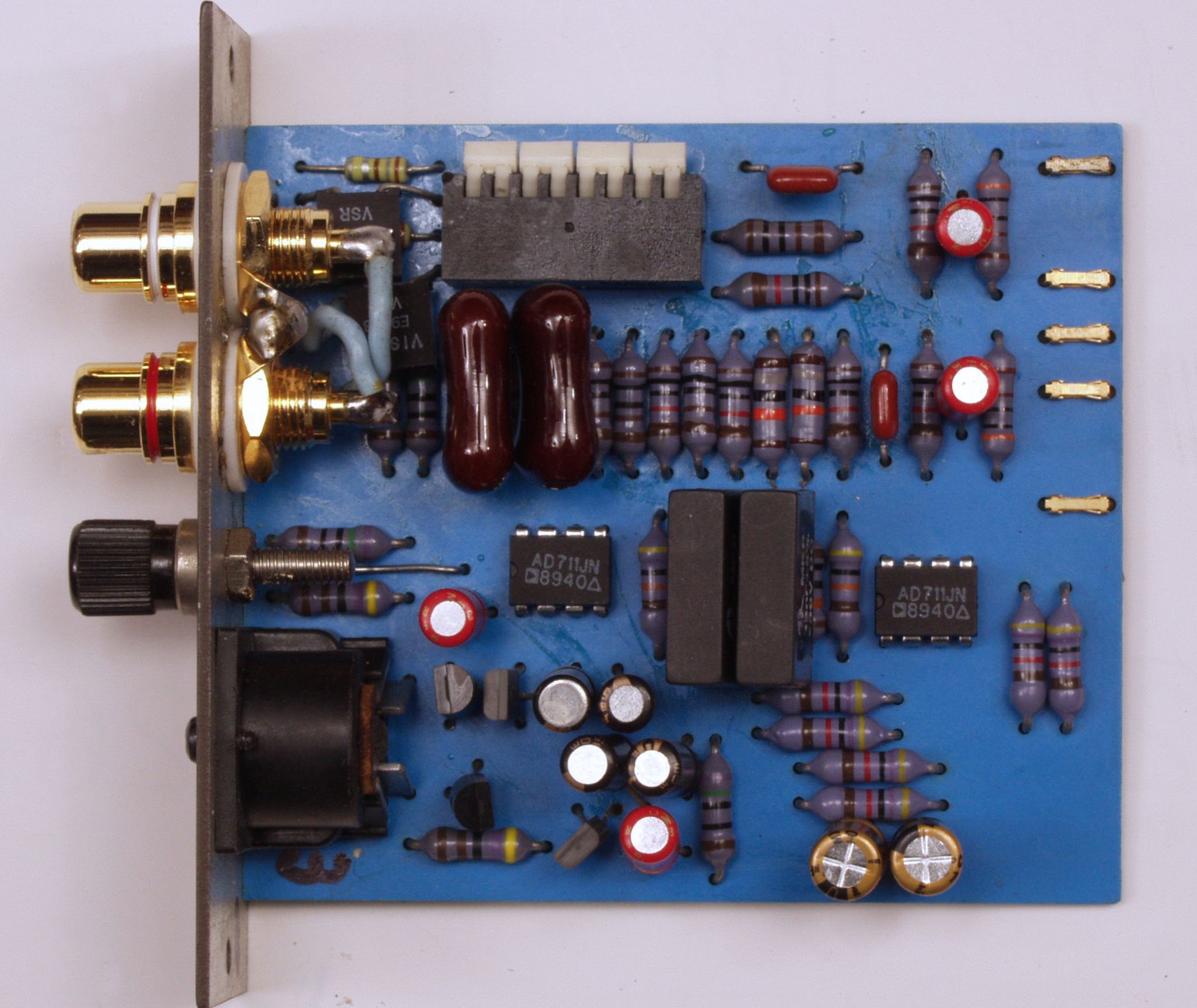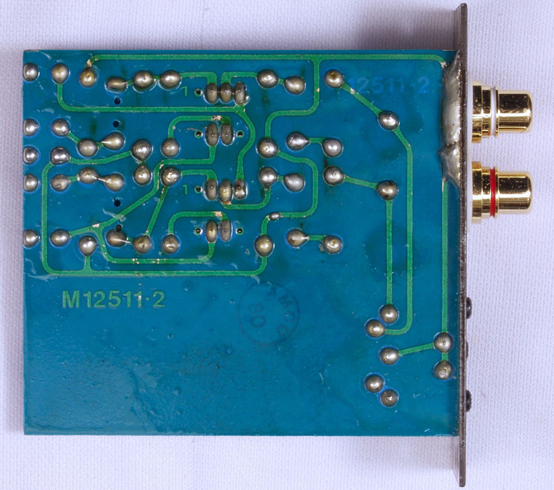 C12. 修理後  TAPE1入力基板 電解コンデンサー2個、フイルムコンデンサー2個、OP−AMP2個交換。 RCA端子2個増設。