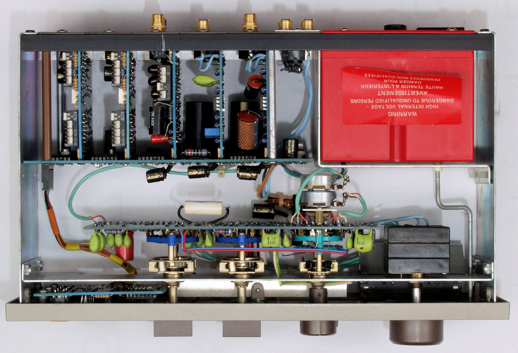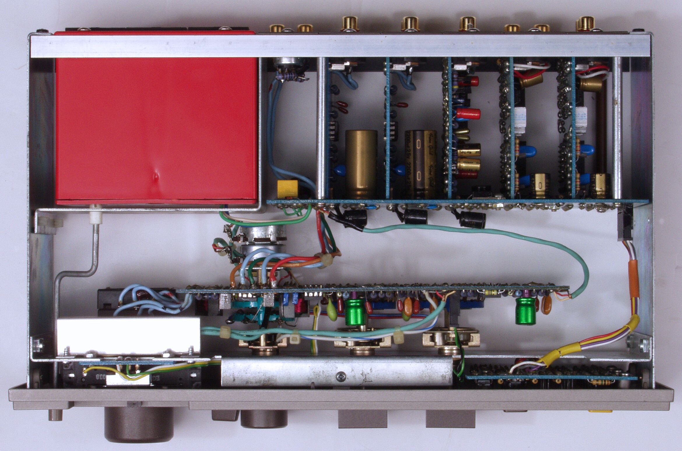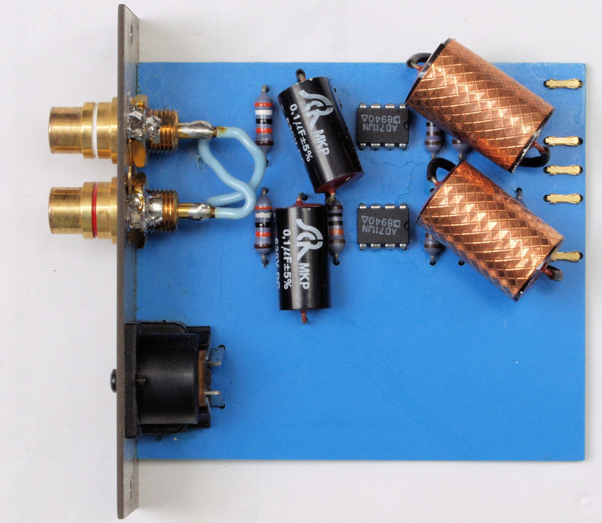 C12. 修理後  TAPE1入力基板 電解コンデンサー2個、フイルムコンデンサー2個、OP−AMP2個交換。 RCA端子2個増設。