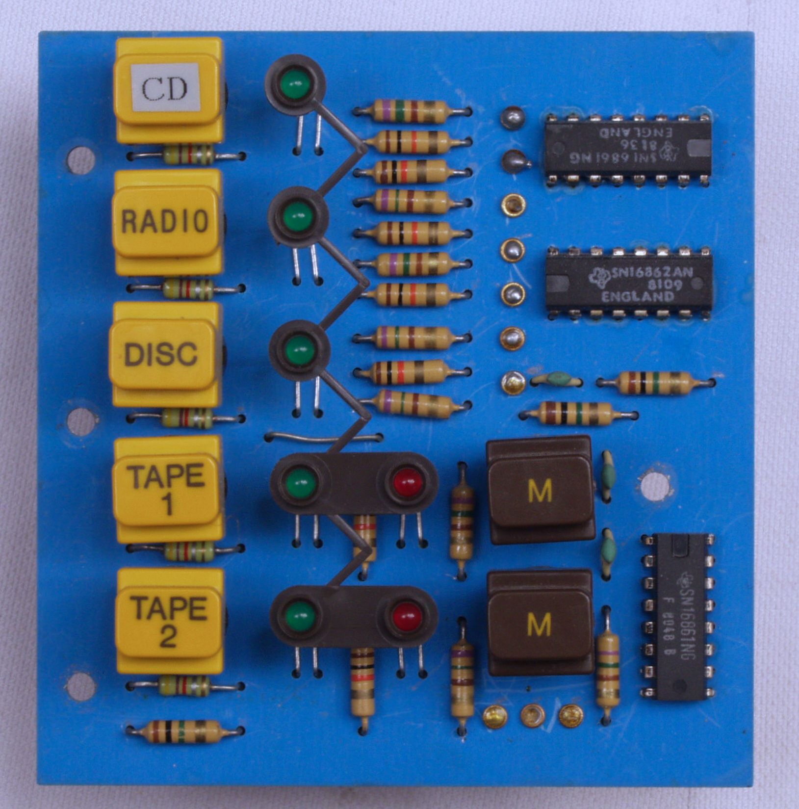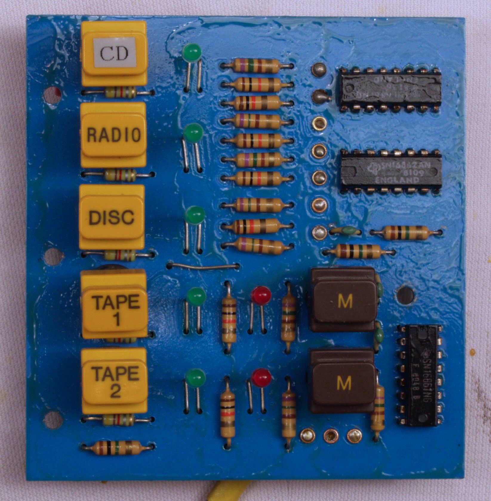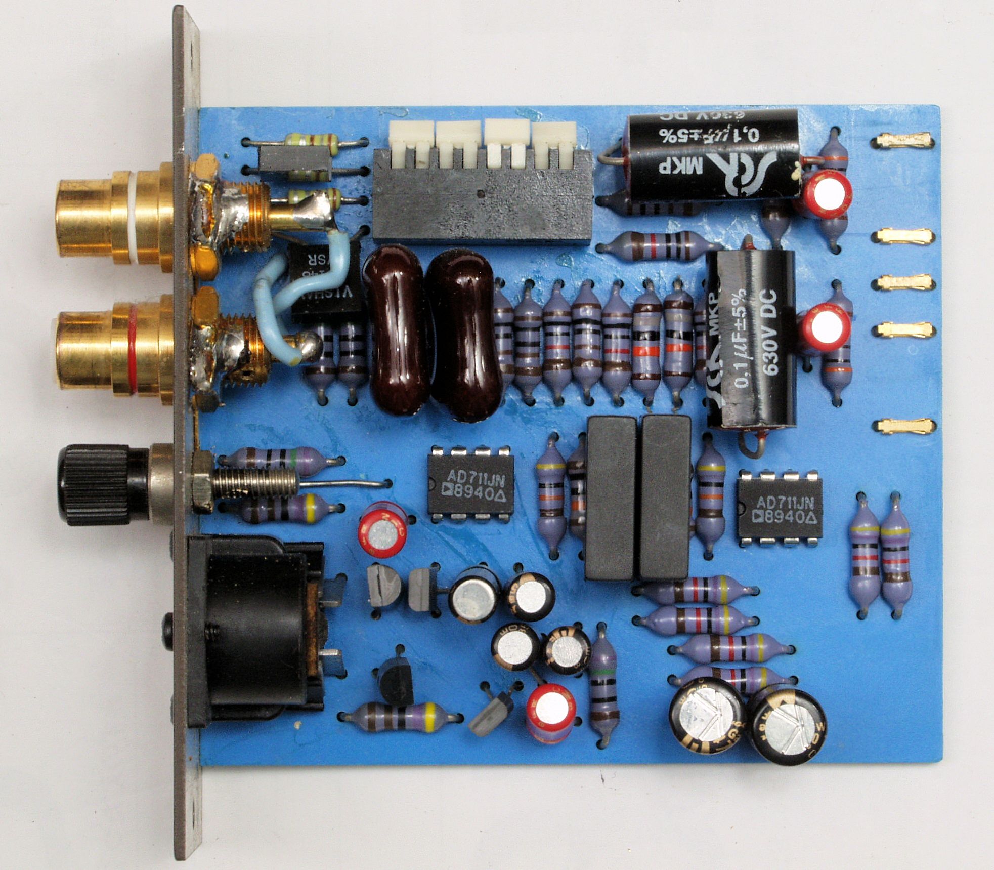 C42. 修理後  CD/AUX入力基板  フイルムコンデンサー4個、OP−AMP2個、RCA端子2個交換。