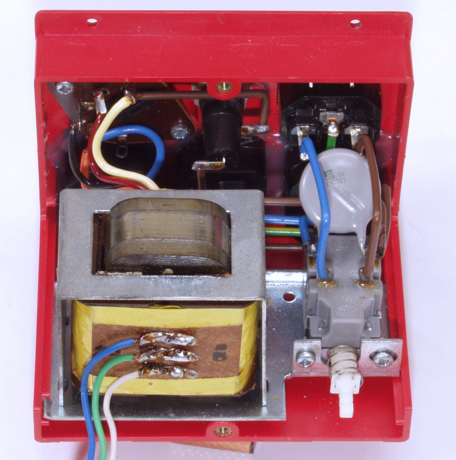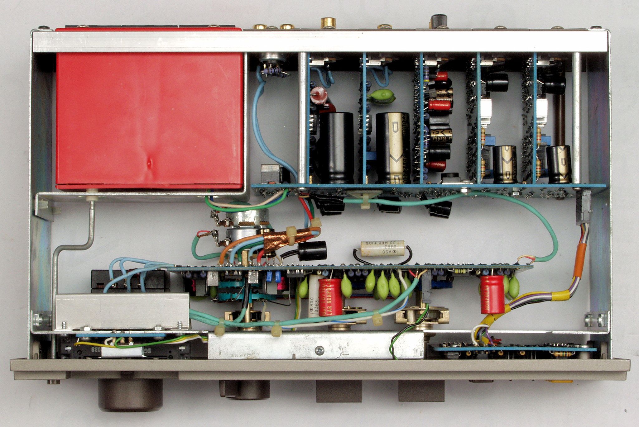 C10. 修理中 基板、 電源トランス、 前パネル等を外したシャシ。