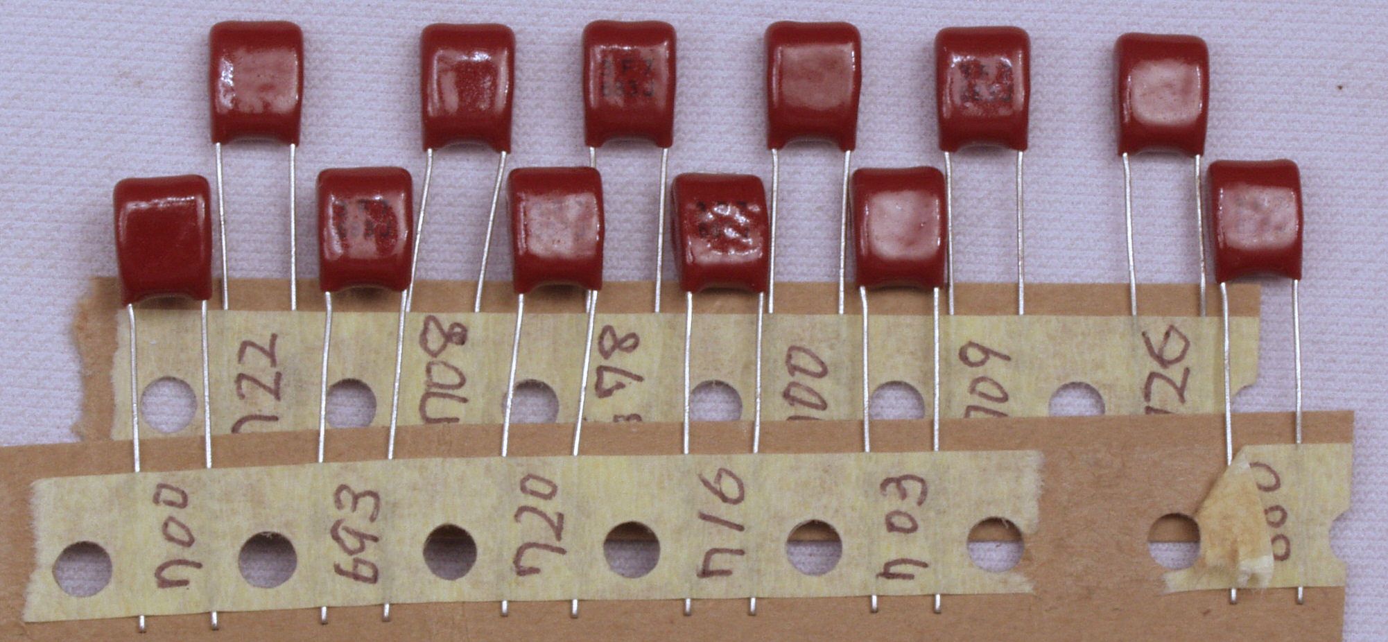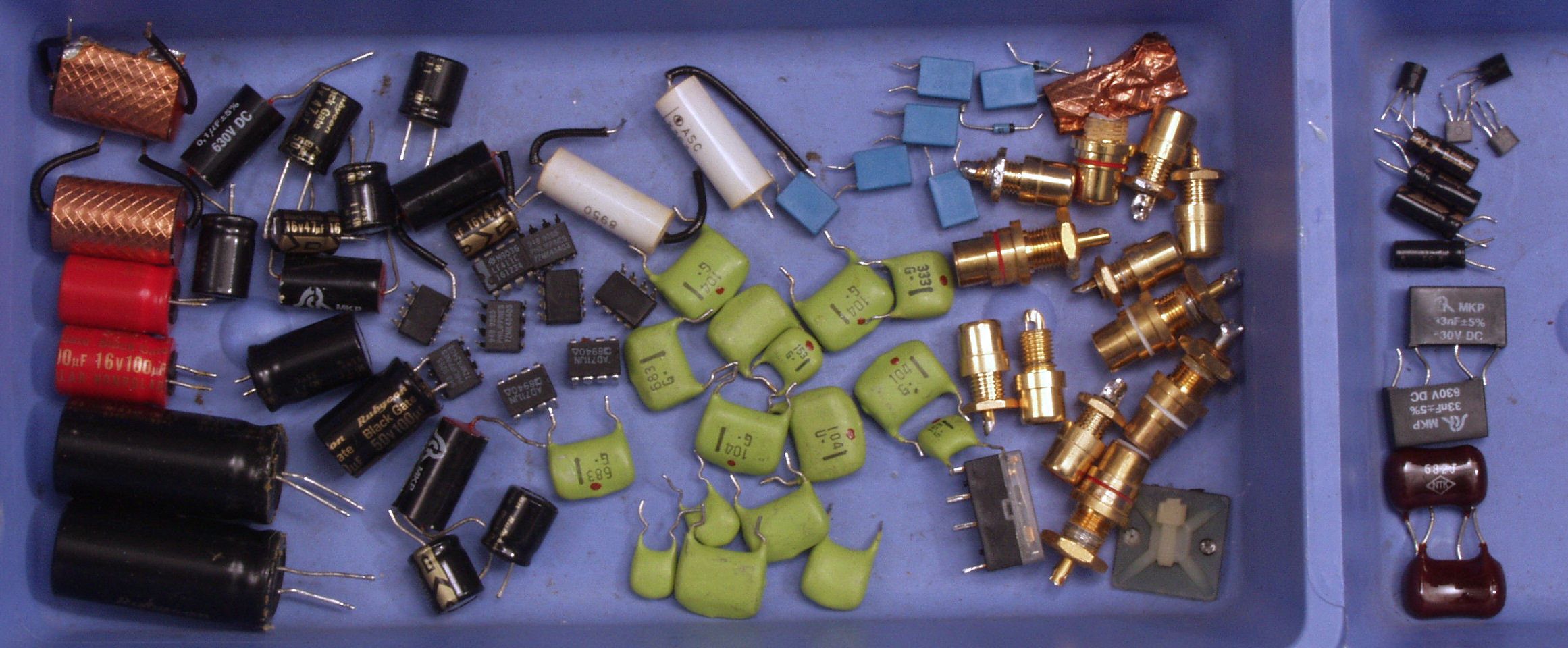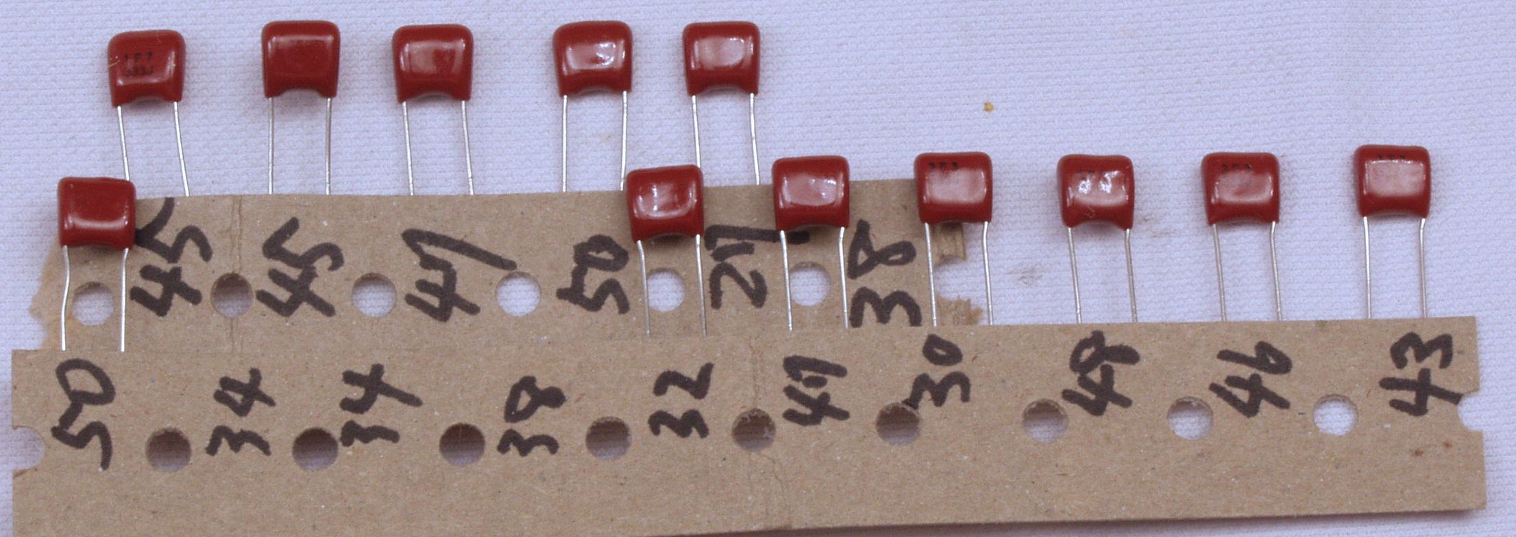 A61. 点検中 トーンコントロールに使用するフイルムコンデンサー、測定し同値を選別使用。