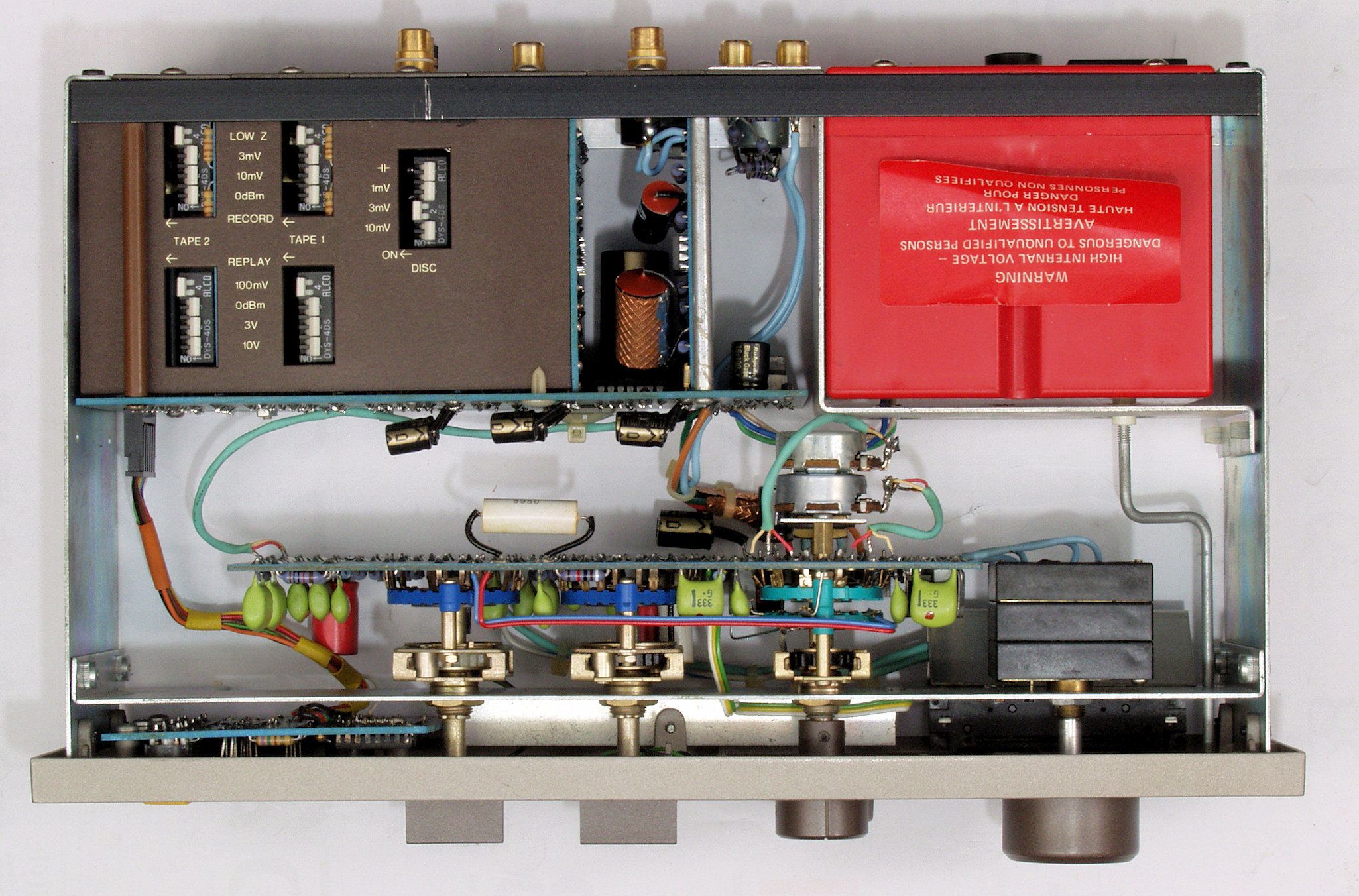 C21. 修理前  TAPE2入力基板 上のデイップSWはPlayとRecordのレベル調整