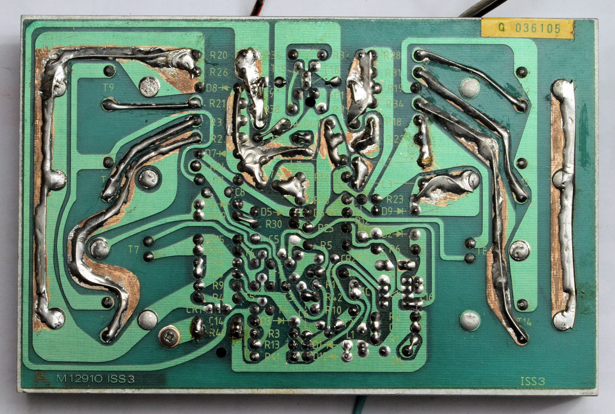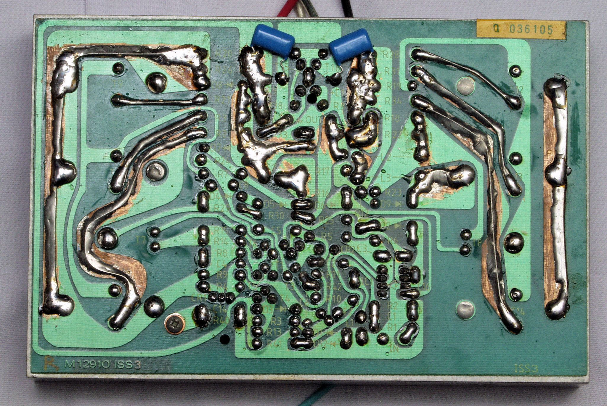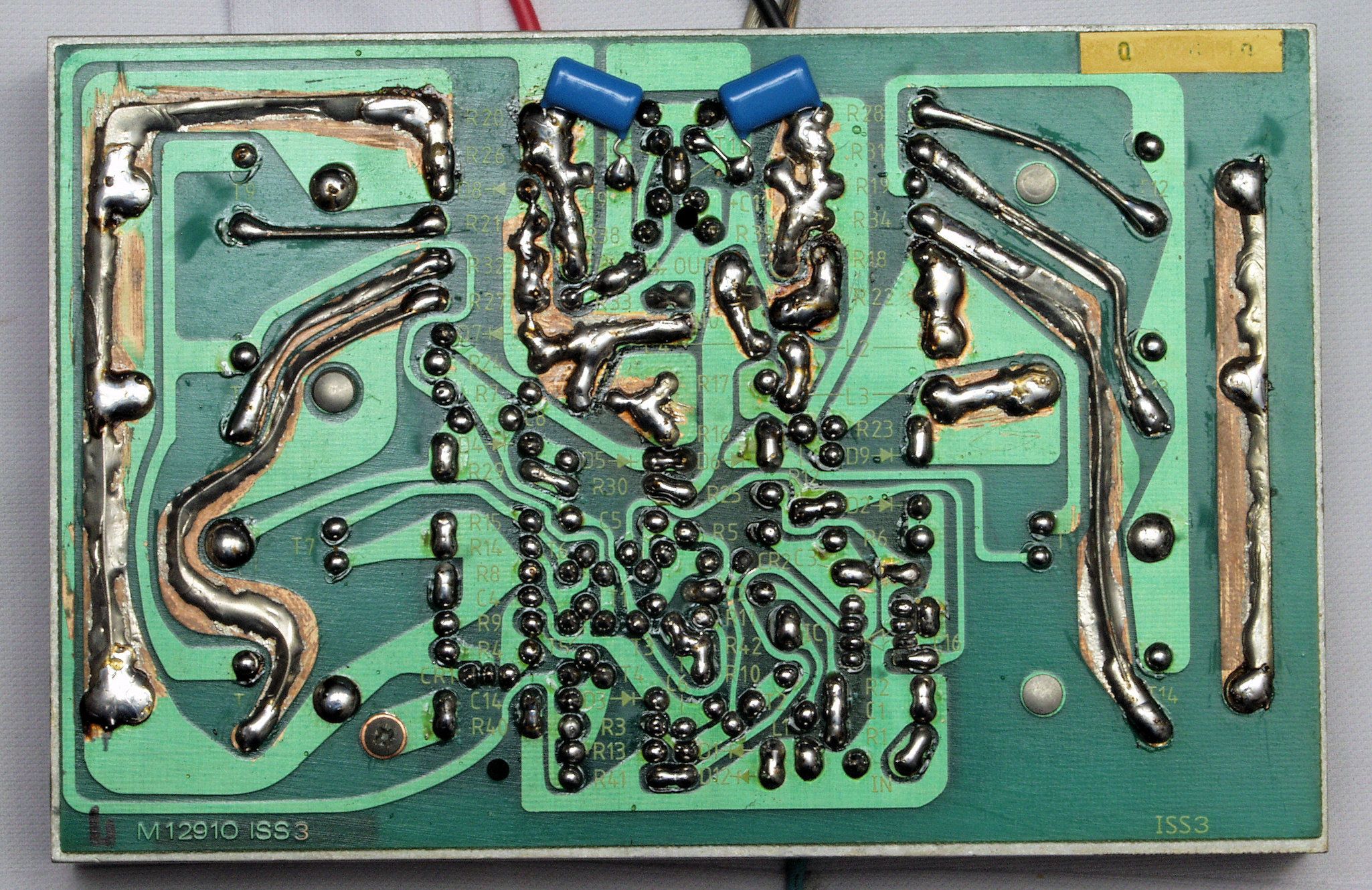 | C13. 修理前 R側AMP基板裏、銅箔が補強されている。 | ||||||||||||||||||||||||||||