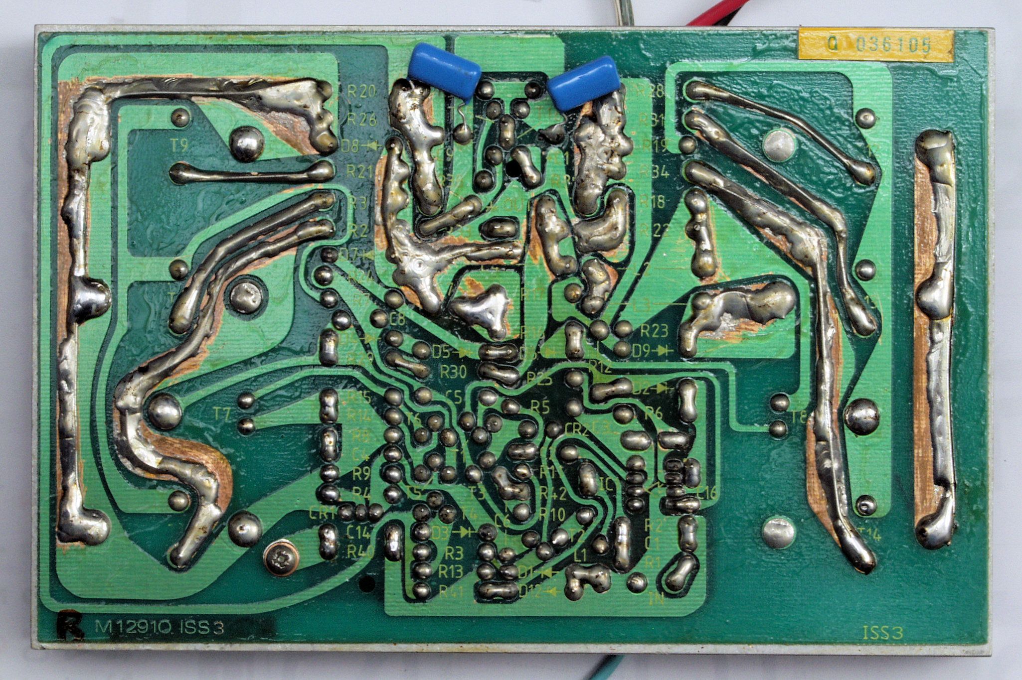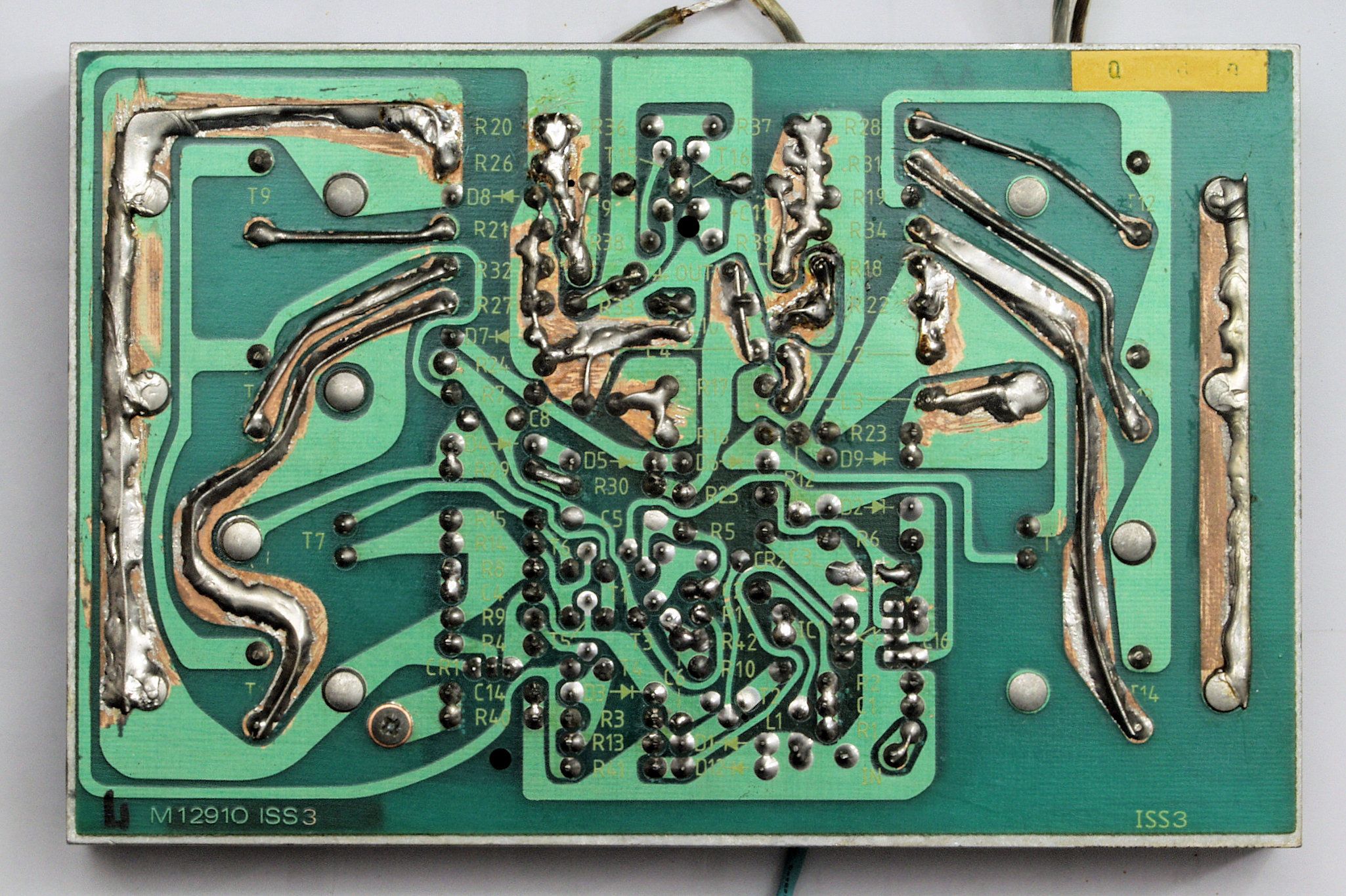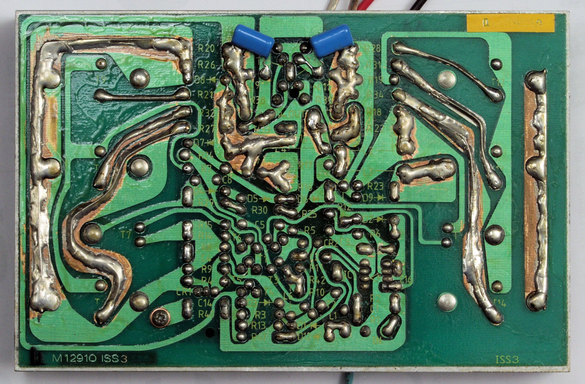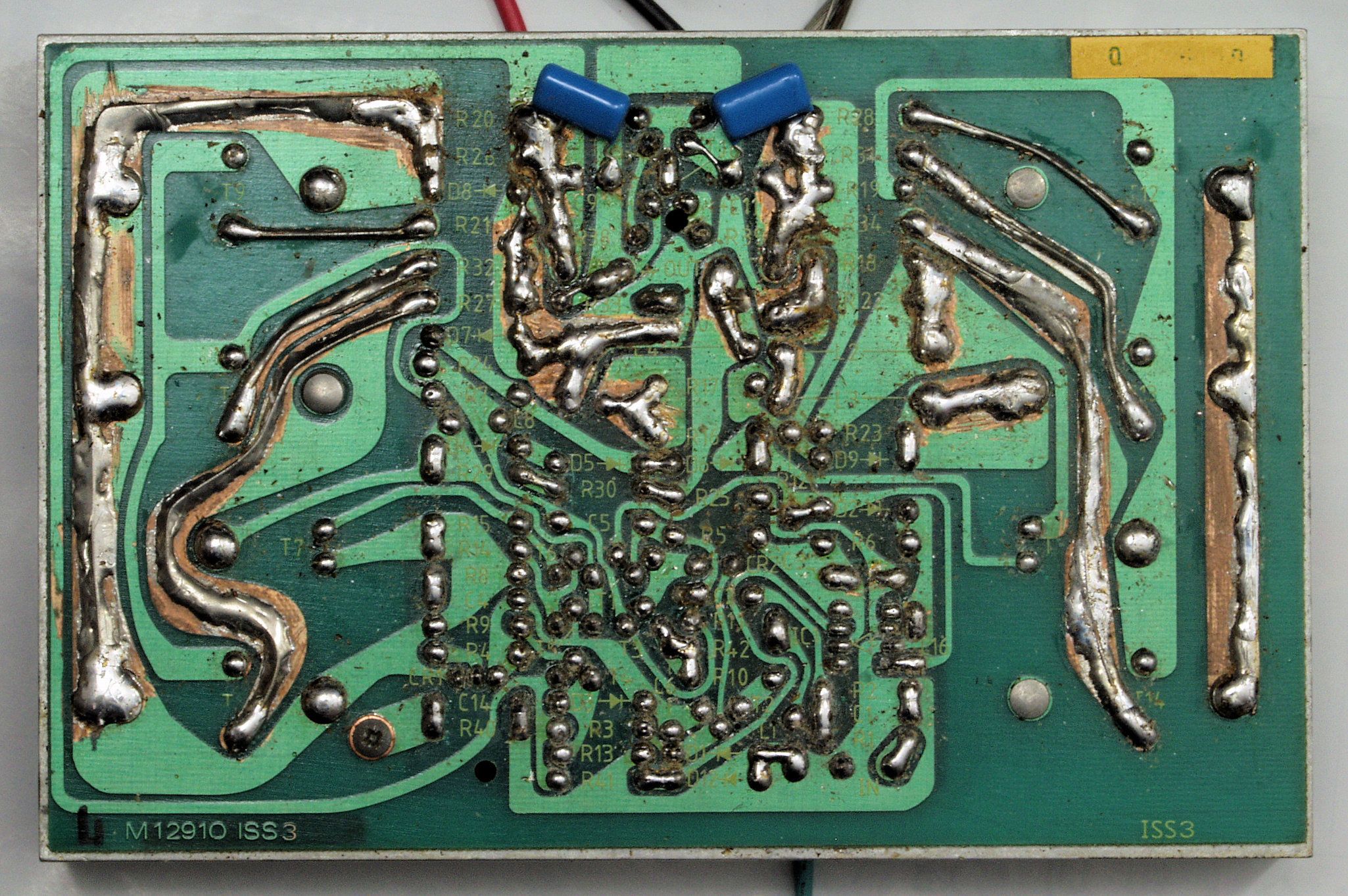 | C13. 修理前 R側AMP基板裏、銅箔が補強されている。 | ||||||||||||||||||||||||||||