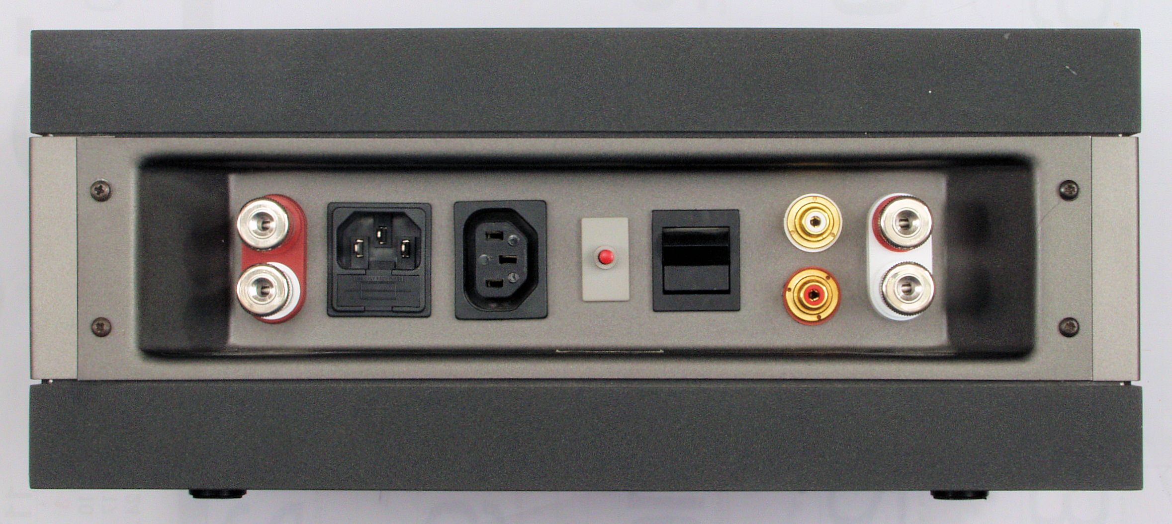 | C53. 修理(交換)後 端子パネル「SP出力端子・RCA入力端子」 RCA端子をWBT−0201に交換、SP出力端子をWBT−0730PLに交換。 |