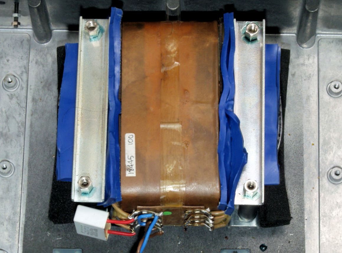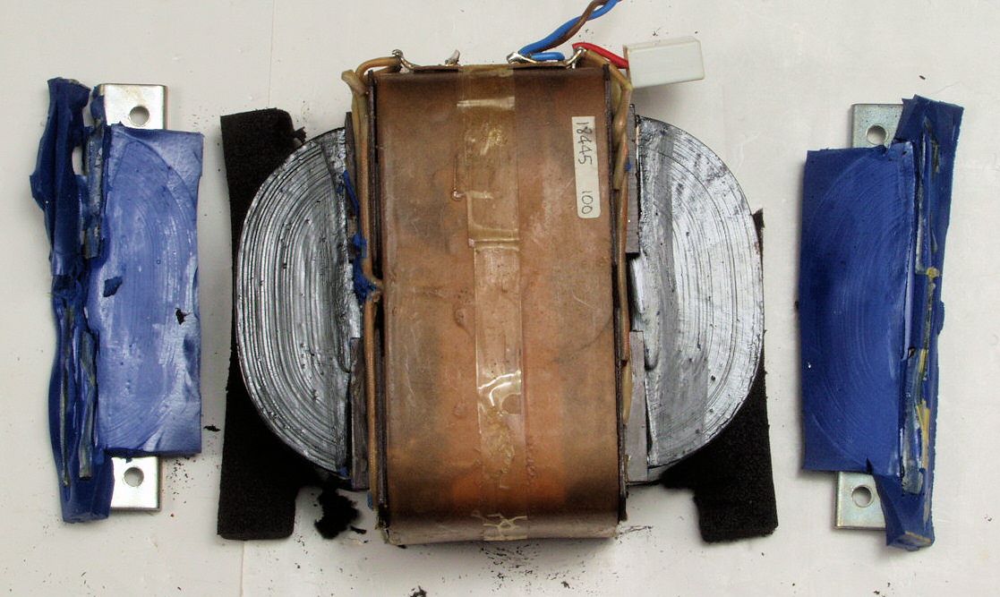 | A62. 点検中 カットコアの電源トランスを取り出す、 日本製と異なりカットコアの締結バンドが無い。 | ||||||||||||||||||||||||||||