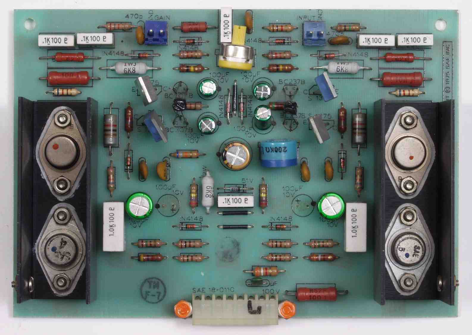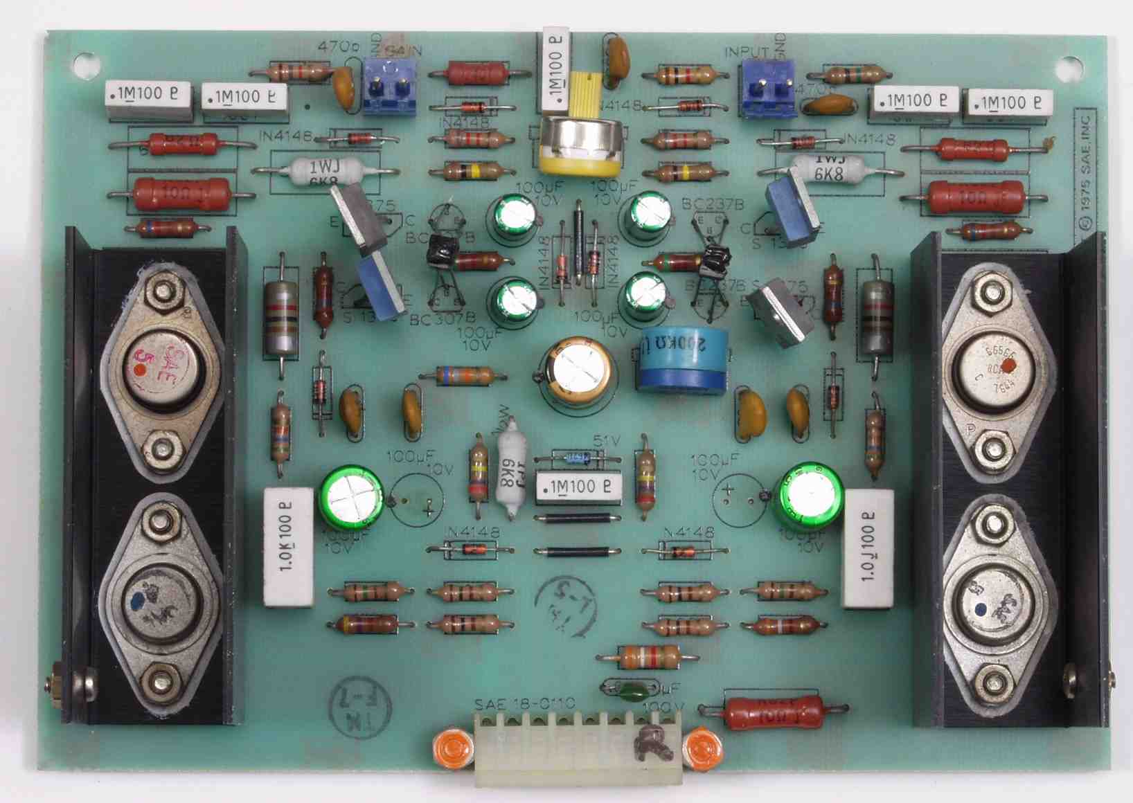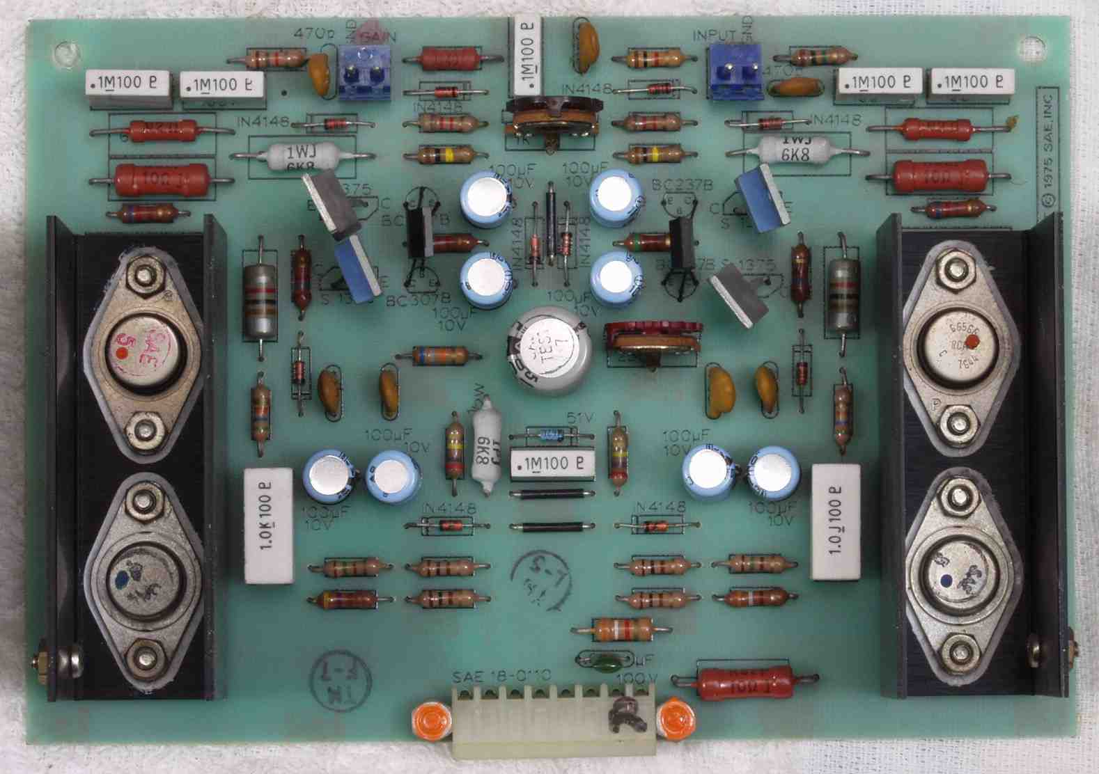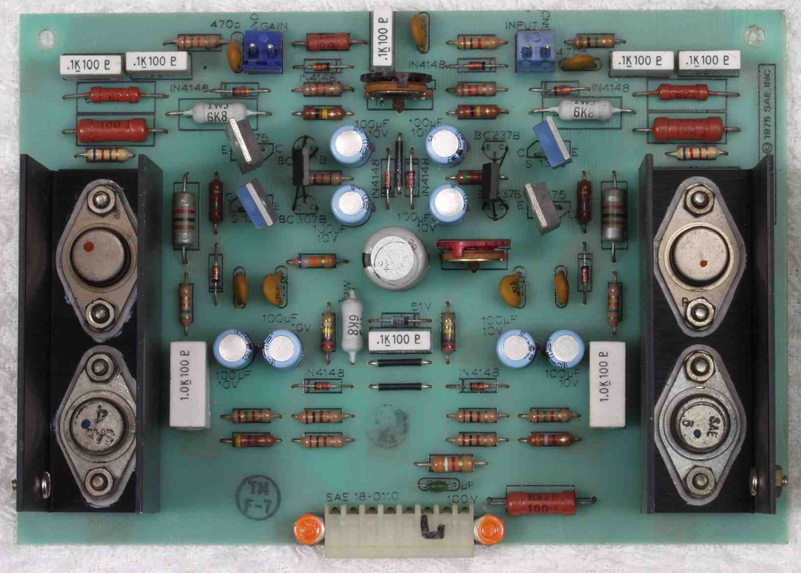 | C32. 修理後 R側AMP基板 電解コンデンサー9個、半固定VR2個、複合TR(トランジスター)2個交換 | ||||||||||||||||||||||||||||||||