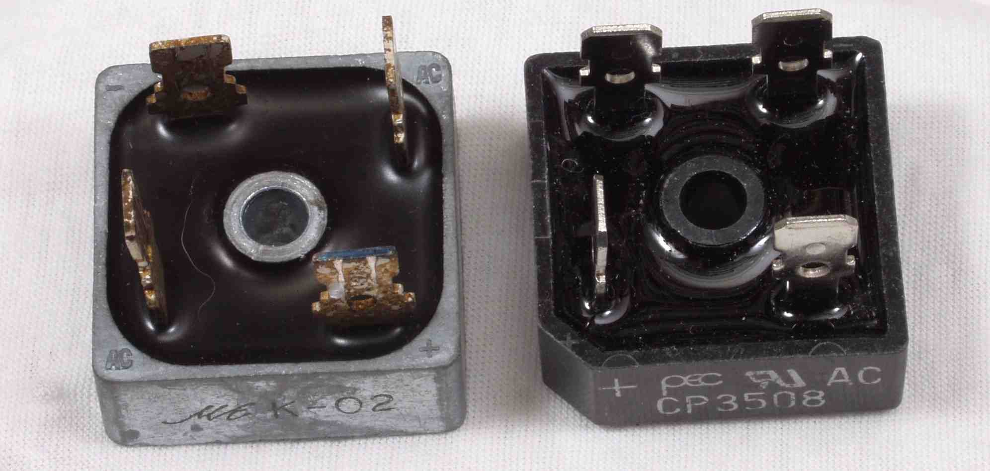| A6. 点検中 整流器の比較。 左=20A、 右=35A | ||||||||||||||||||||||||||||||||