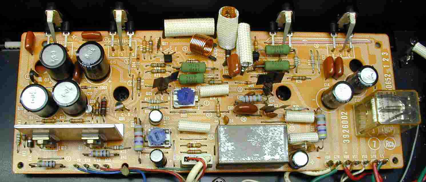 | 2. 修理前のドライブ基板 いくつかのロットが有るのか、この機種は、前段TR(トランジスター)が小さい。 |