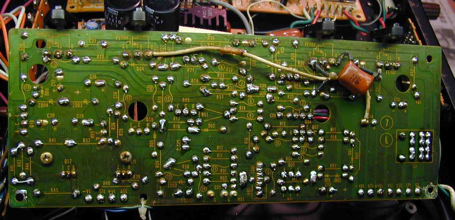 | 3. 半田補正したR側ドライブ基板裏 全ての半田をやり修す |