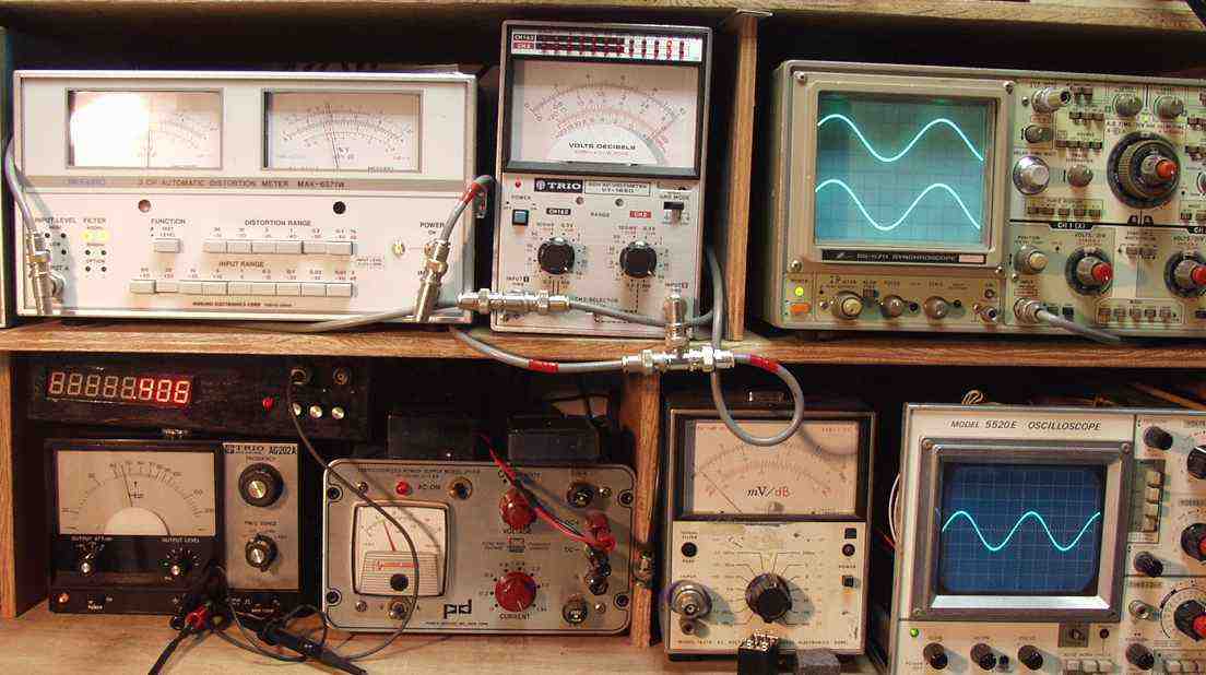 | 10. 30V=112W出力 0.1%歪み 400HZ。 右下オシロ=入力100mV |