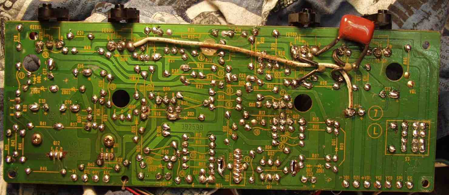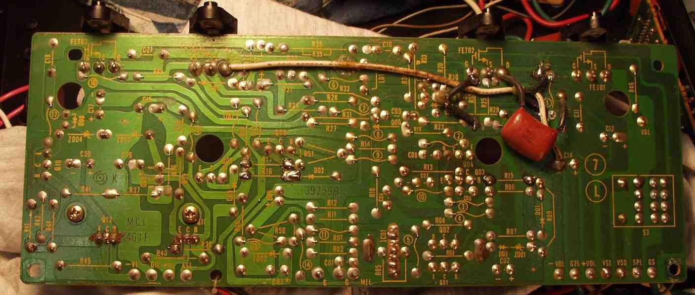 | C4. 修理後(半田補正) R側ドライブ基板裏 全ての半田をやり修す |