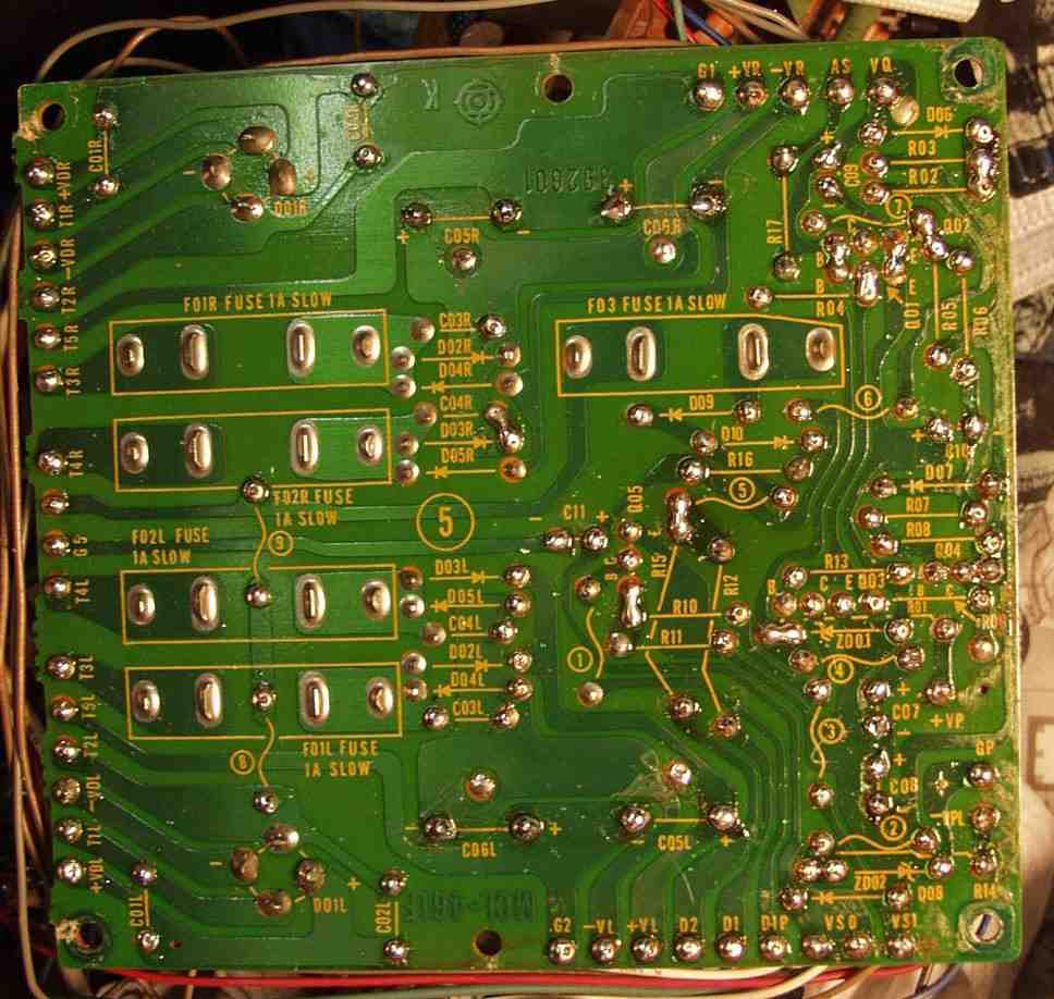 | C8. 修理後(半田補正) R側ドライブ基板裏 全ての半田をやり修す |