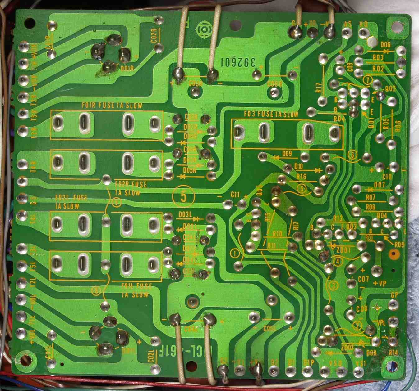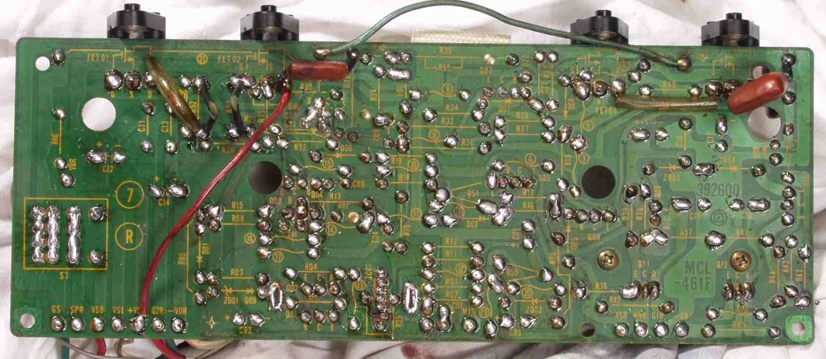 | C1D. 修理(半田補正)後 Rドライブ基板裏 全ての半田をやり修す |