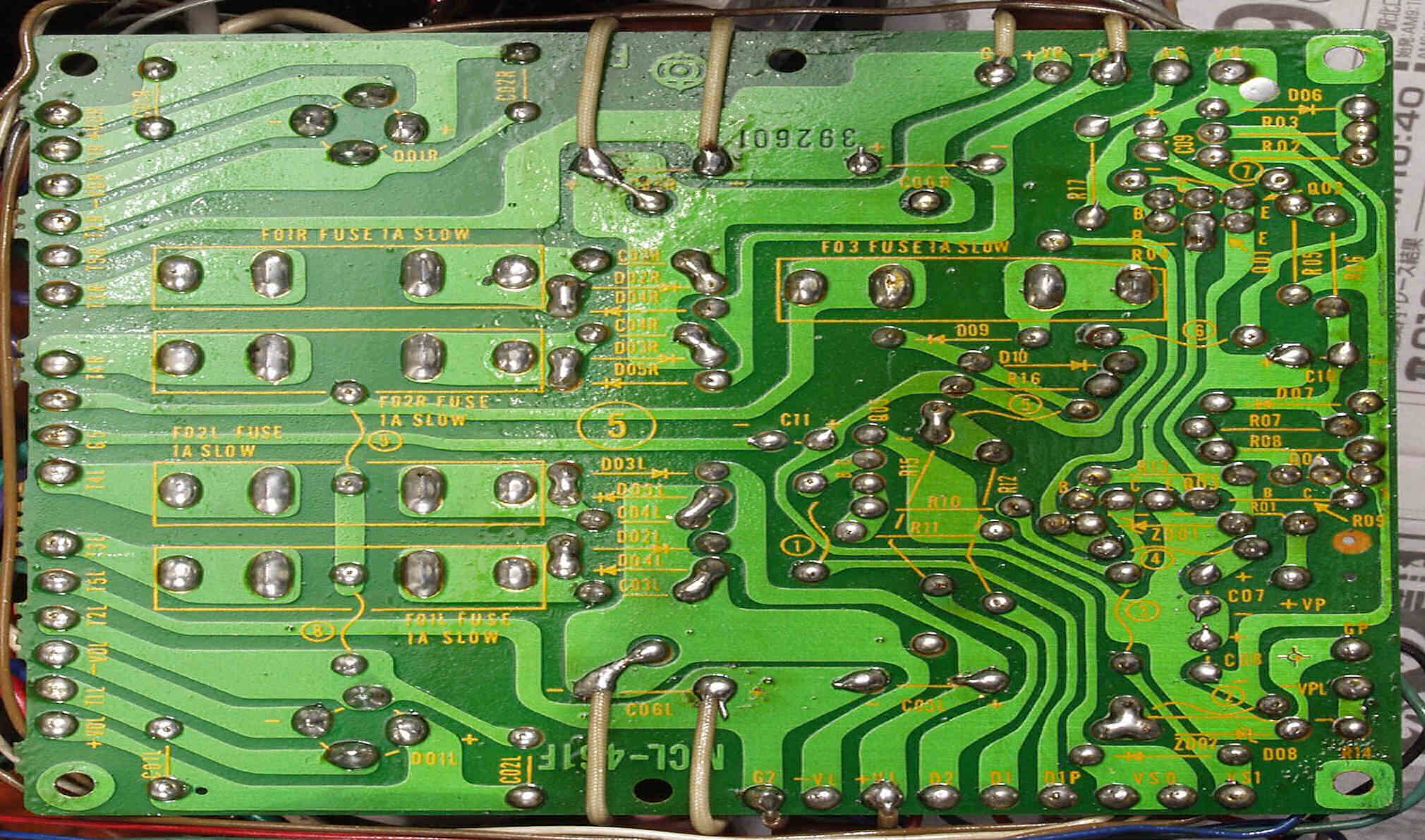| C2D. 修理(半田補正)後 Lドライブ基板裏 全ての半田をやり修す |
