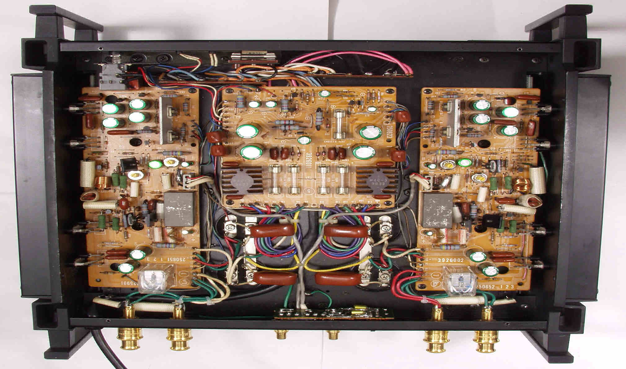 | 注意 このAMPはアースラインが浮いています AMPのシャーシにSPの線(アース側)や入力のRCAプラグのアース側も接続してはいけません RL−SPのアース線も接続(共通)してもいけません 又、DC(directconnection)入力が可能ですが、絶対に使用しないこと=ここ参照 |