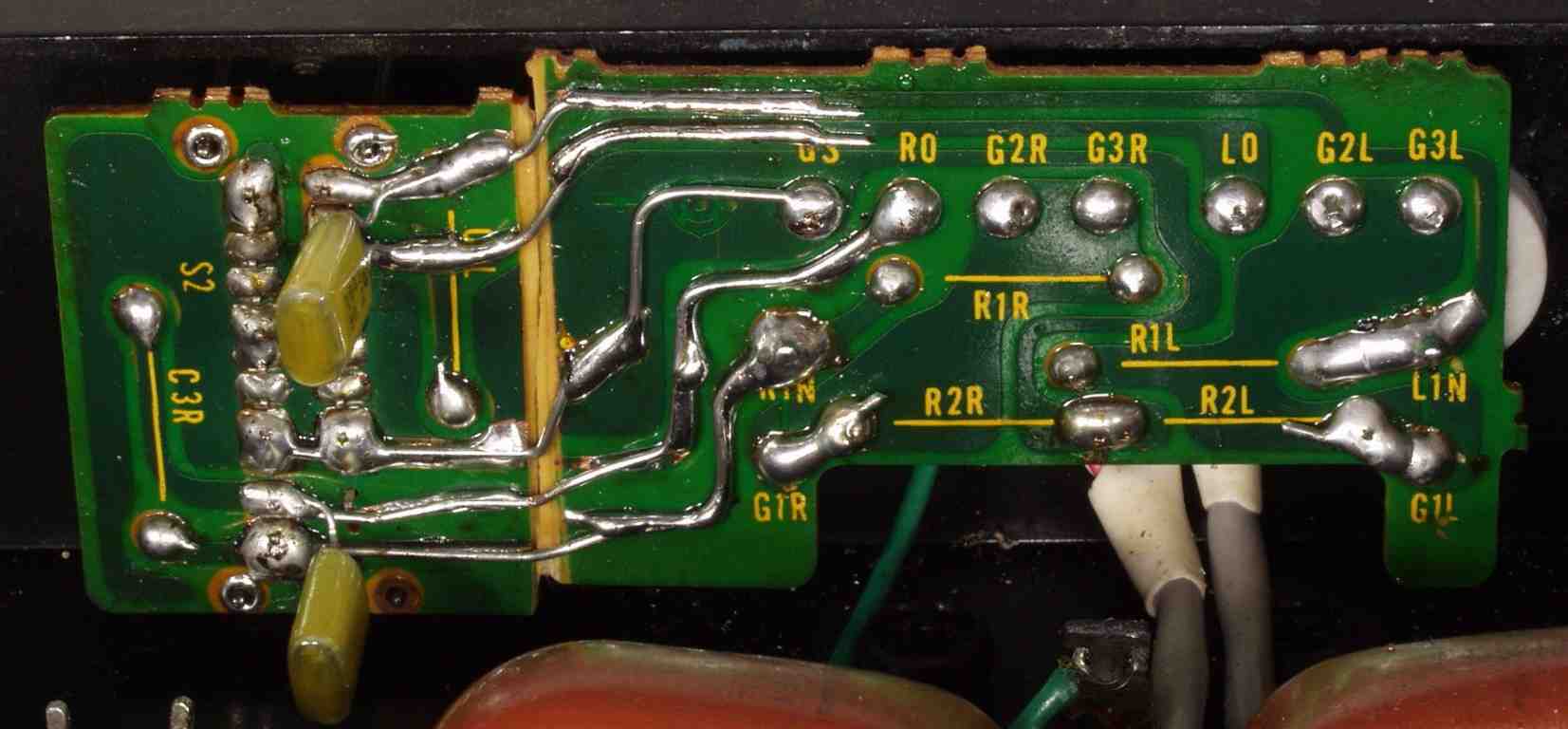 | C5D. 修理(半田補正)後 入力RCA端子基盤 全ての半田をやり修す |