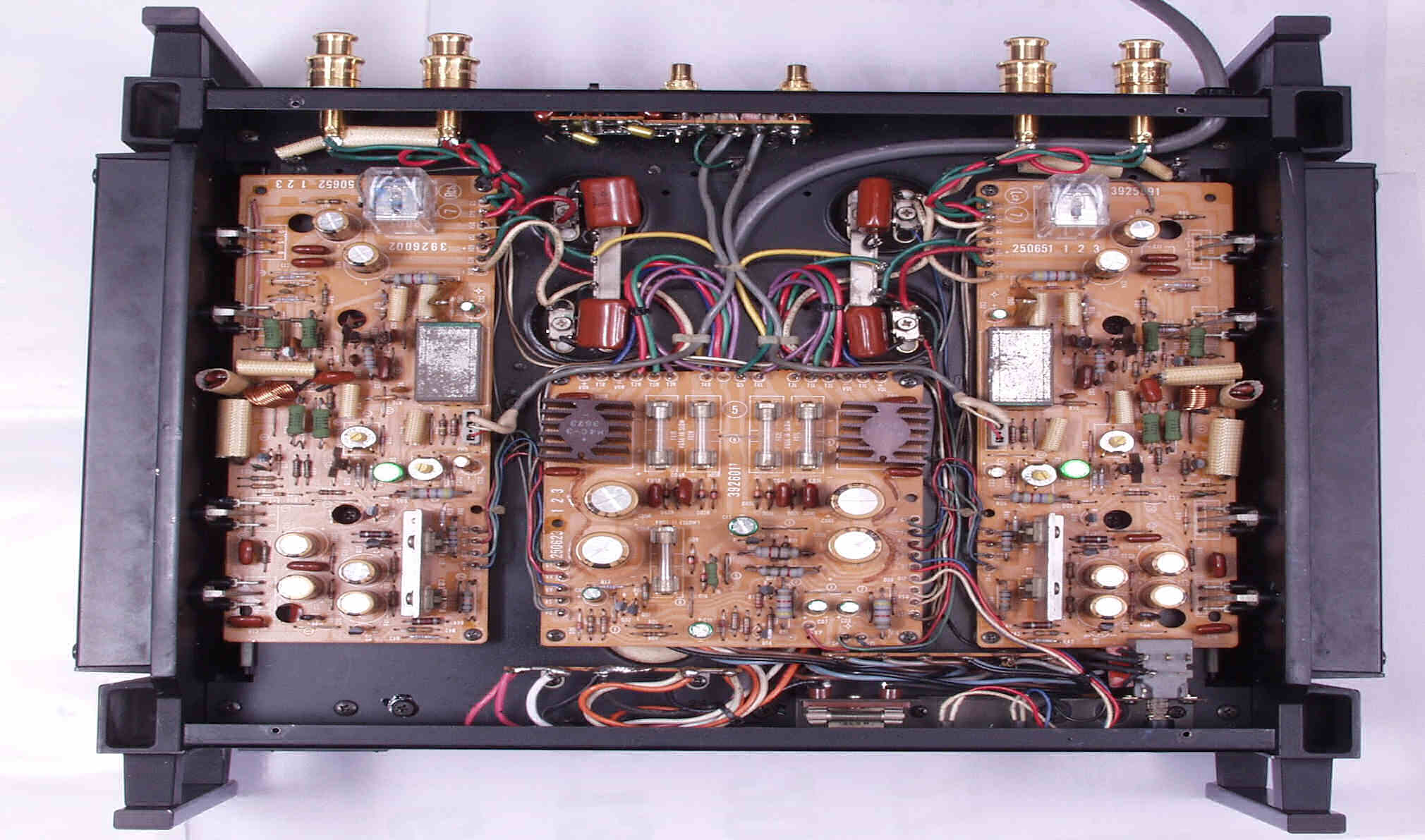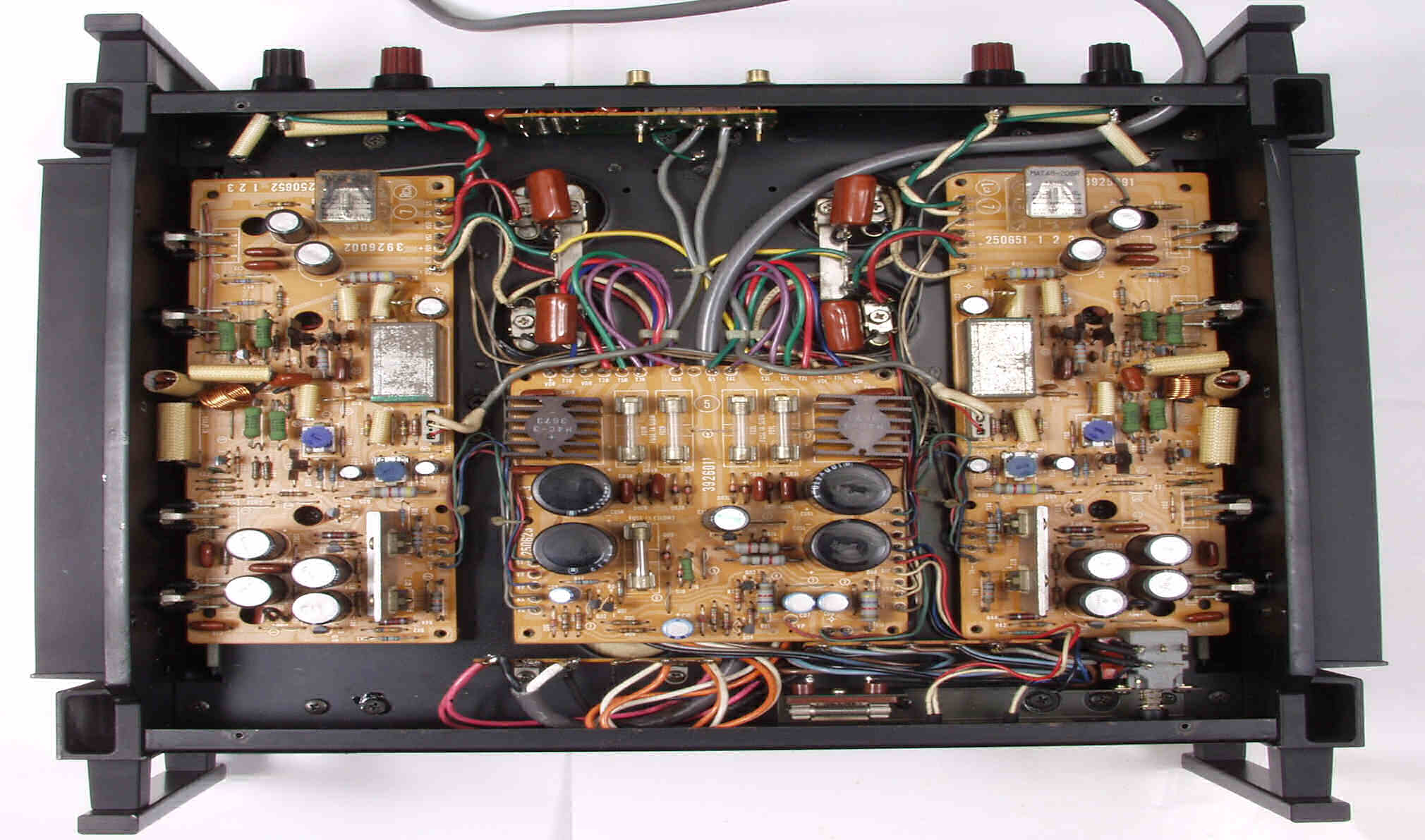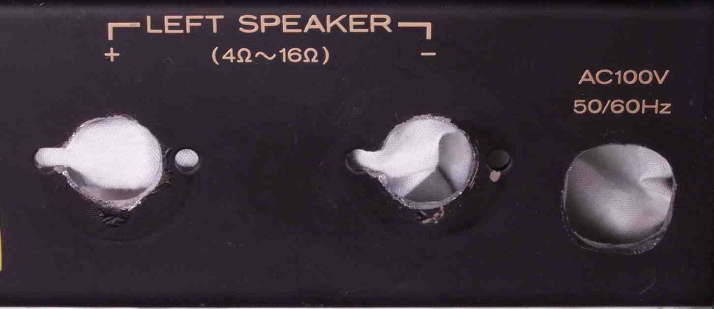 | 注意 このAMPはアースラインが浮いています よって、AMPのシャーシにSPの線(アース側)や入力のRCAプラグのアース側も接続してはいけません RL−SPのアース線も接続(共通)してもいけません 又、DC(directconnection)入力が可能ですが、絶対に使用しないこと=ここ参照 |