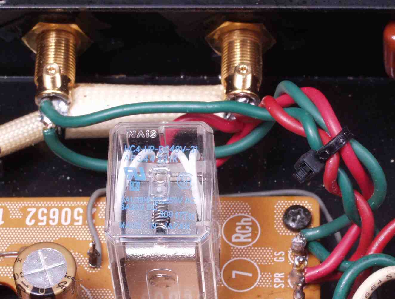 | C6H. 修理後 R−SP端子への接続 WBTのネジ止めを生かし、ネジ止め接続+半田接続のW配線にした 理由はこちら参照 |