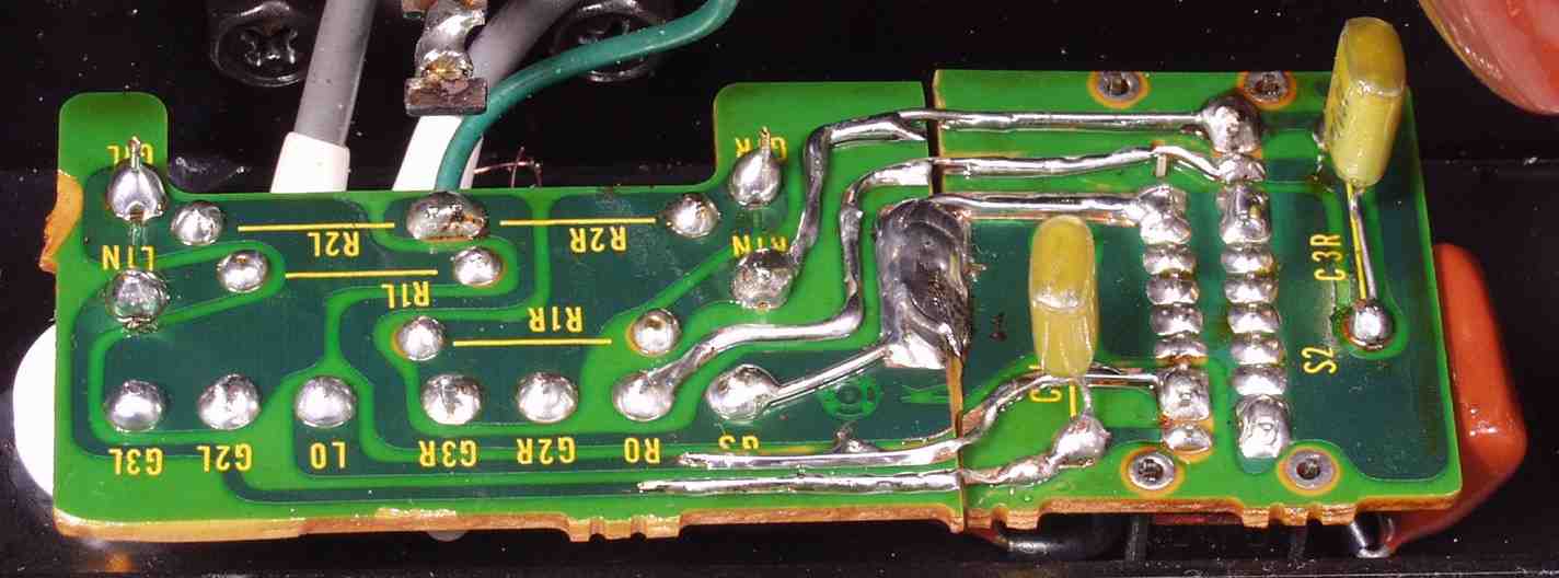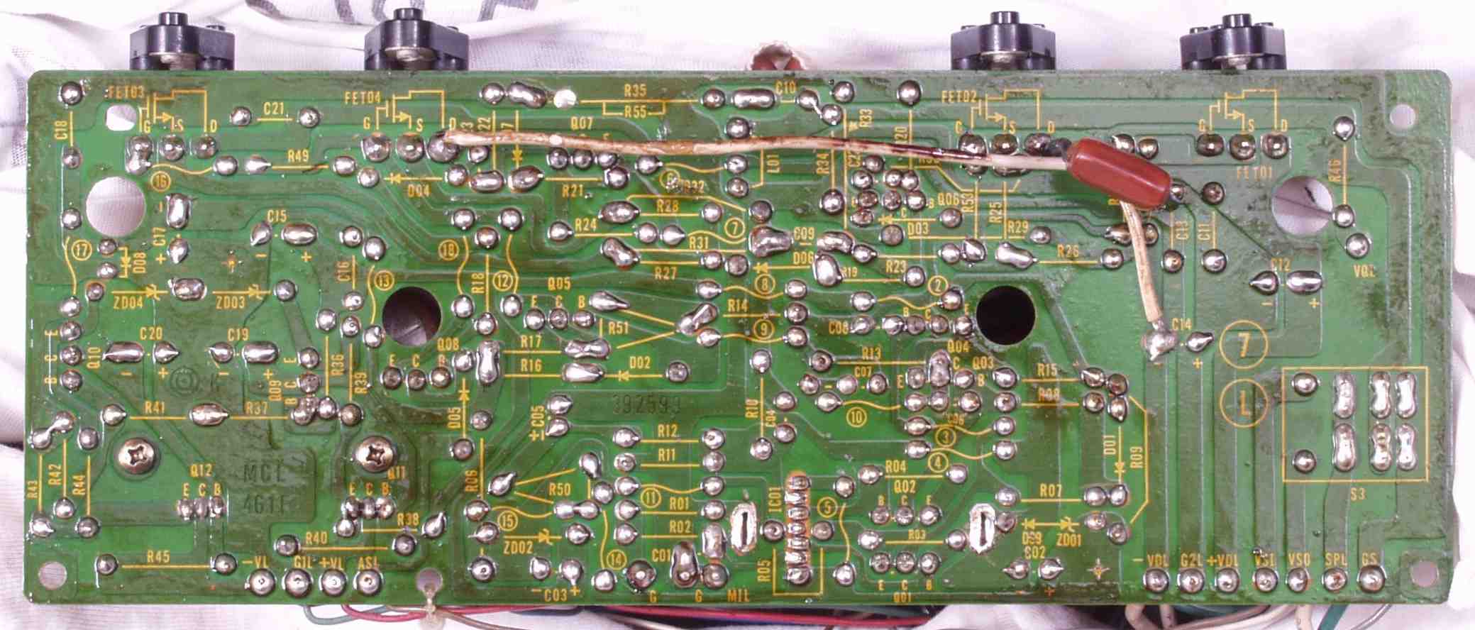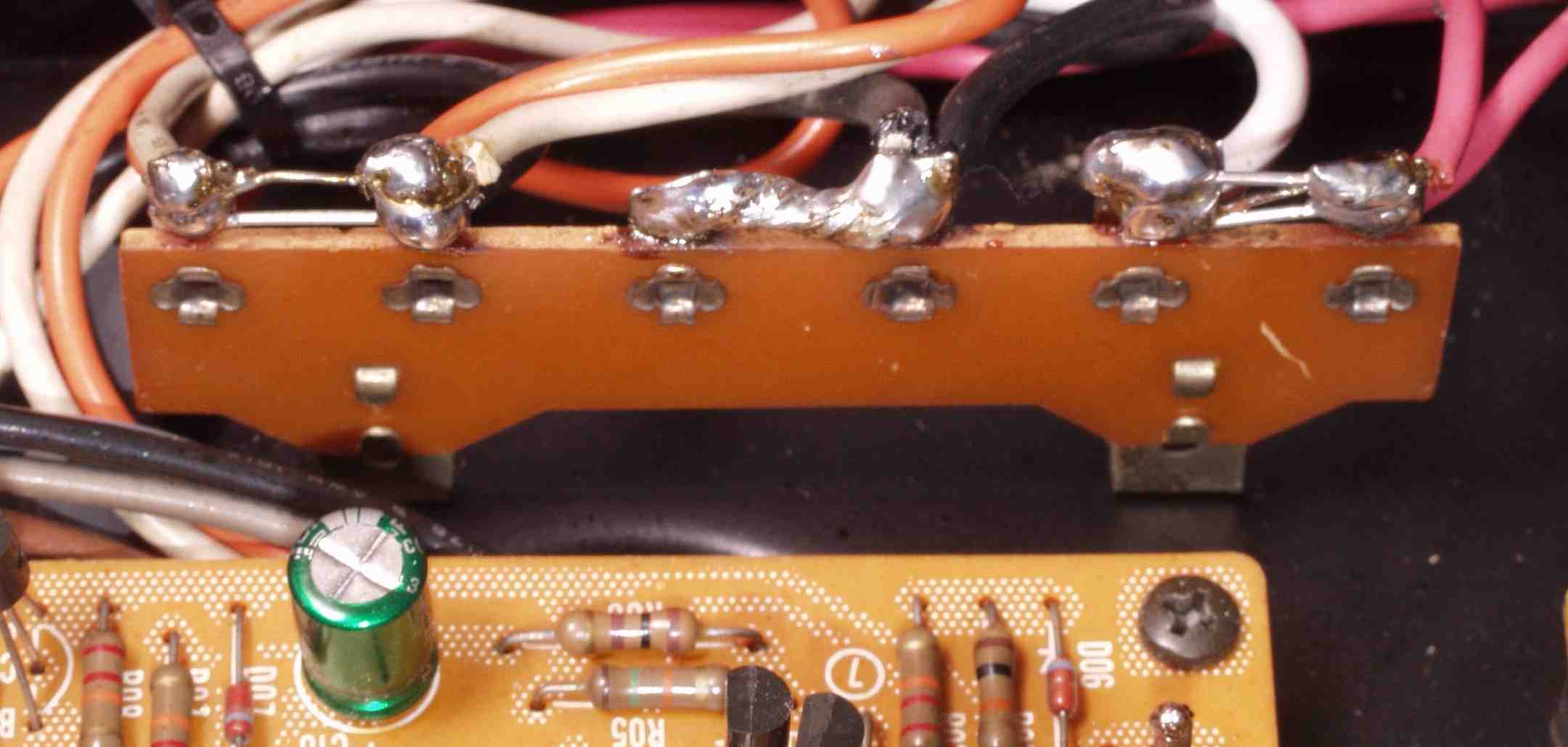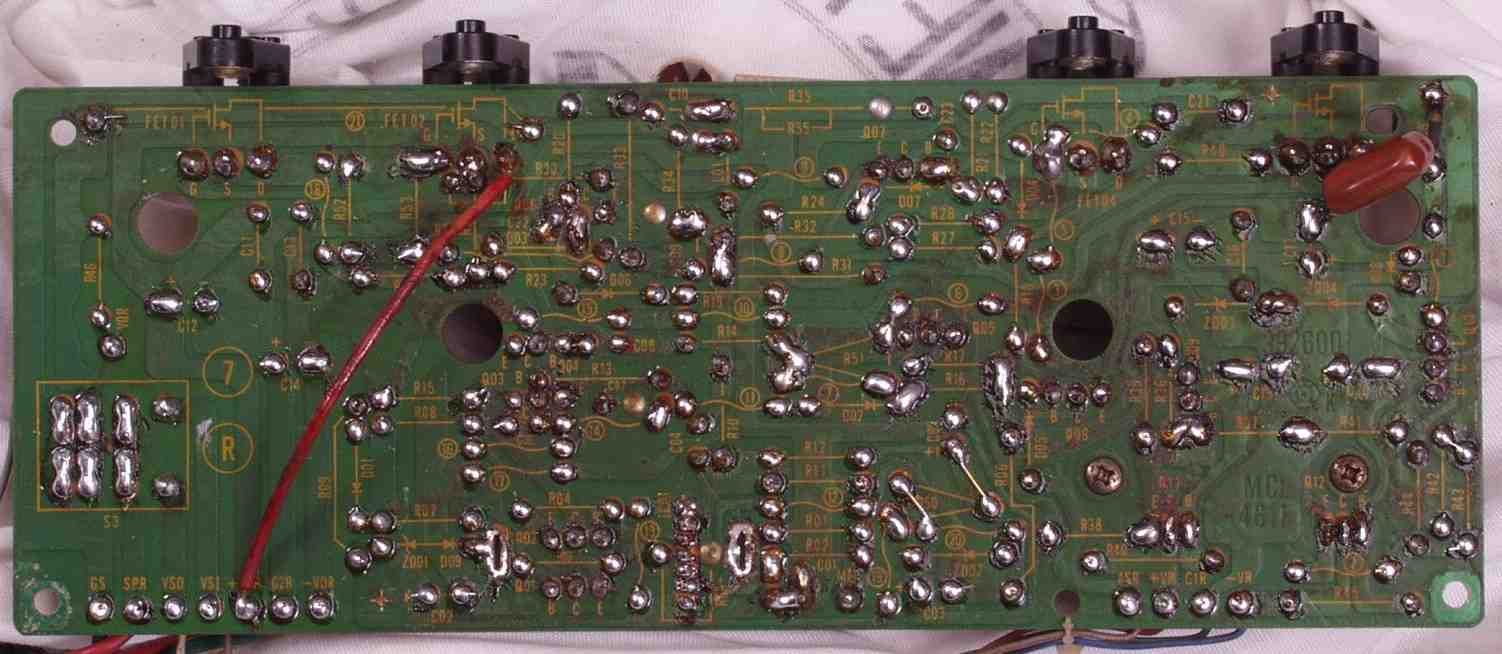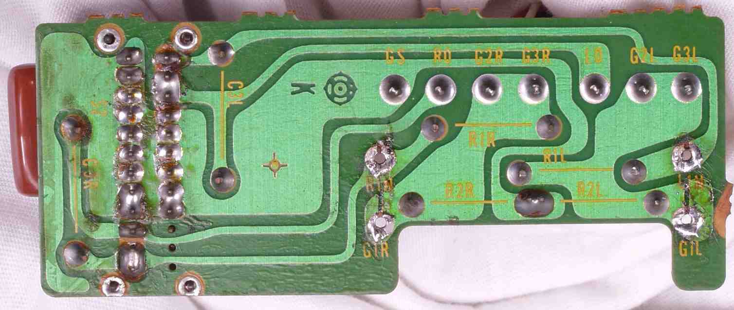 | C5E. 修理(半田補正)後 修理後 入力RCA端子基盤裏、洗浄後 |