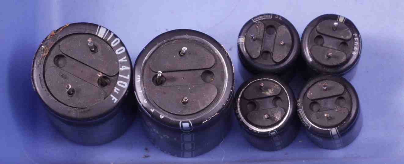| C9B. 交換した部品 下から見ると劣化している電解コンデンサー |