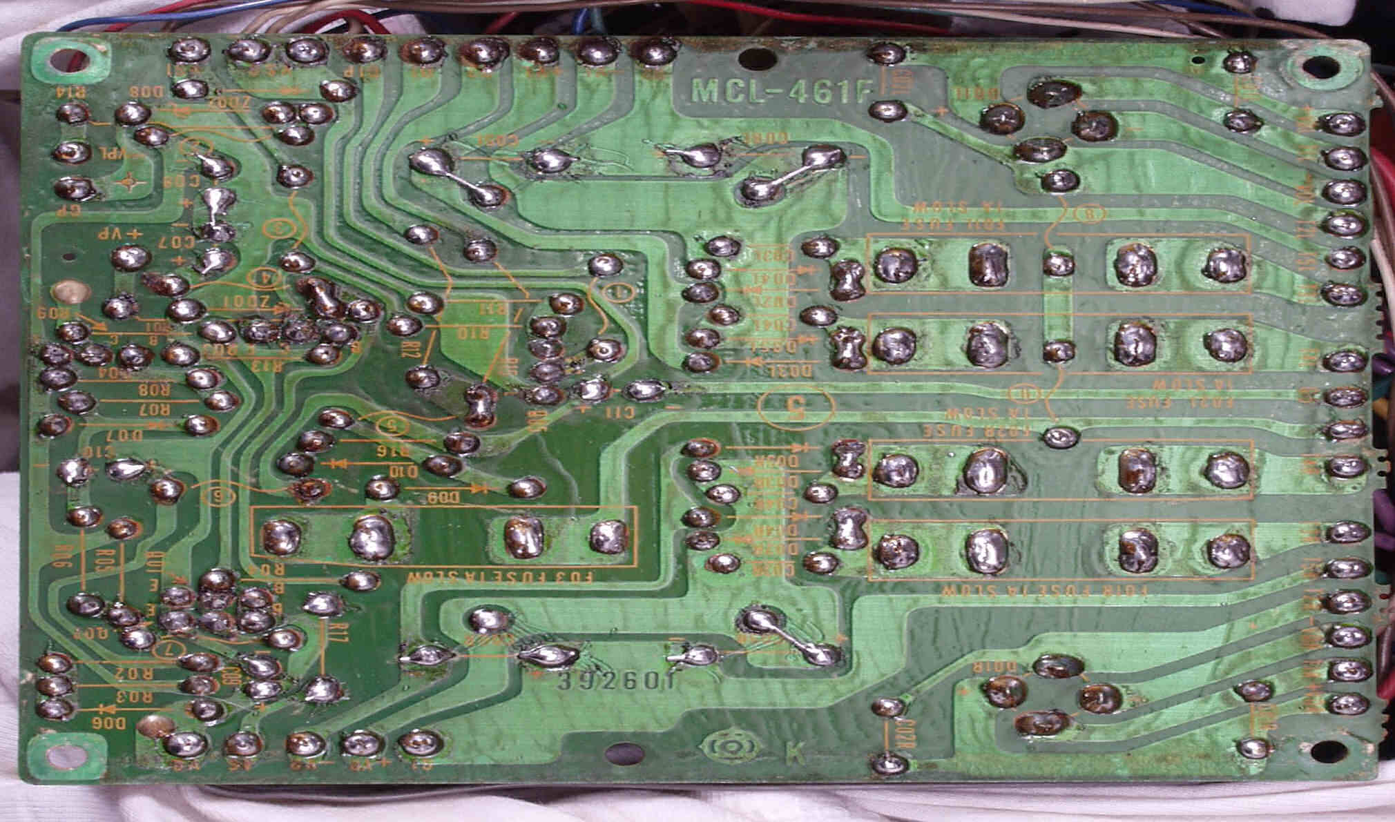 | C5D. 修理前 入力RCA端子基盤裏 |