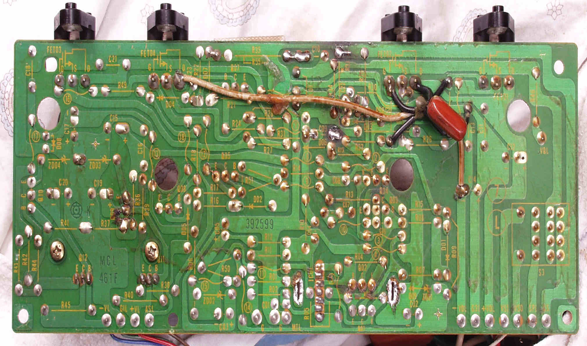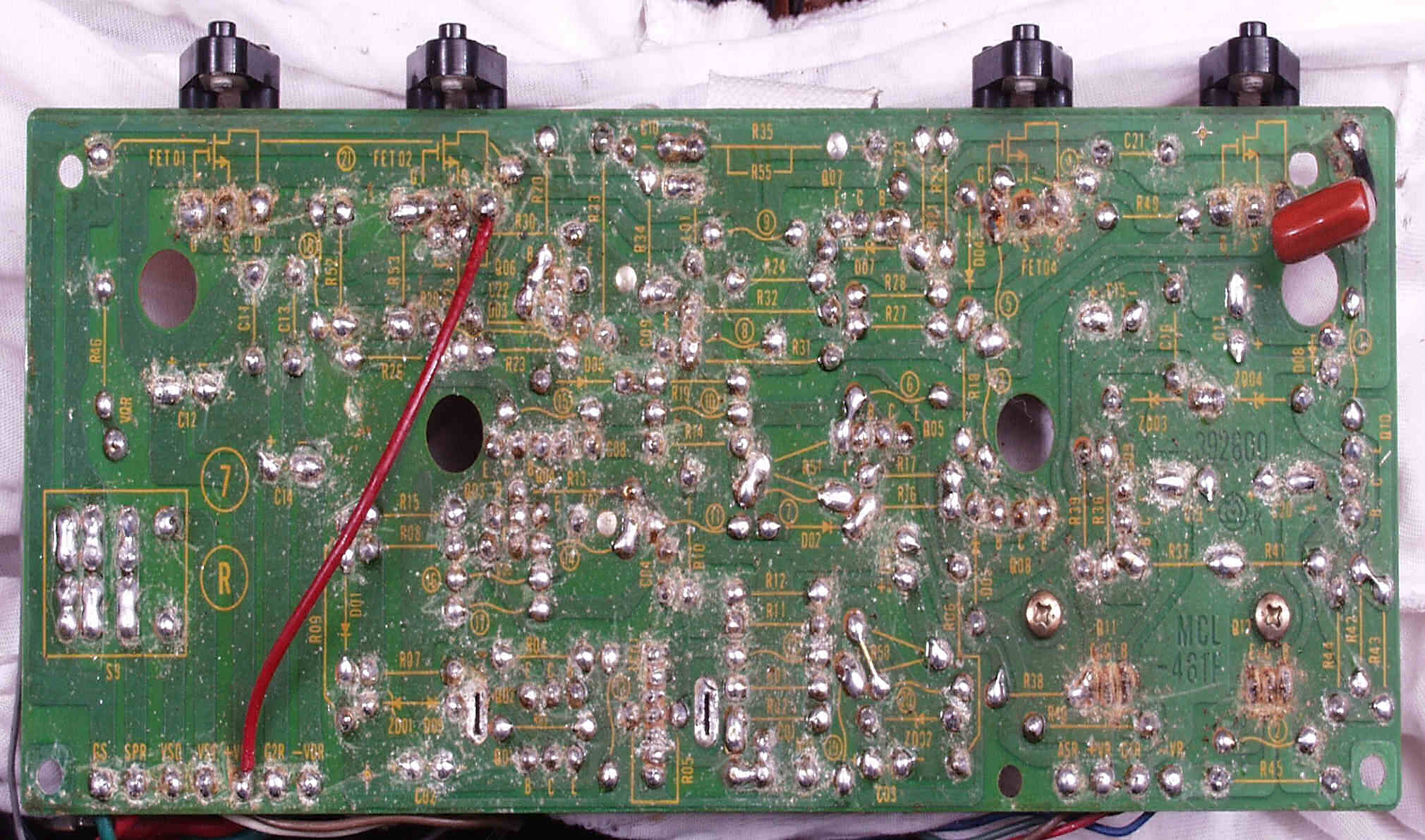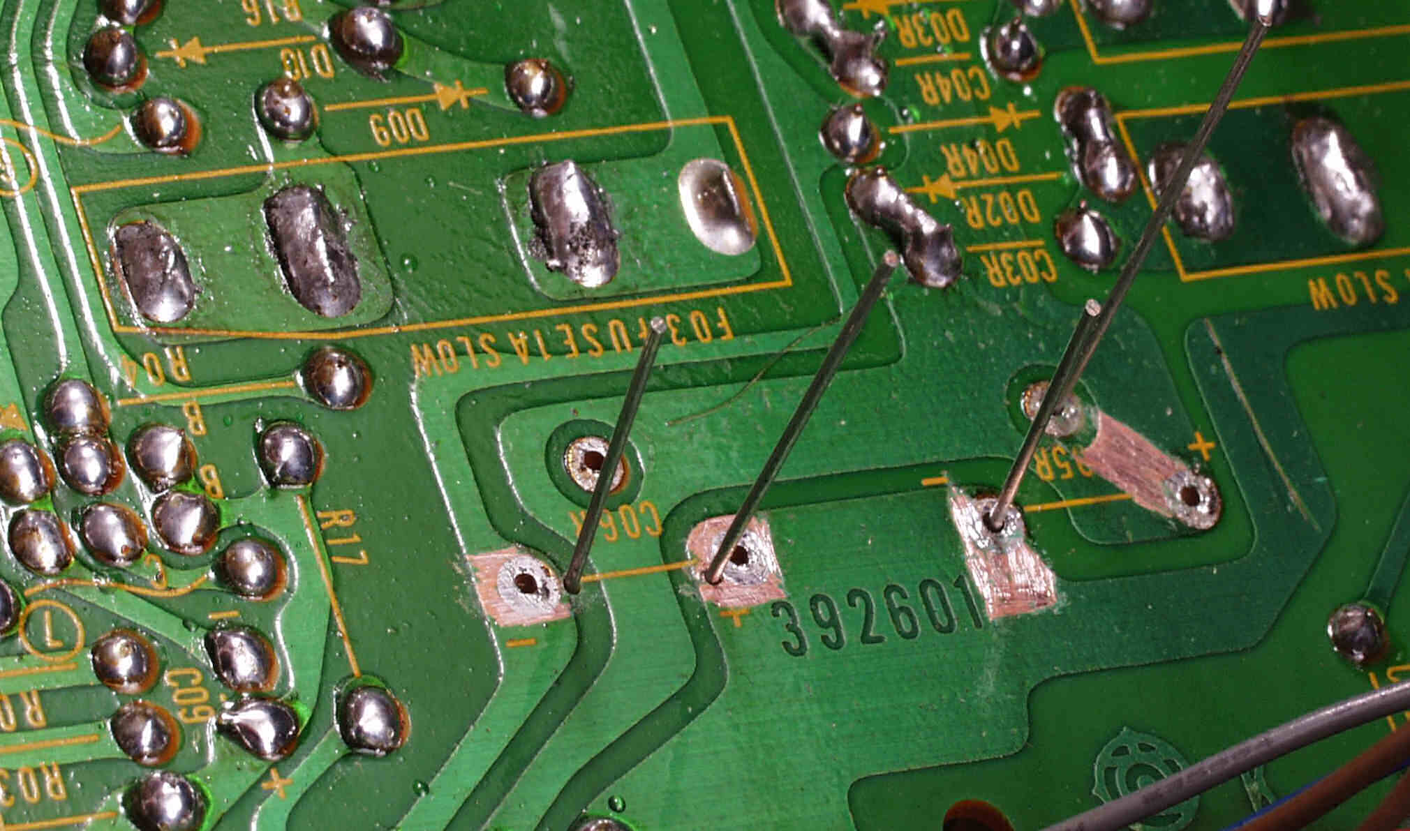 | C1C2. 修理中 Rドライブ基板裏 ハンダ不良予備郡 |