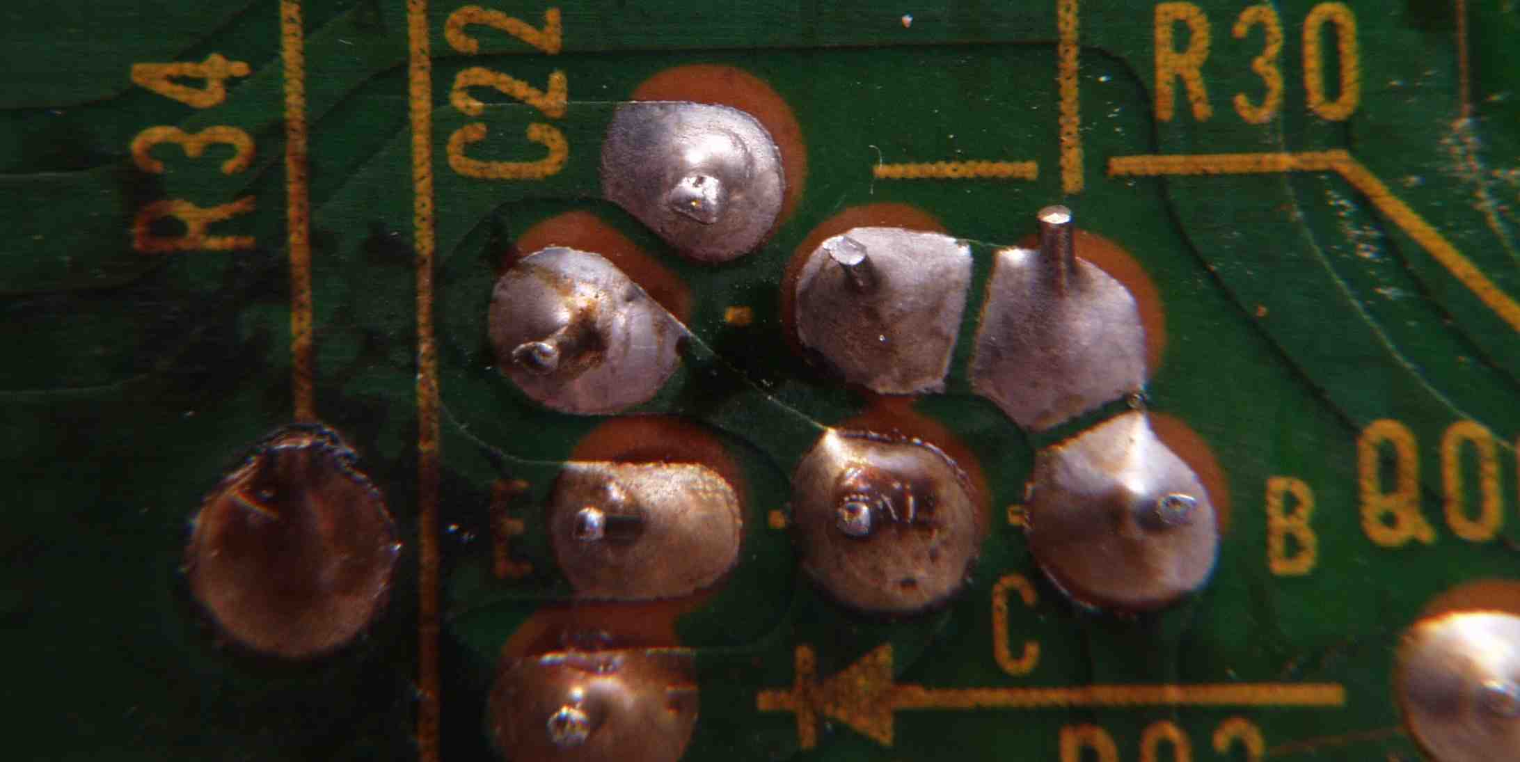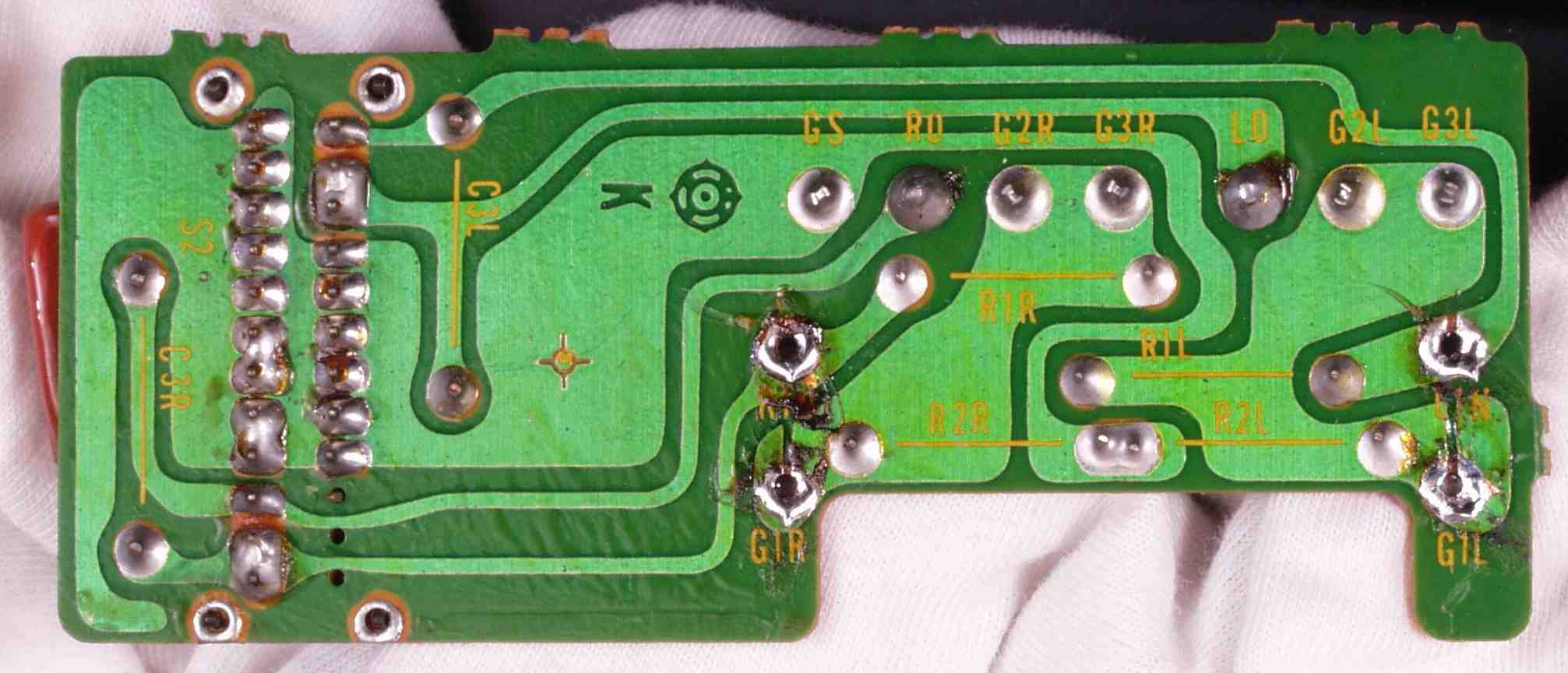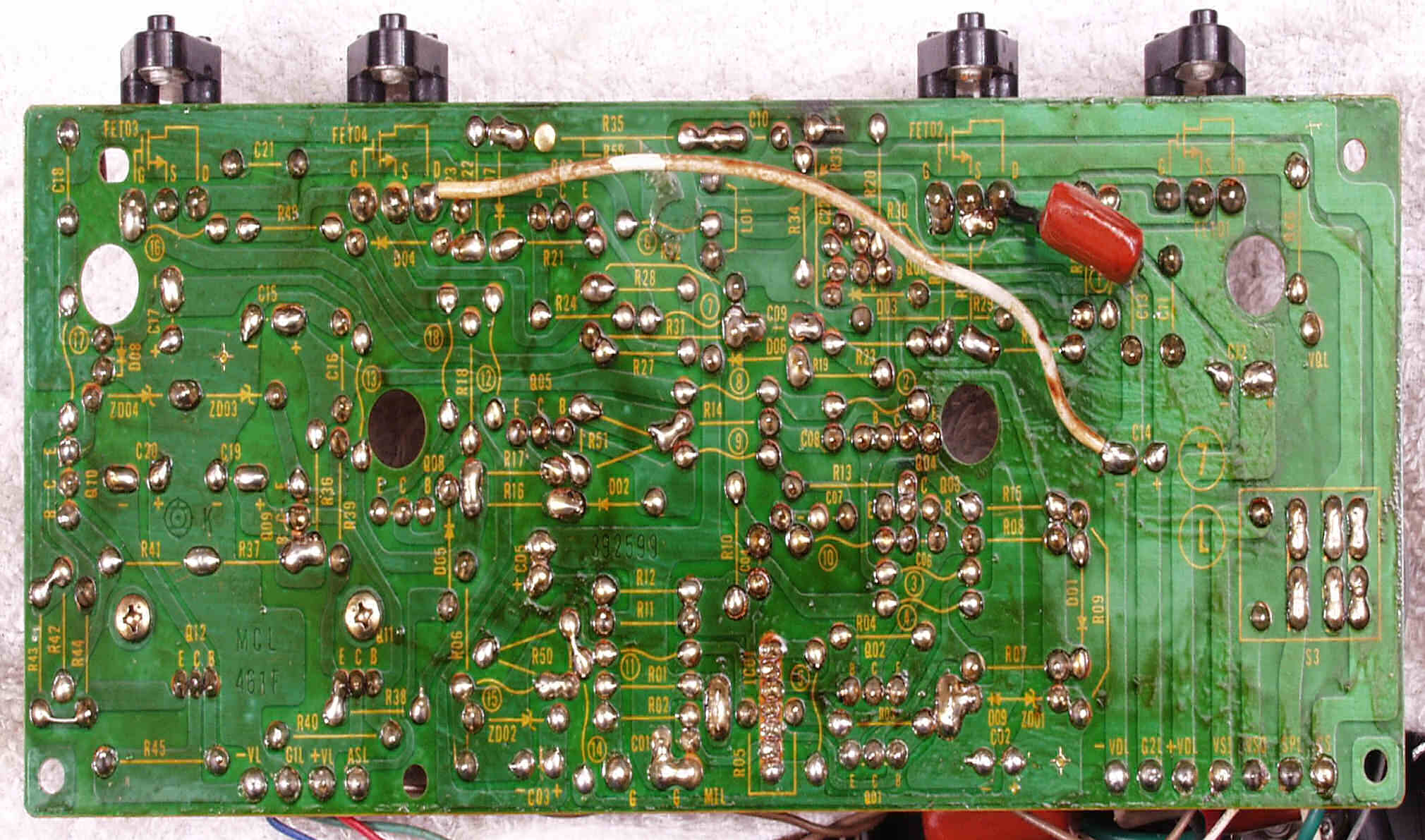 | C1C2. 修理中 Rドライブ基板裏 ハンダ不良予備郡 |