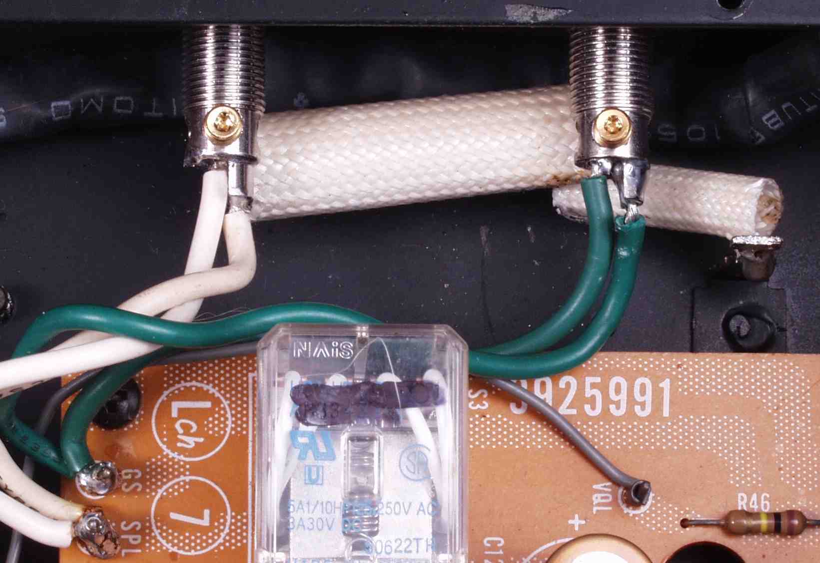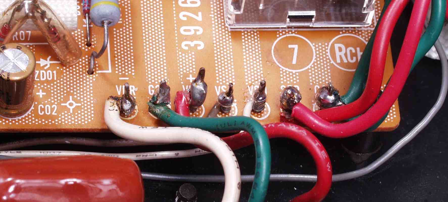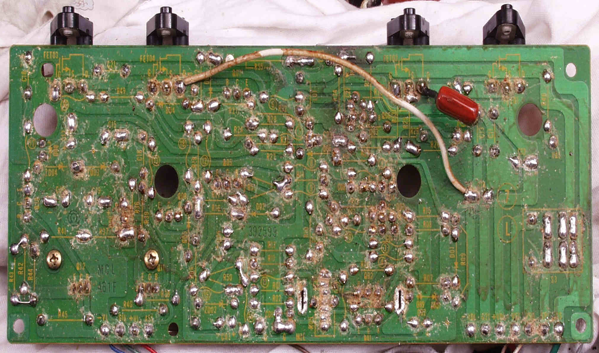| C5D. 修理前 入力RCA端子基盤裏 |