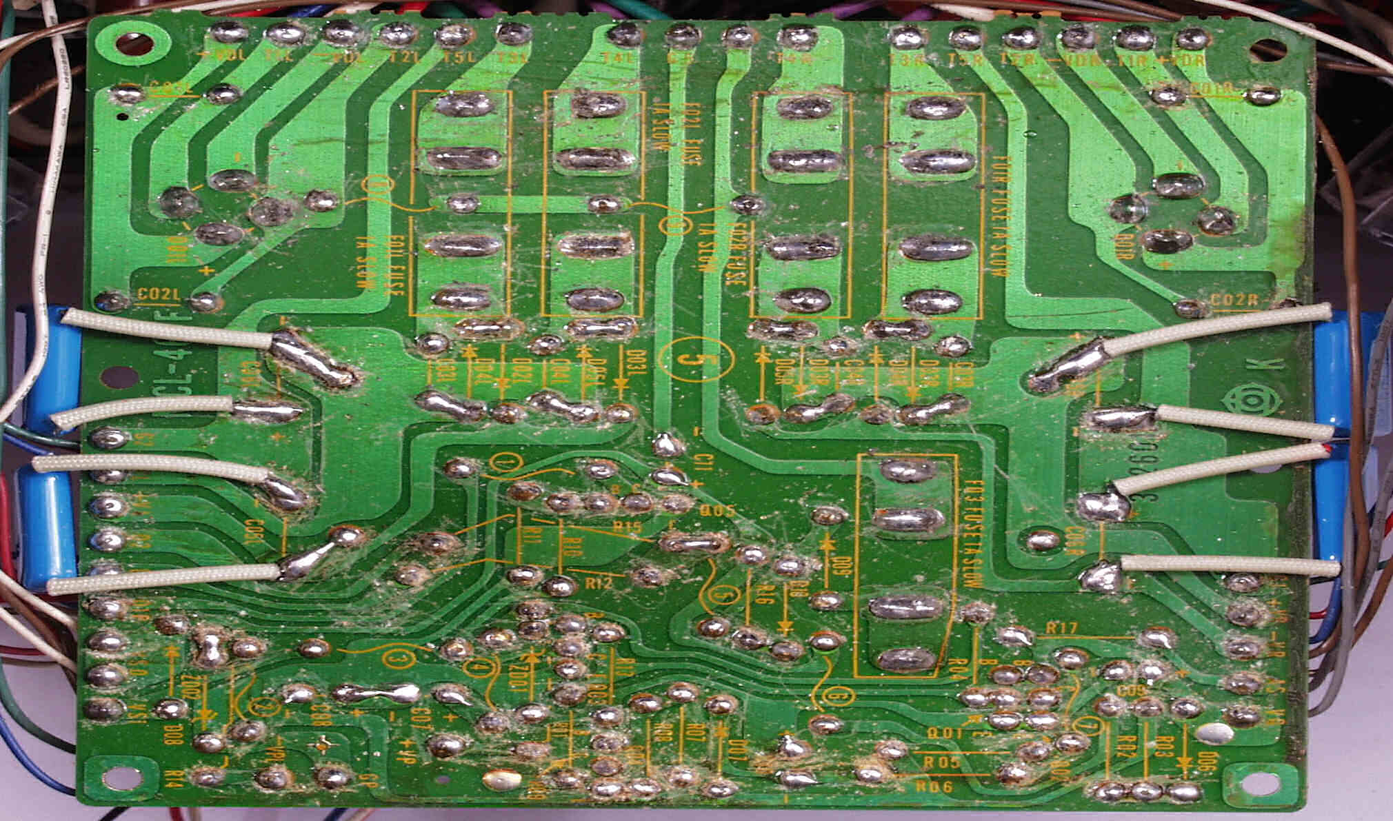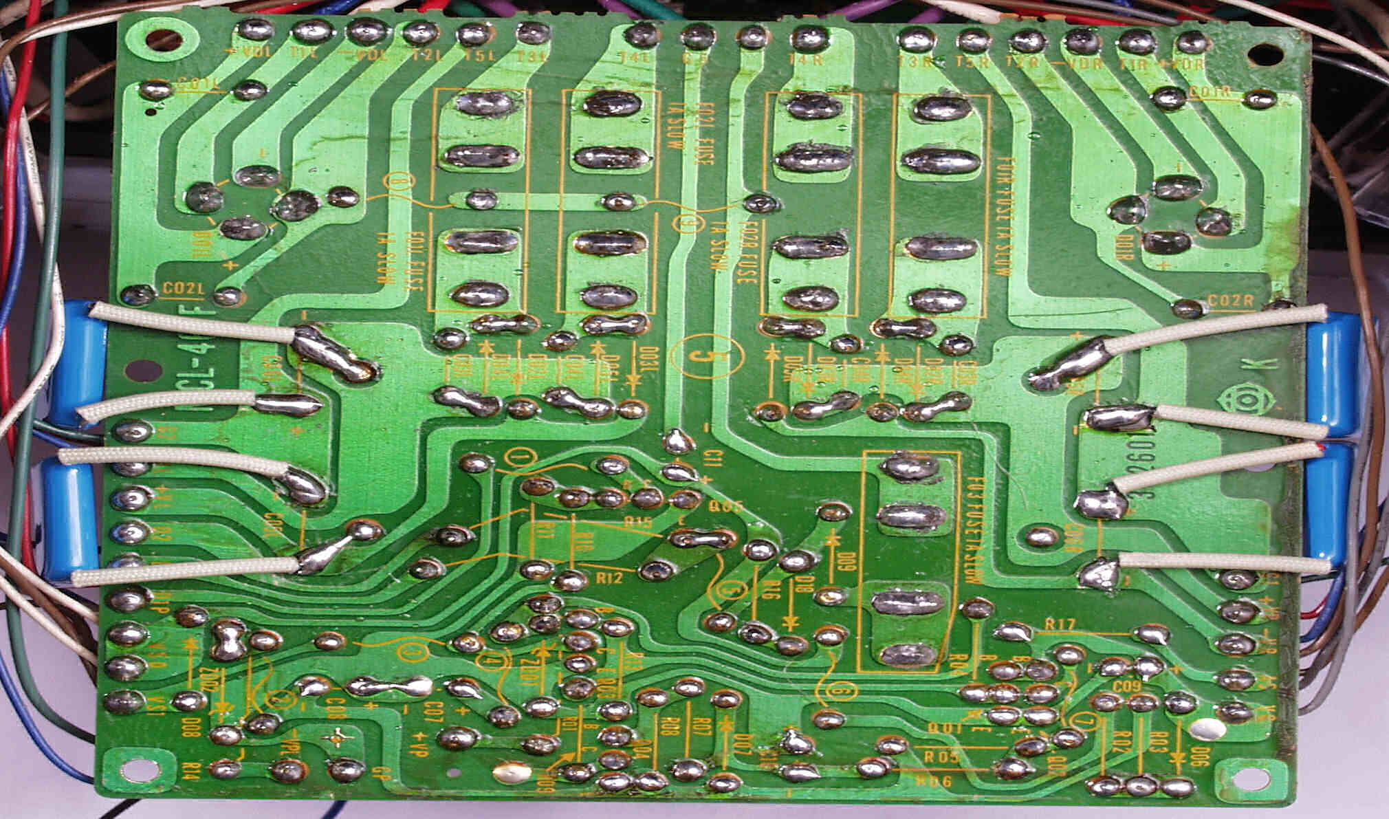 | C2D. 修理(半田補正)後 Lドライブ基板裏 全ての半田をやり修す |