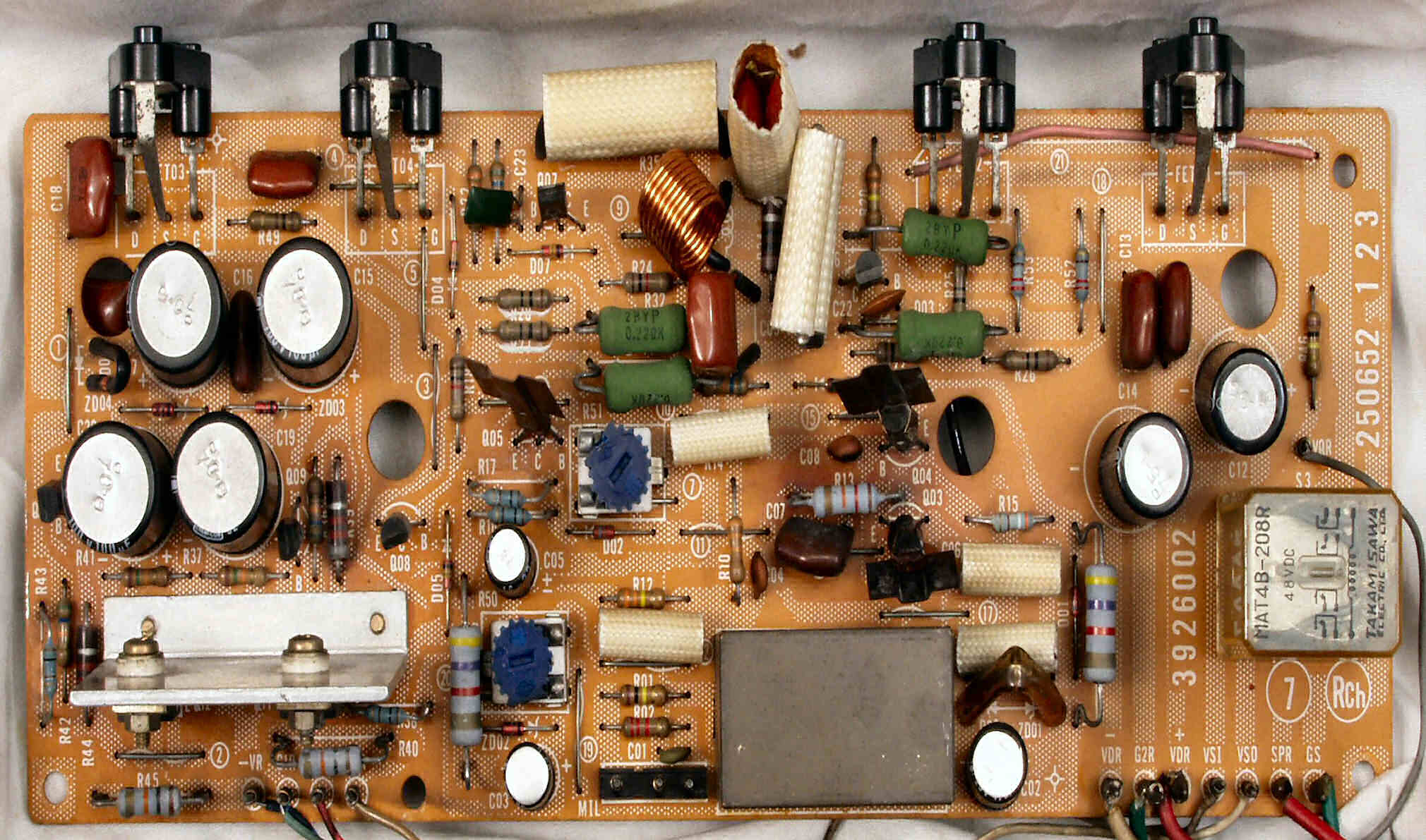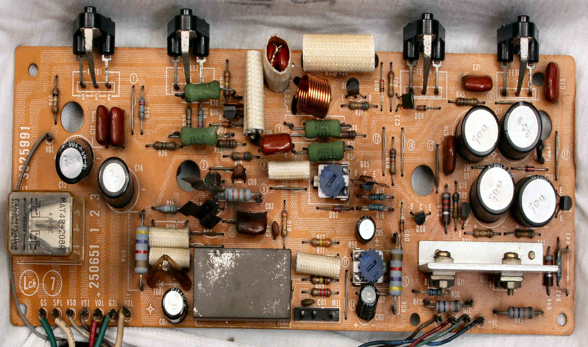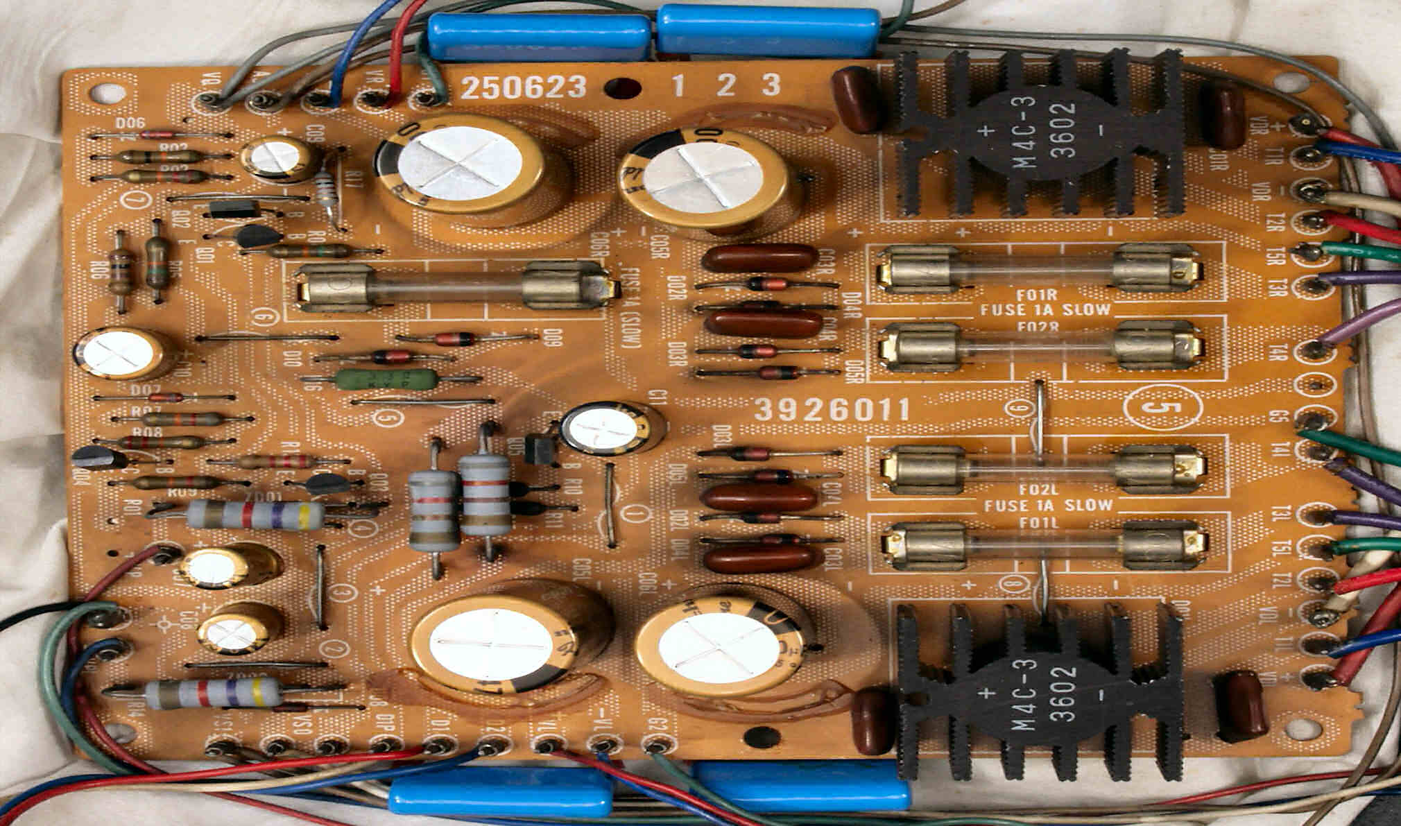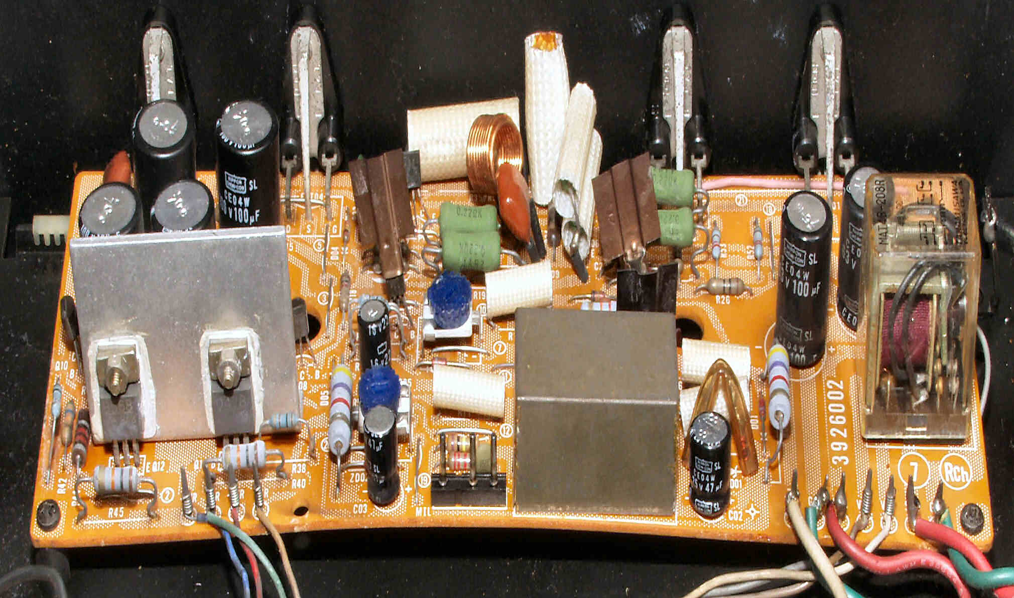 TR(トランジスター)5個、フューズ入り抵抗も全部交換 電解コンデンサー9個交換