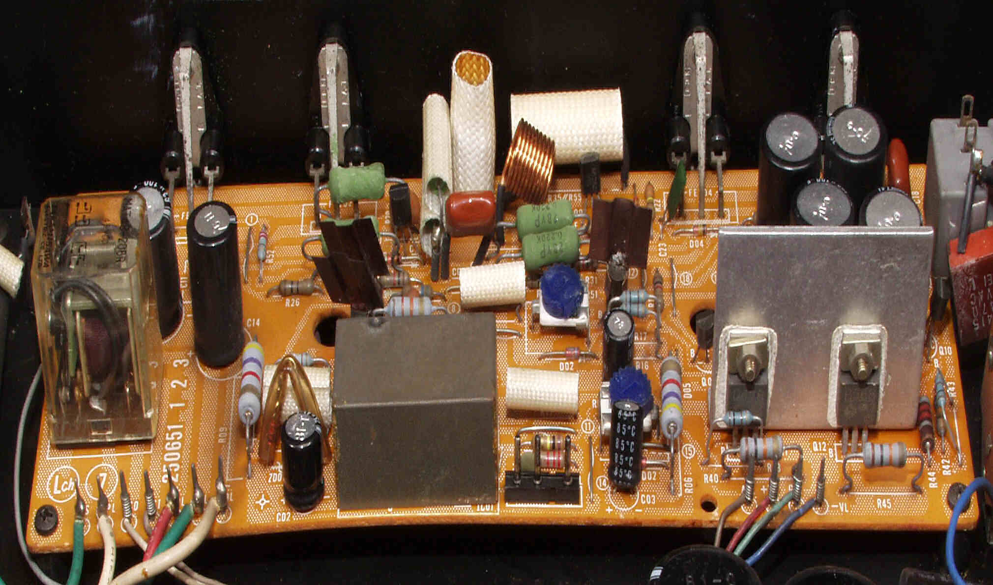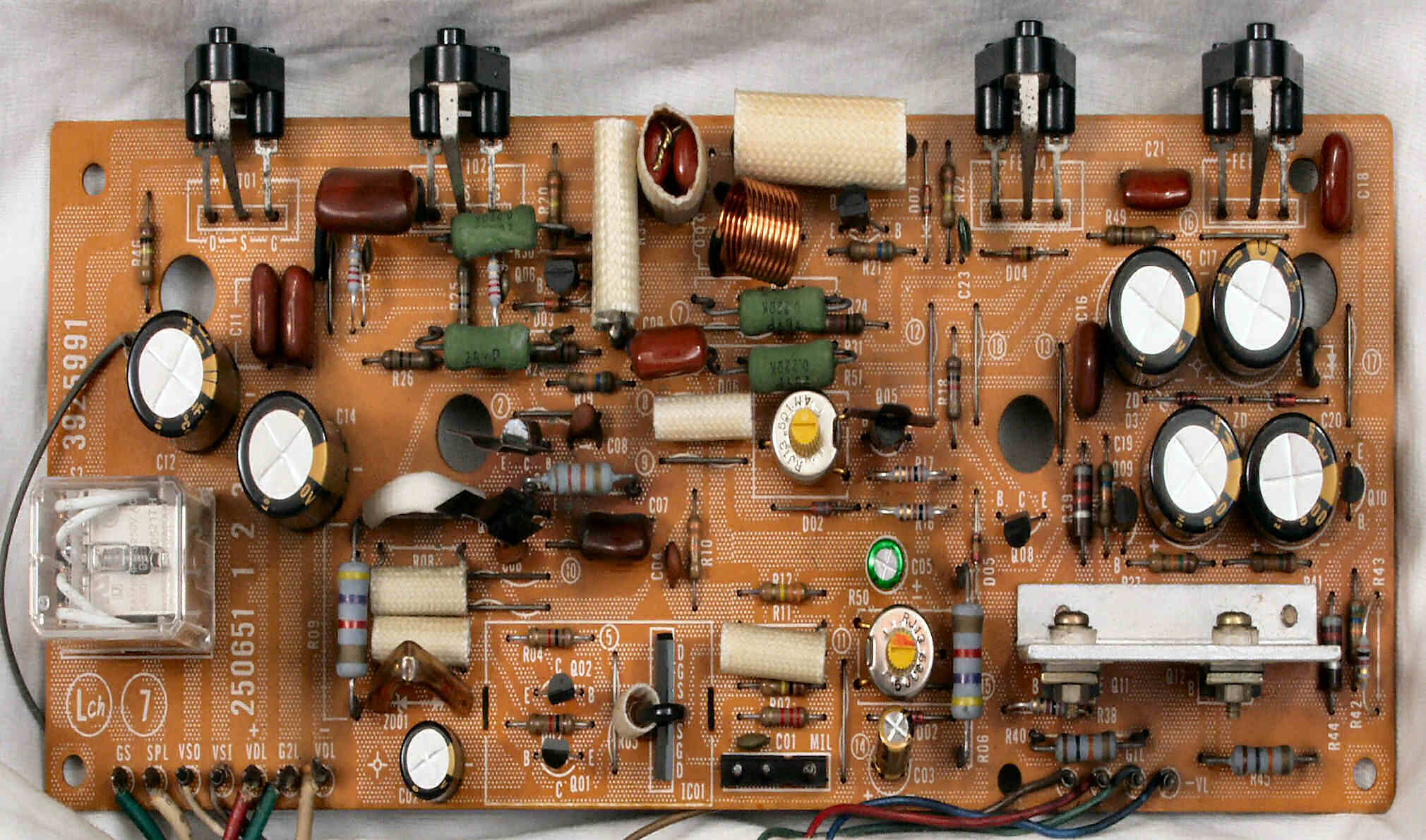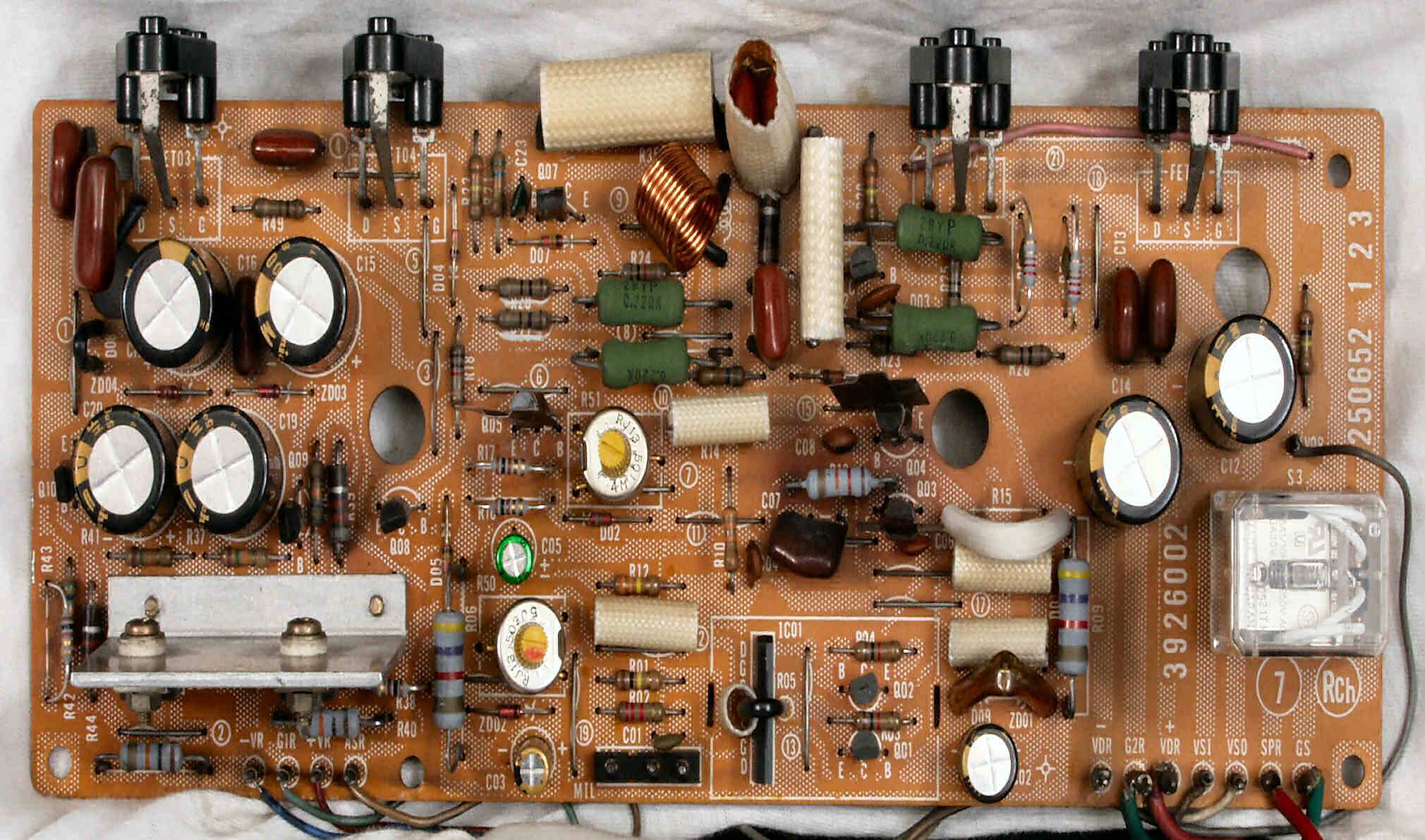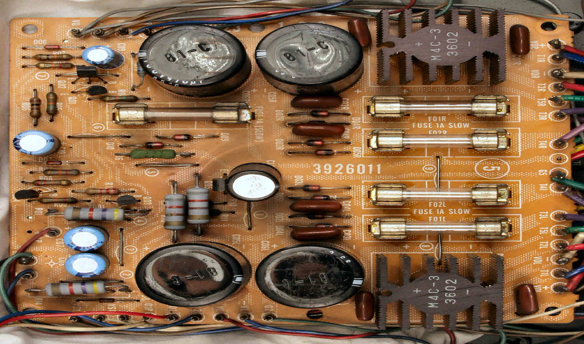 TR(トランジスター)5個、フューズ入り抵抗も全部交換 電解コンデンサー9個交換