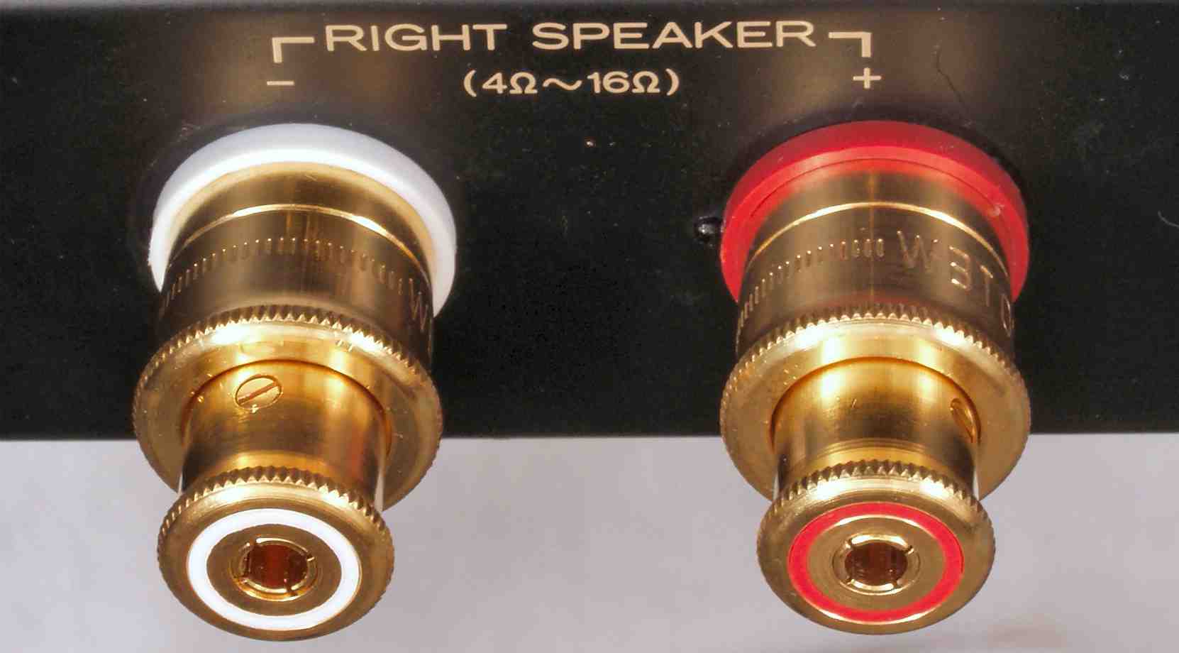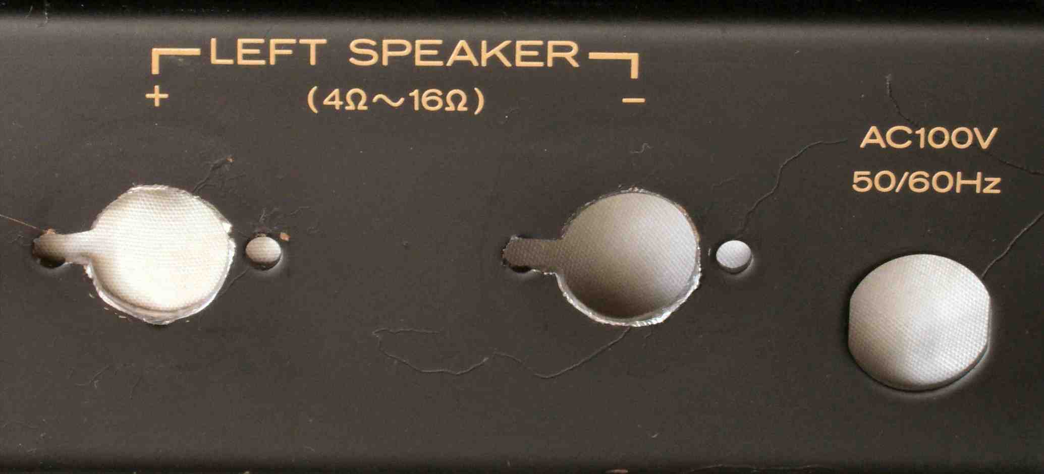 C6H. 修理後 L−SP端子への接続 WBTのネジ止めを生かし、ネジ止め接続+半田接続のW配線にした