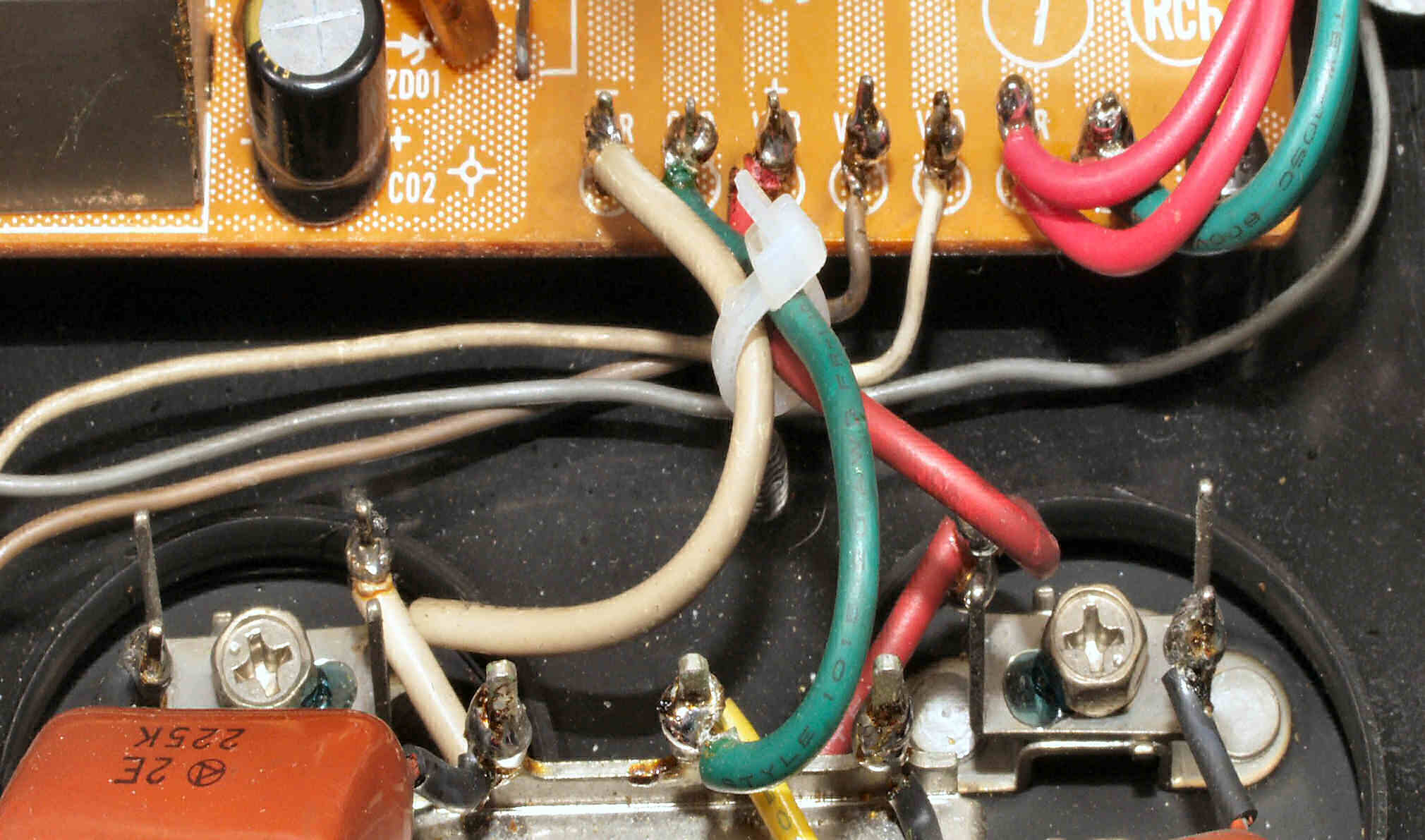 C7E. 修理前 電源基板R側ラッピング