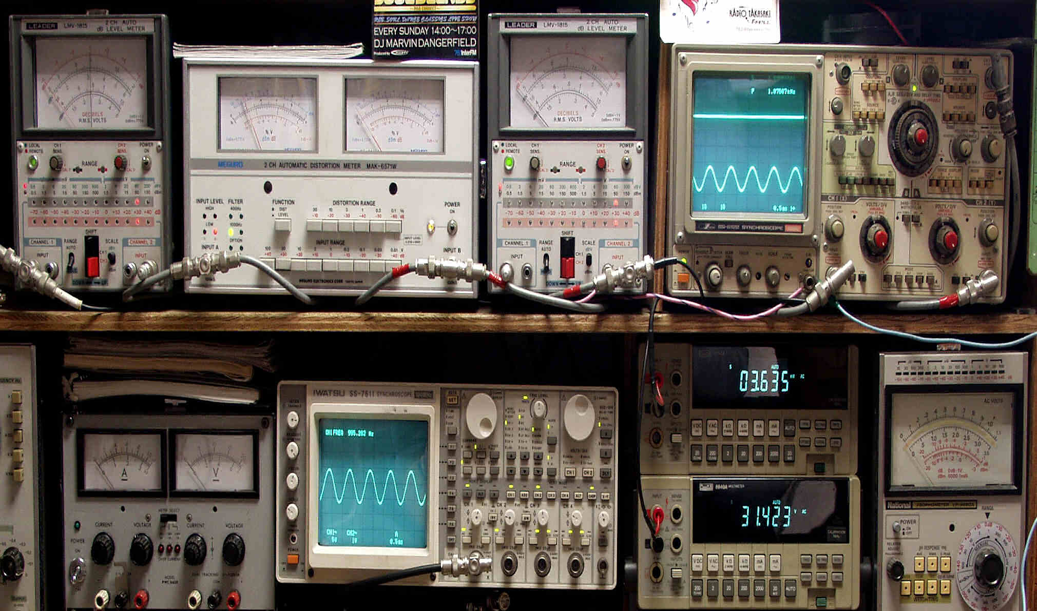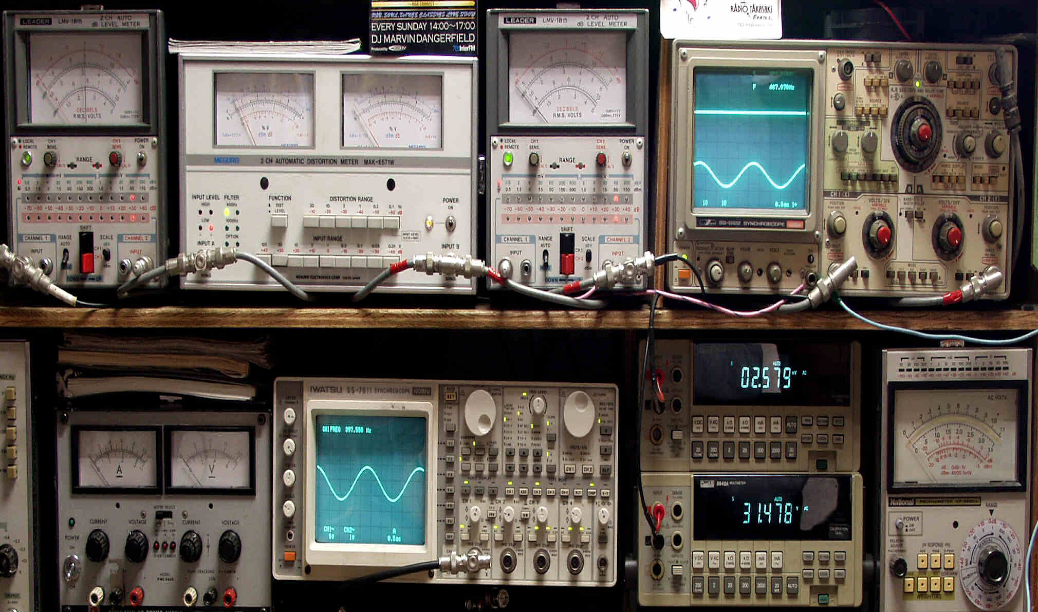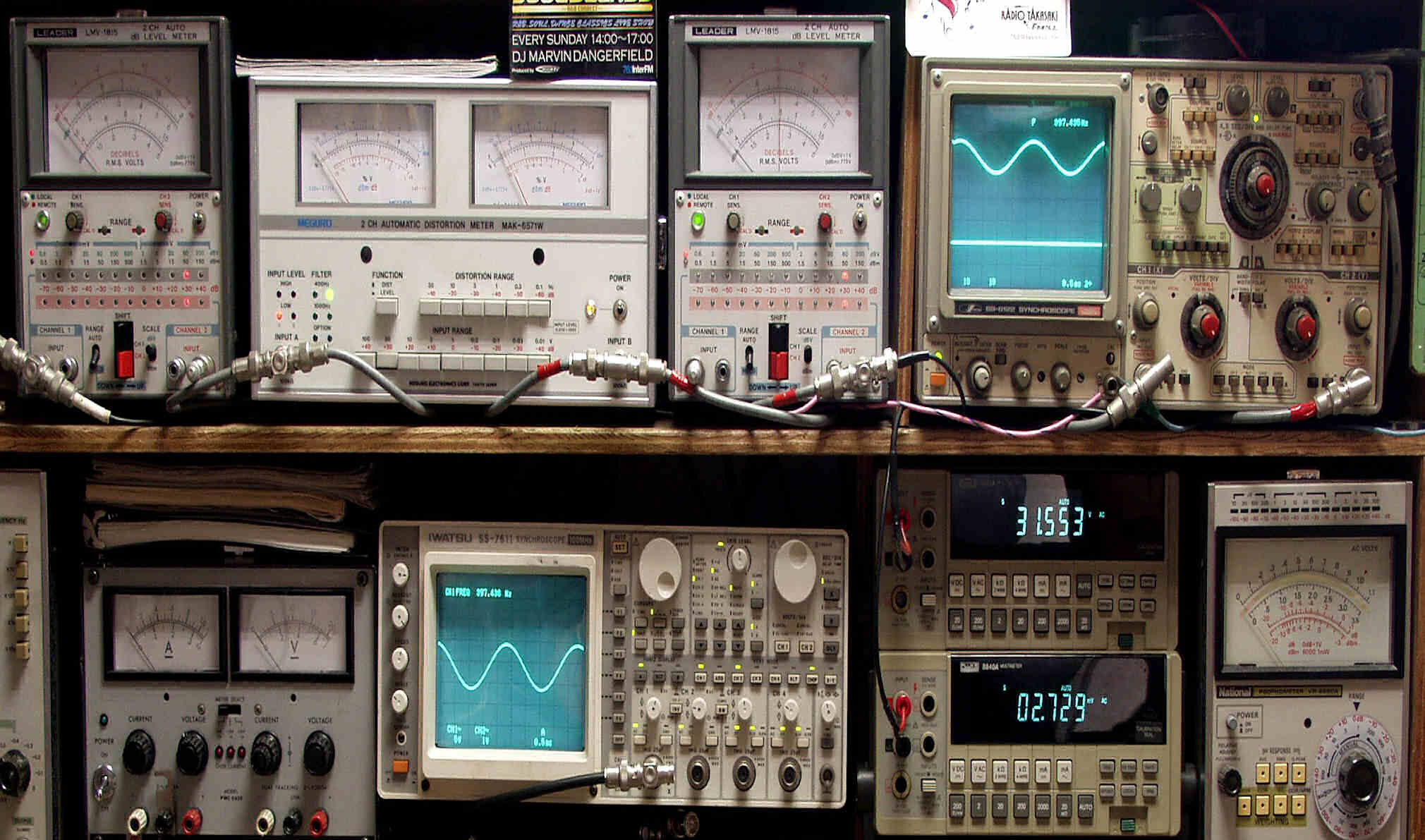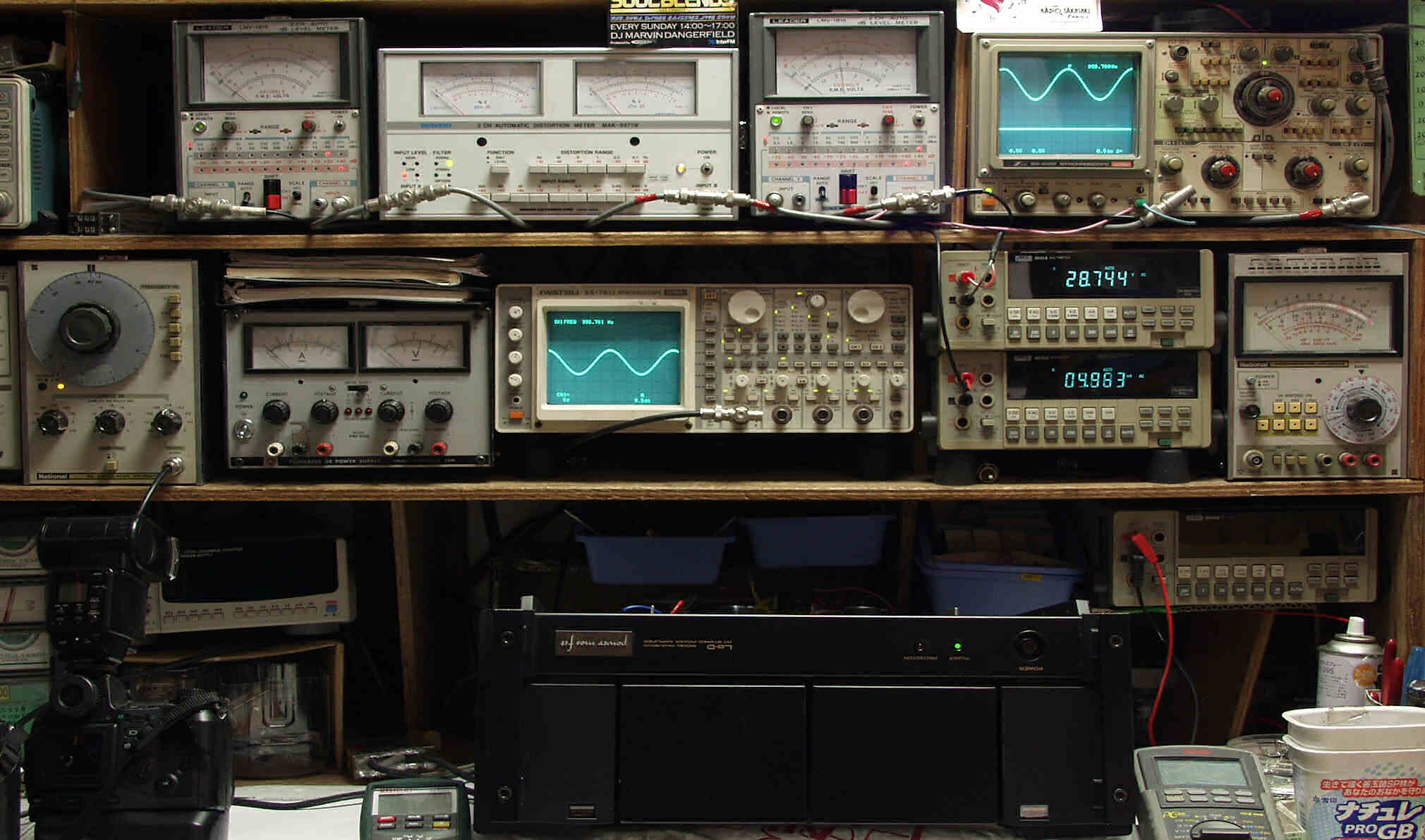 上段中左 歪み率計=出力の歪み率測定 左メータ=L出力、右メータ=R出力