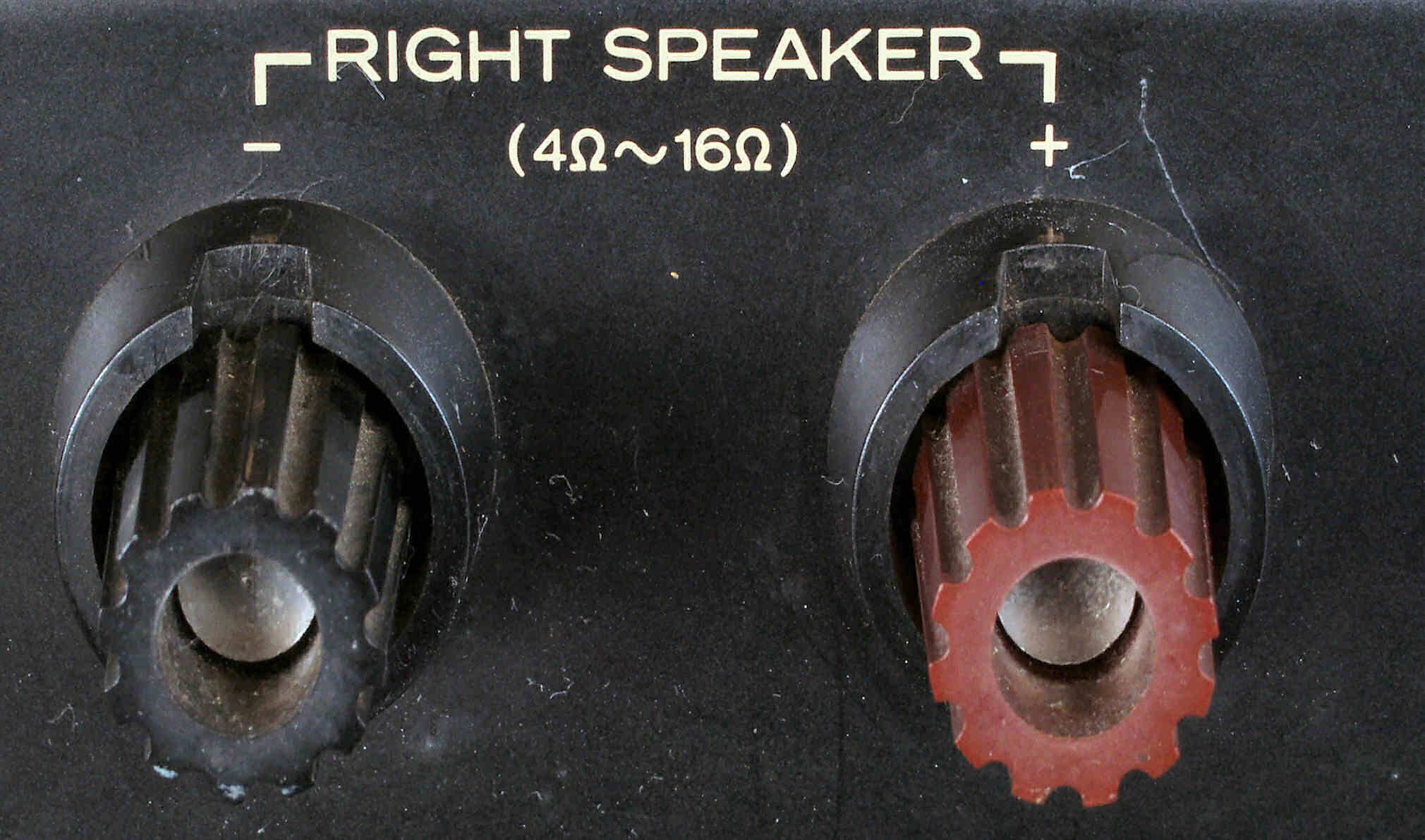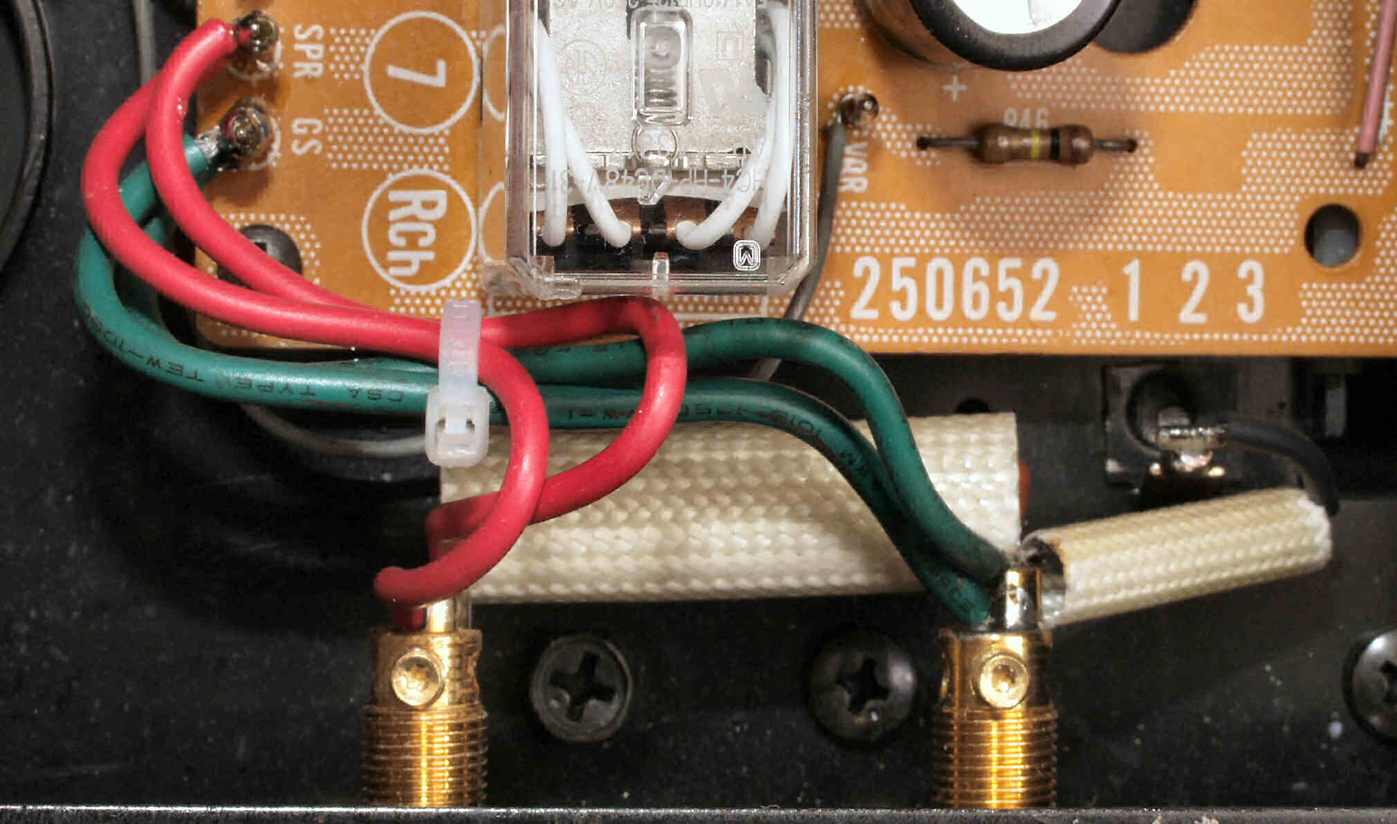 C6G. 修理後 R−SP端子への接続 WBTのネジ止めを生かし、ネジ止め接続+半田接続のW配線にした