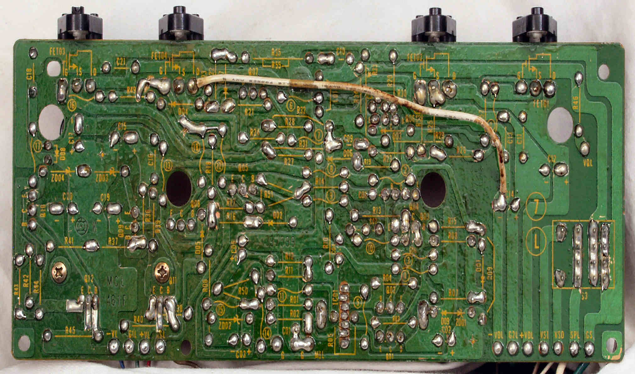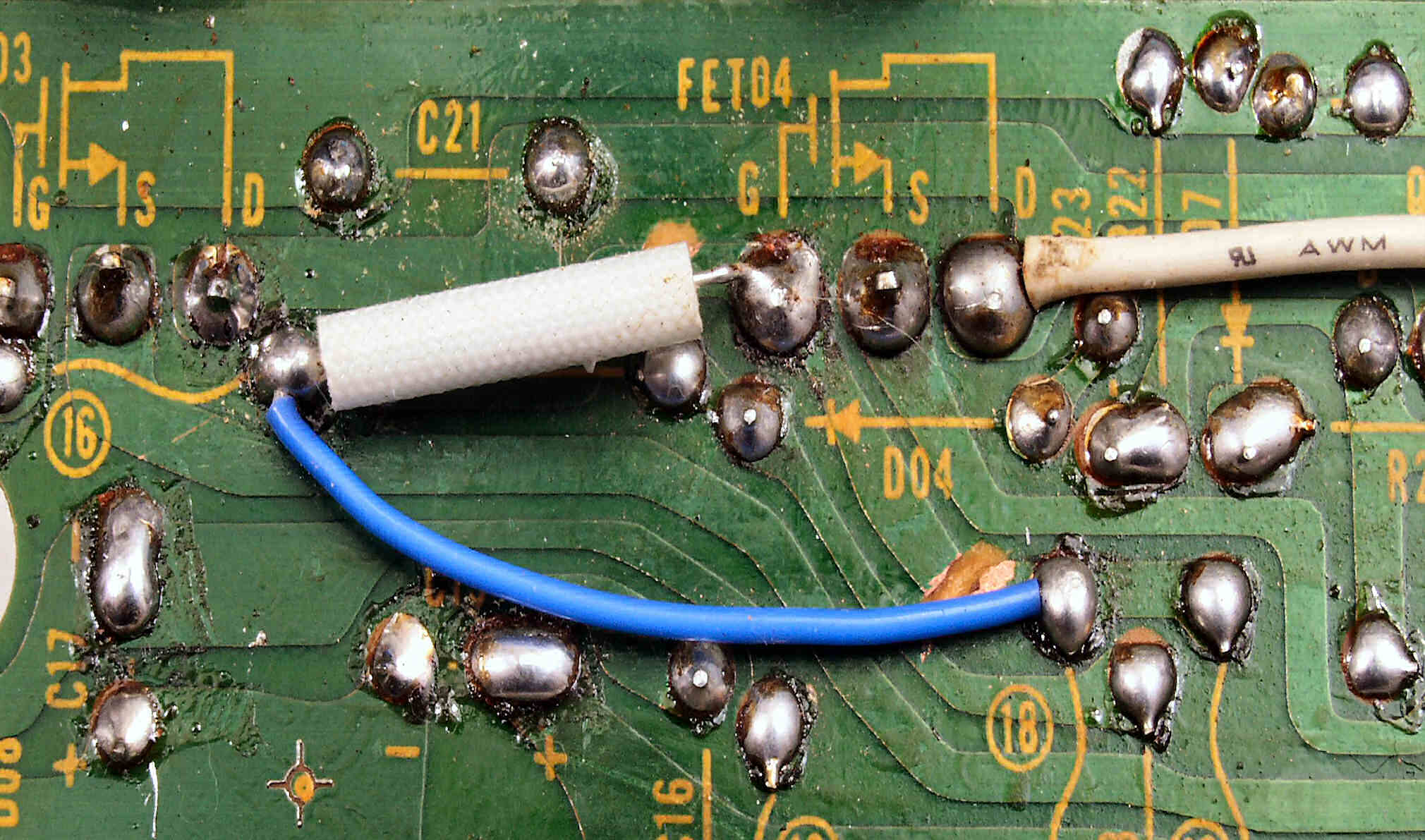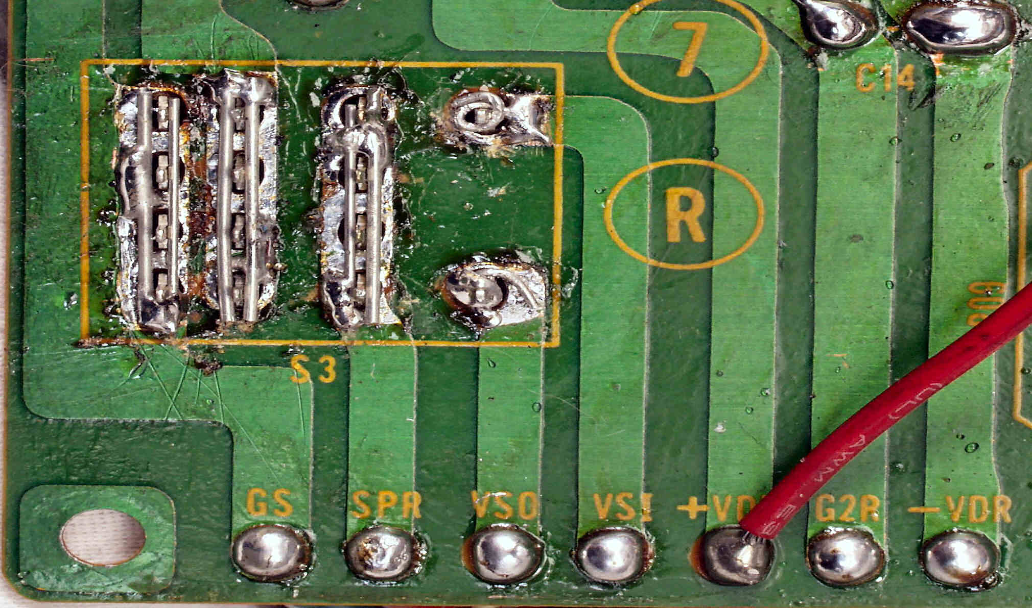 C2C2. 修理前 Rドライブ基板裏、改造された所。。
