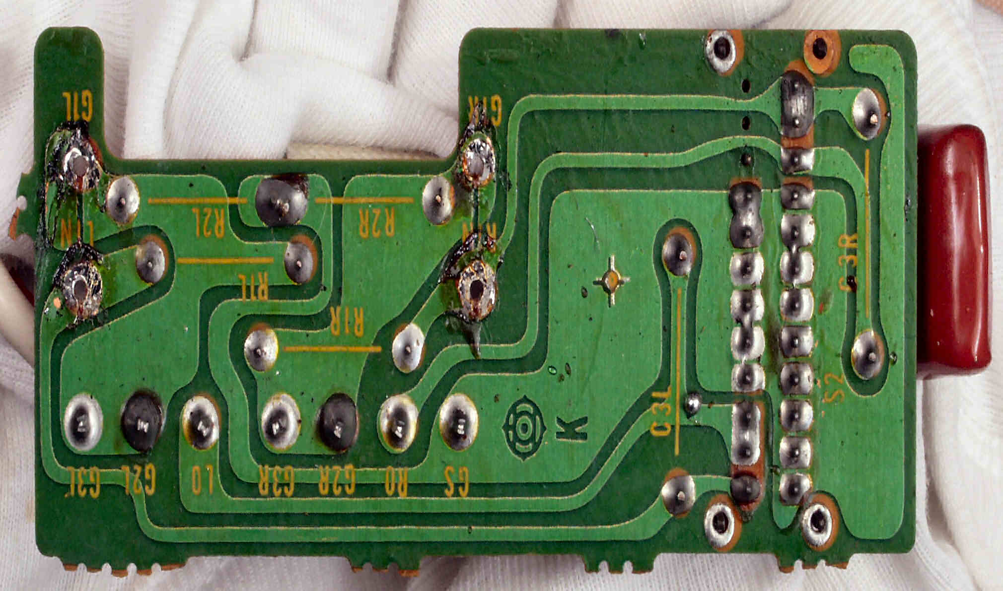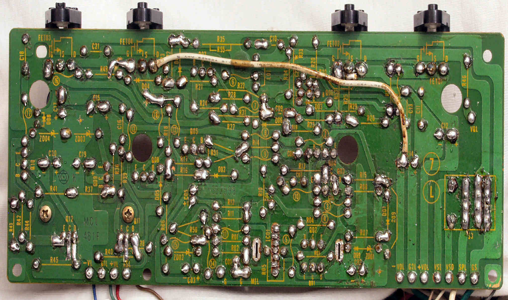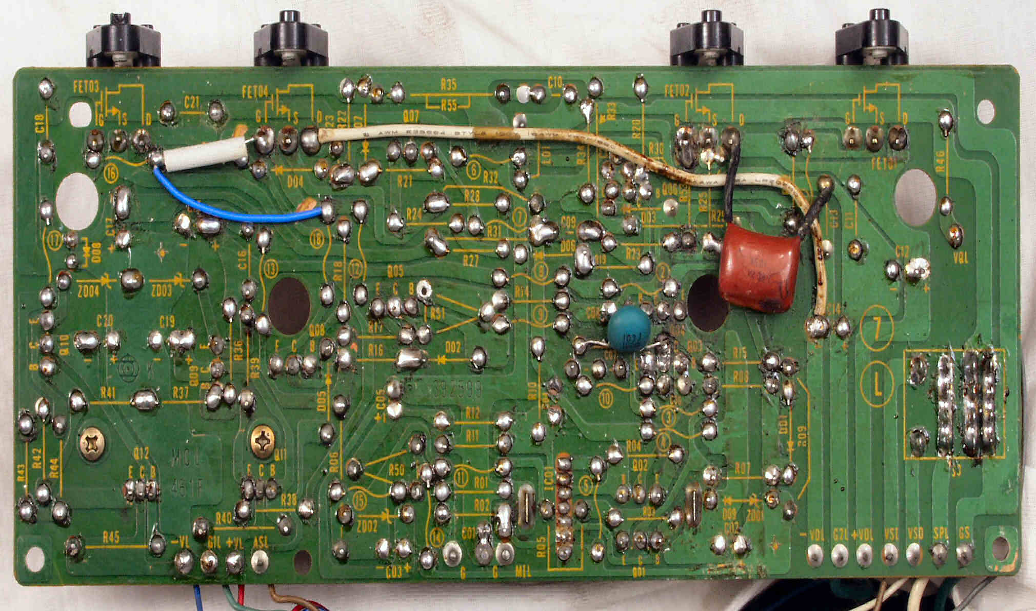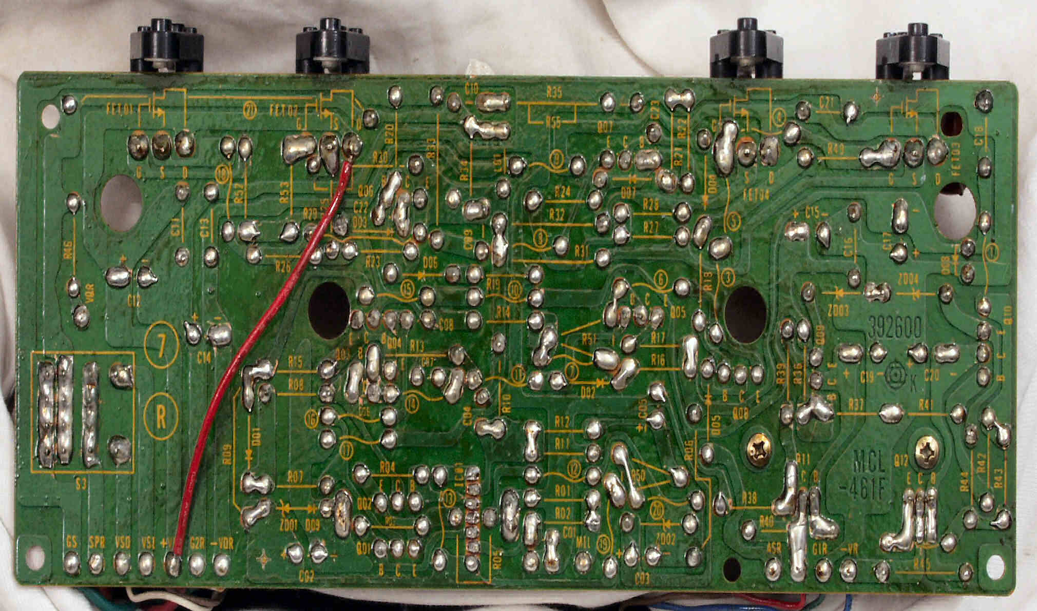 C2C2. 修理前 Rドライブ基板裏、改造された所。。