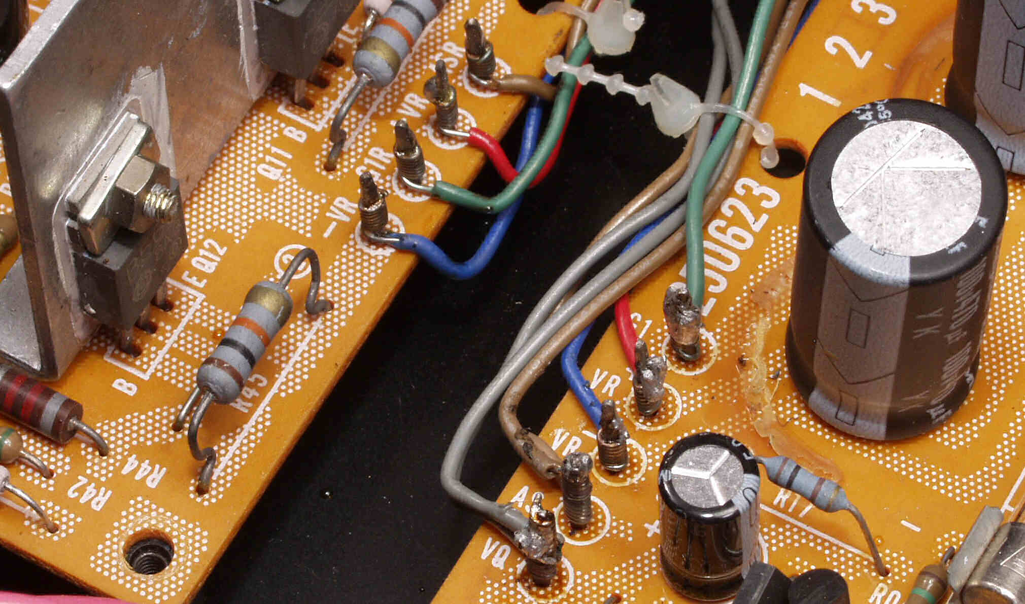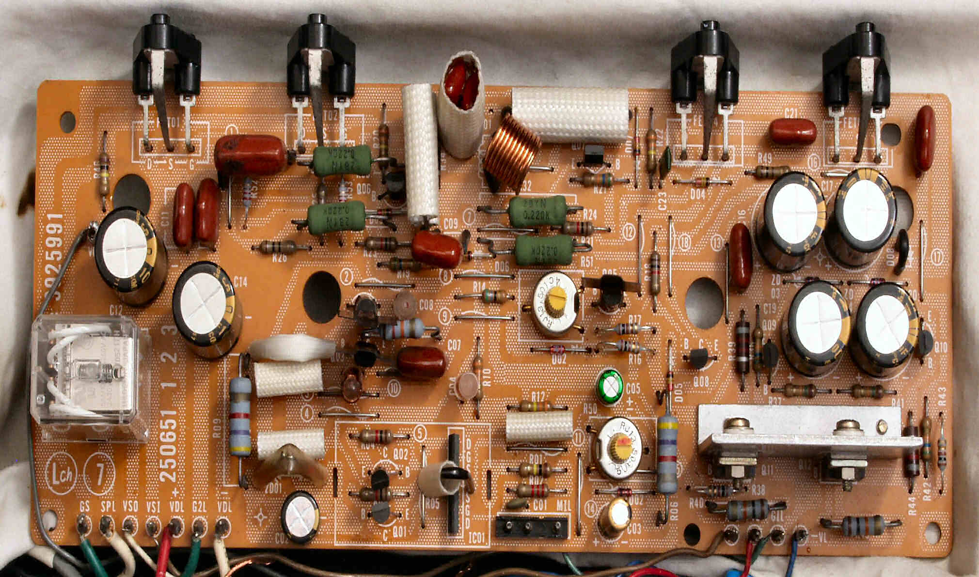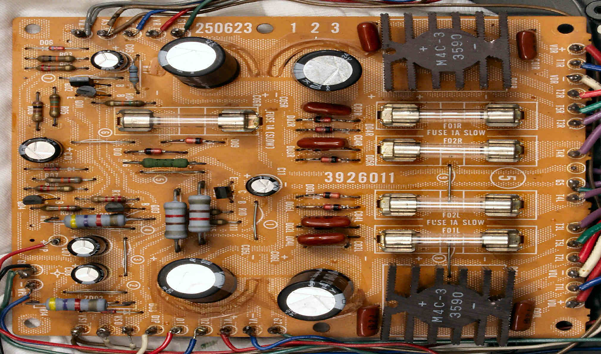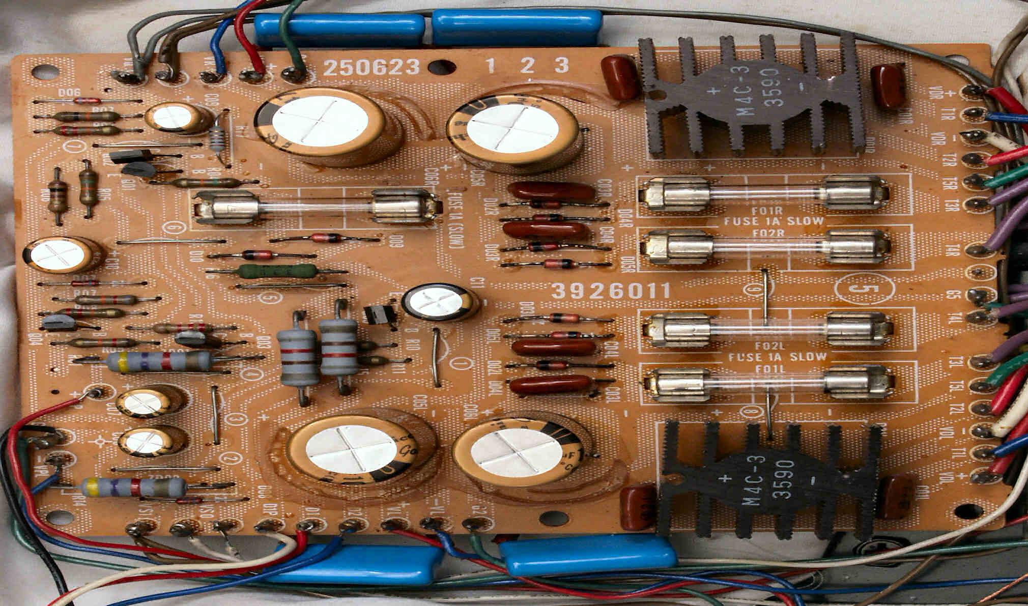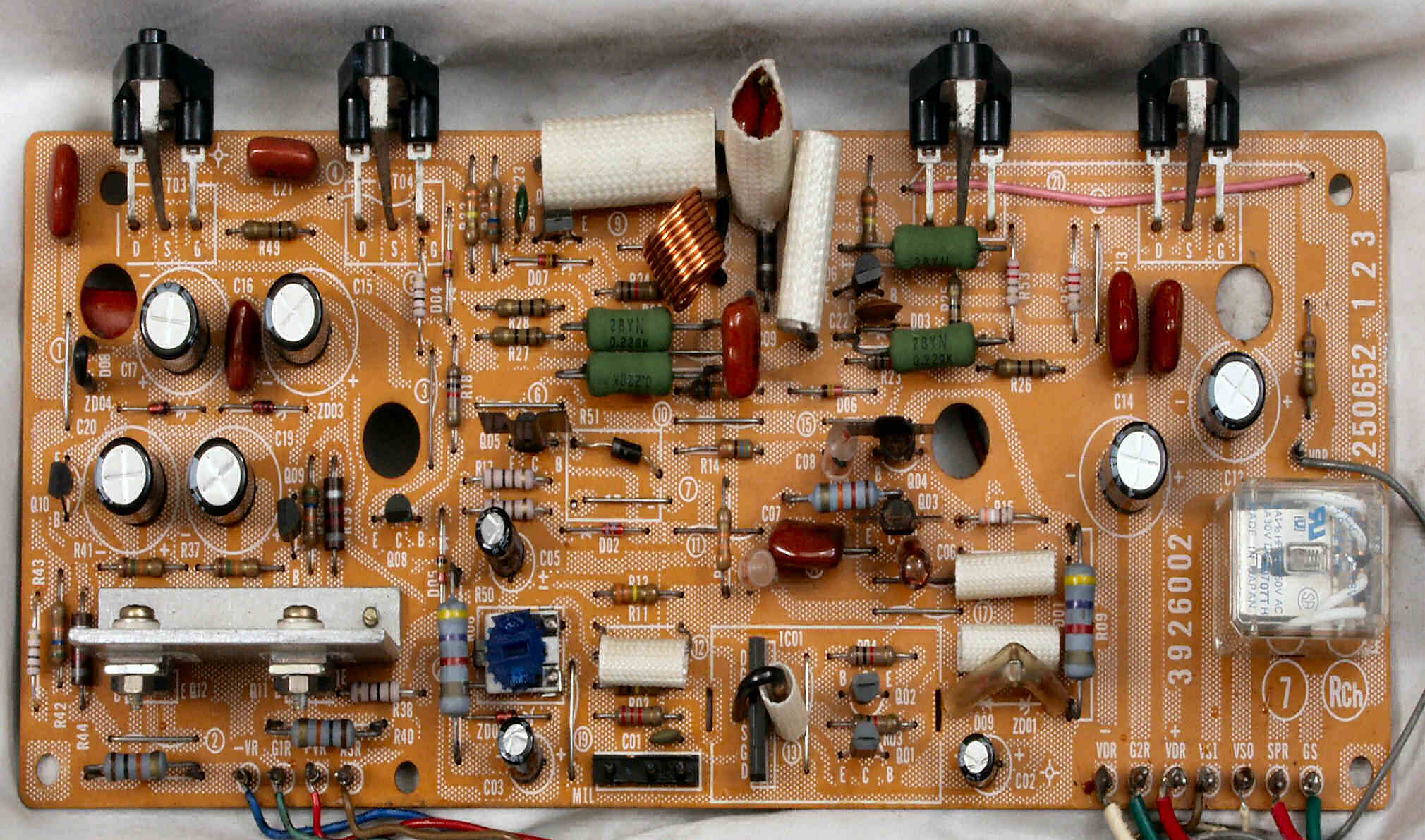 TR(トランジスター)5個、フューズ入り抵抗も全部交換 電解コンデンサー9個交換