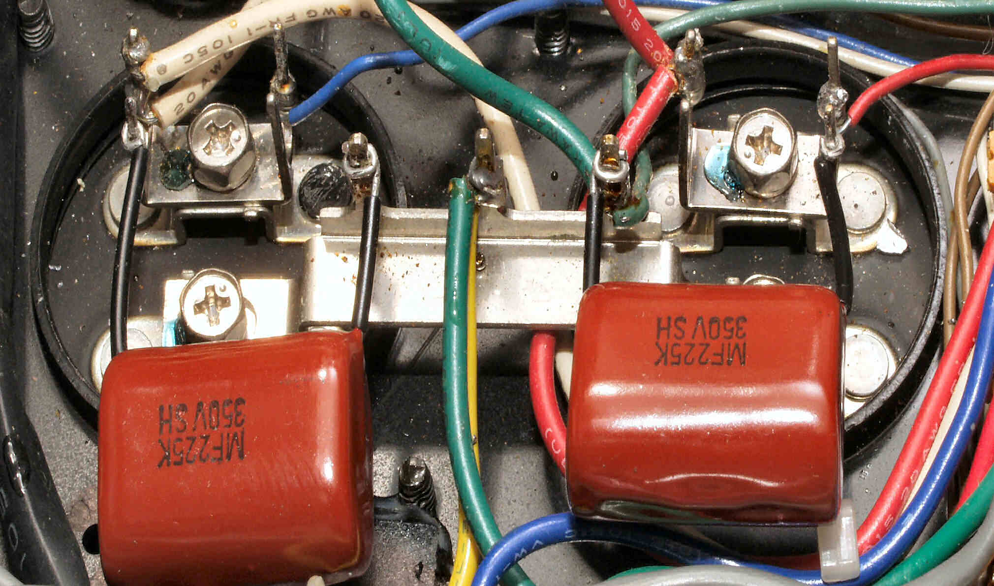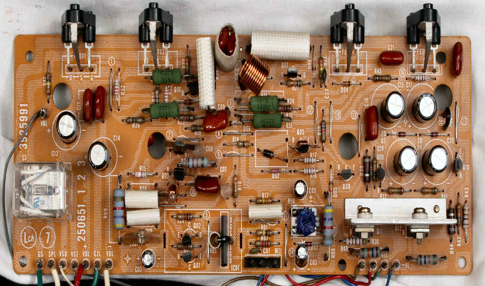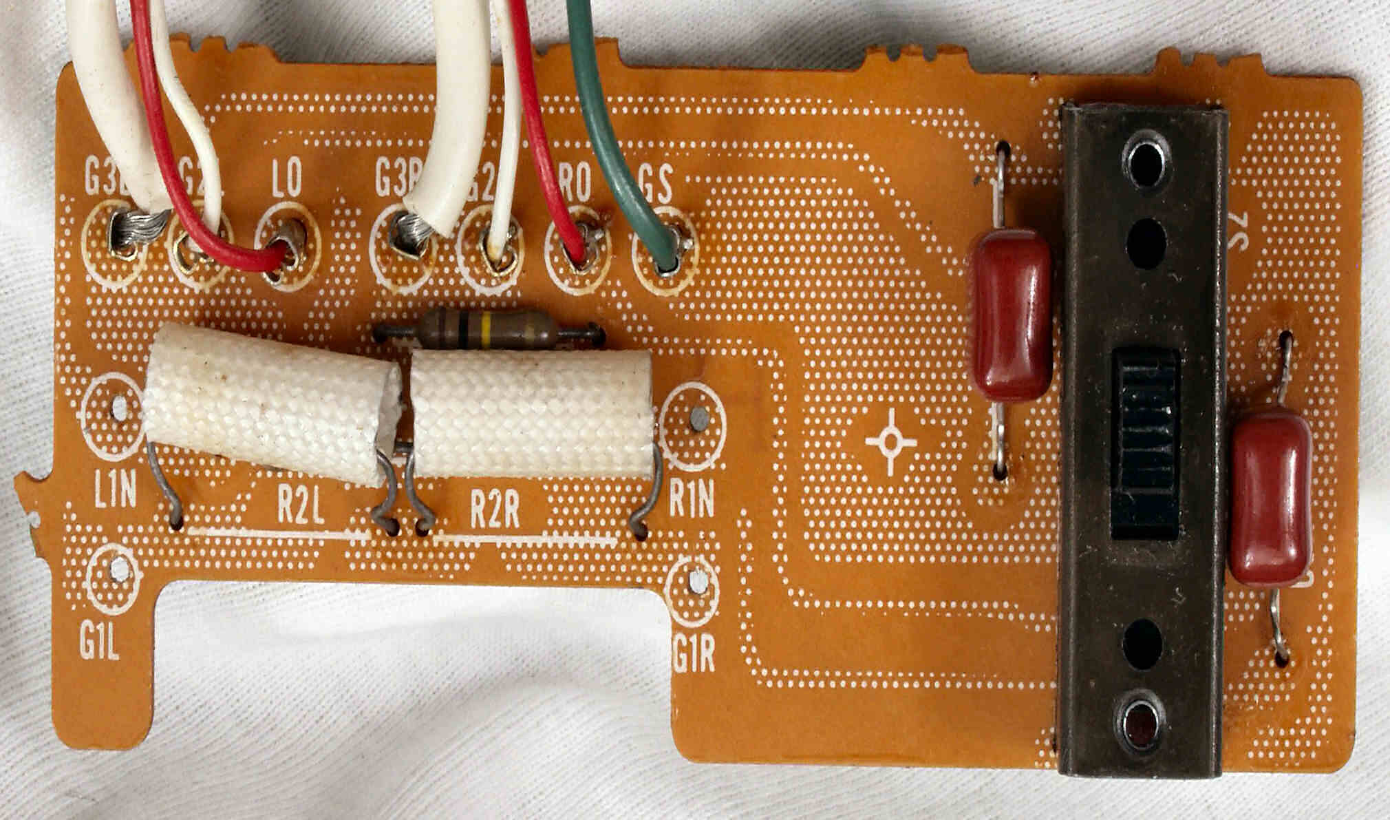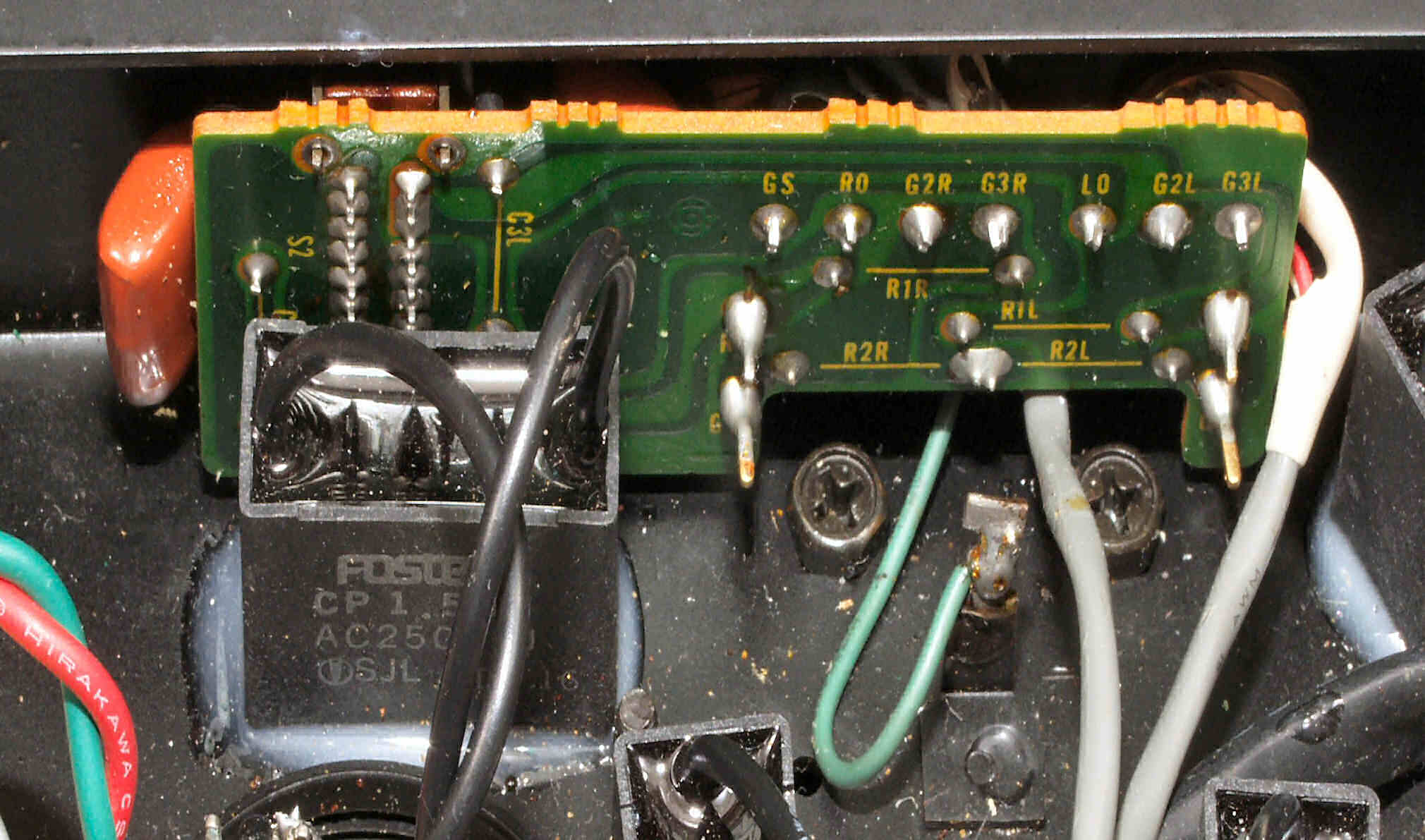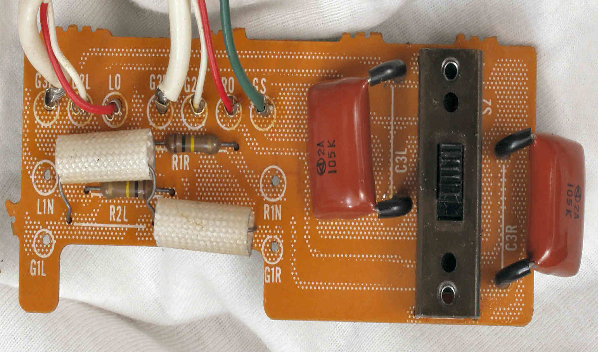 C5B. 修理前 入力RCA端子基盤、 フイルムコンデンサー2個交換