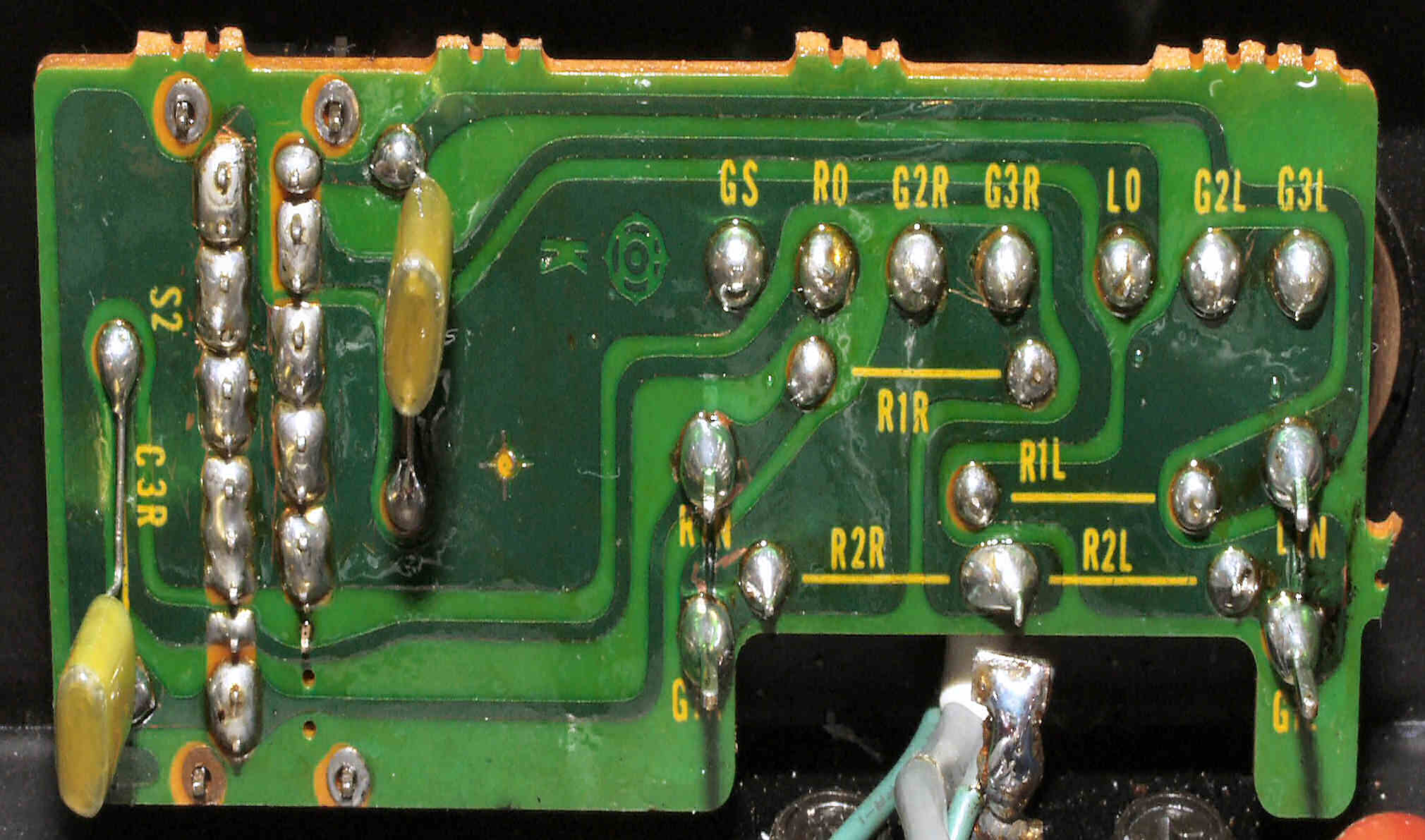C2C1. 修理前 Rドライブ基板裏、交換されたSP接続リレー、基板用が入手難名為、汎用を取り付ける為、基板加工してある。
