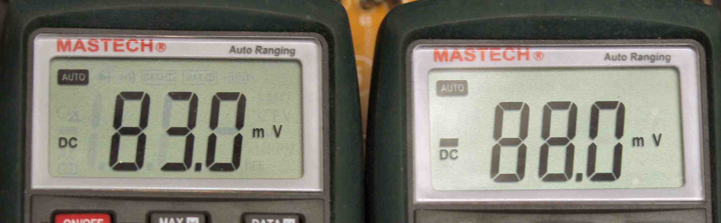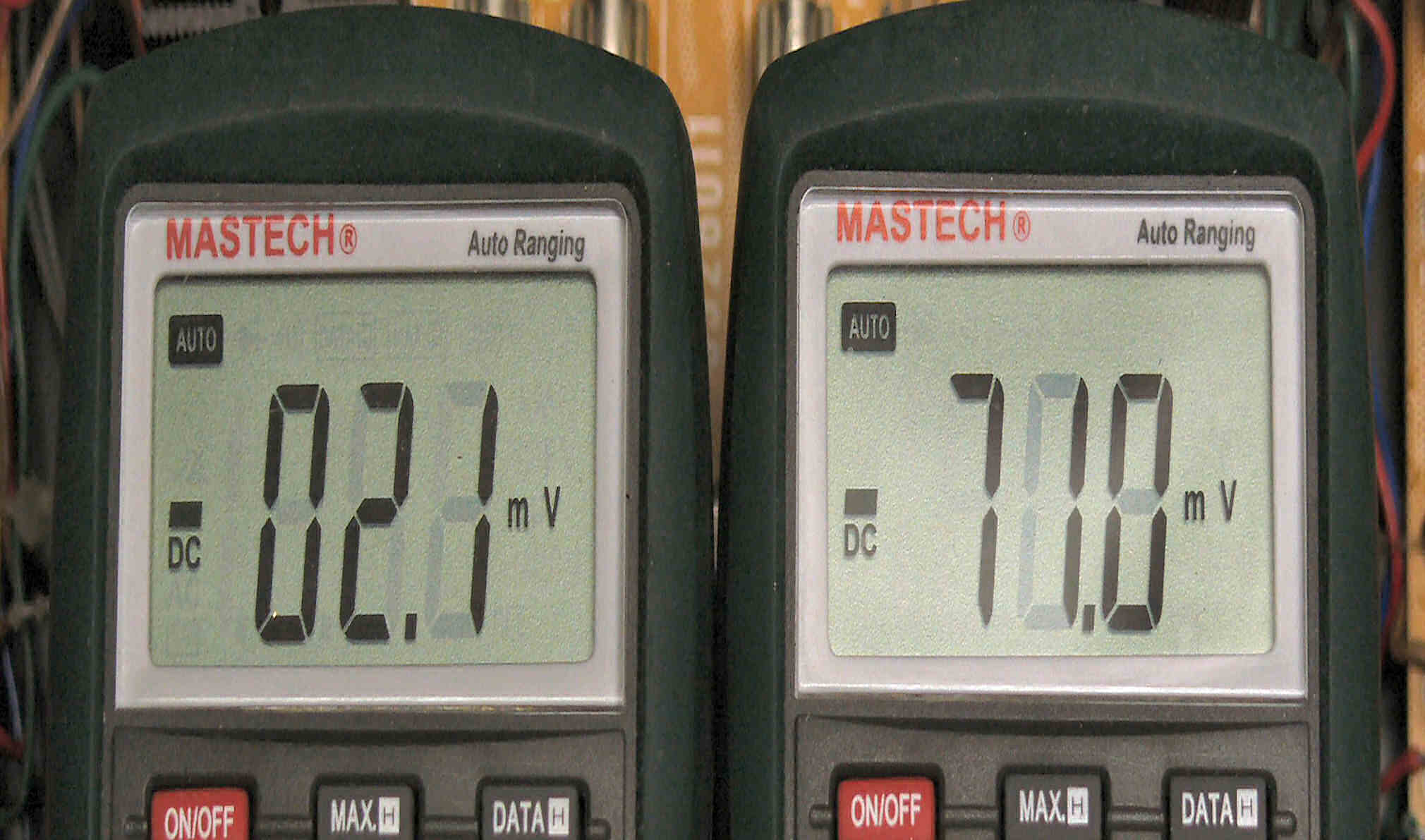 下段中右上 デジタル電圧計=R出力電圧測定 下段中右下 デジタル電圧計=L出力電圧測定
