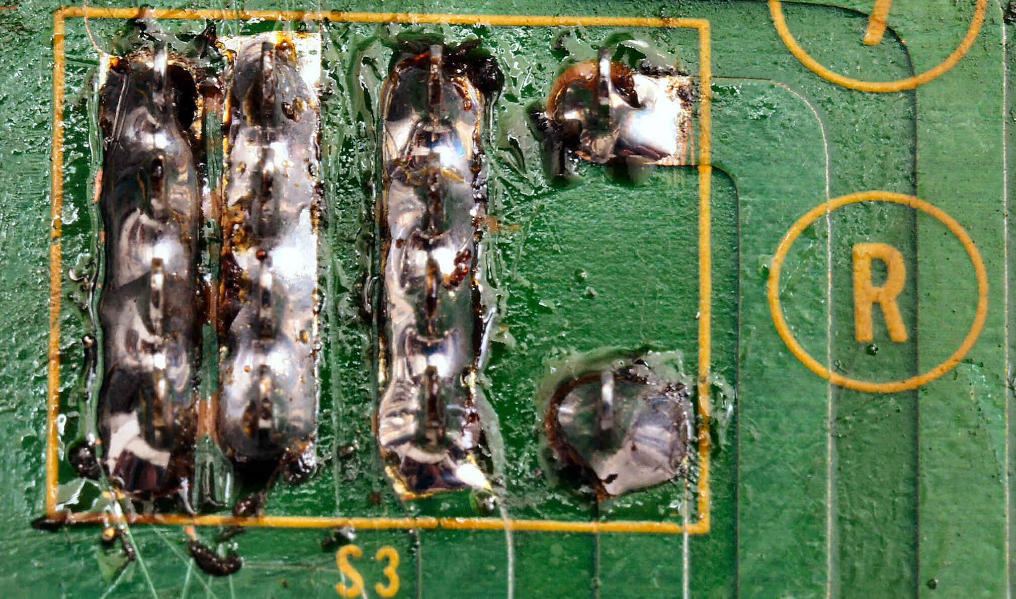 C7F. 修理後 電源基板R側ラッピング ハンダを浸み込ませる