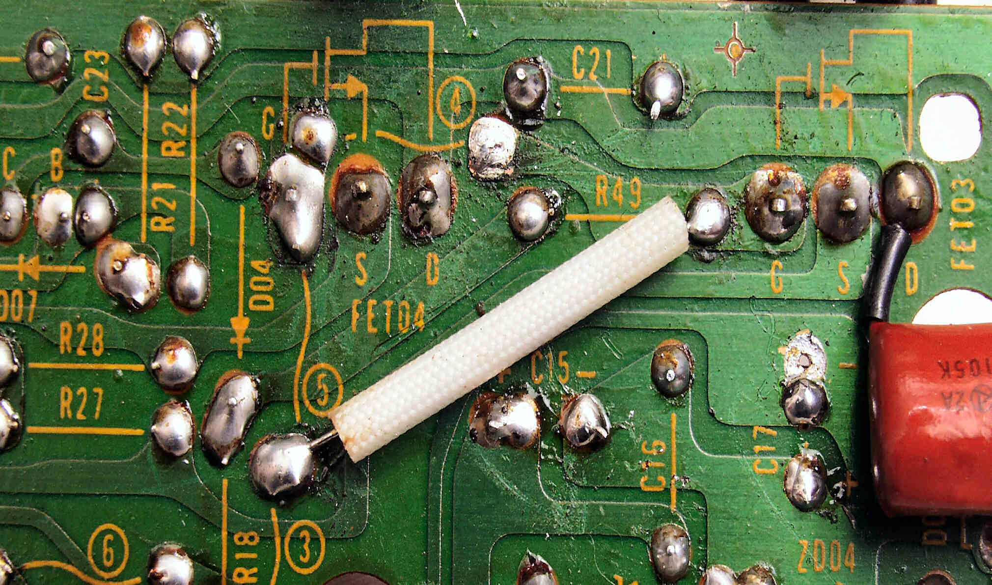 C1C3. 修理前 Rドライブ基板裏、改造された所。