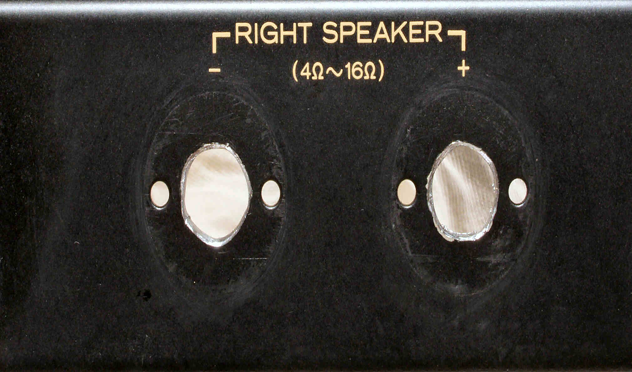 よって、AMPのシャーシにSPの線(アース側)や入力のRCAプラグのアース側も接続してはいけません