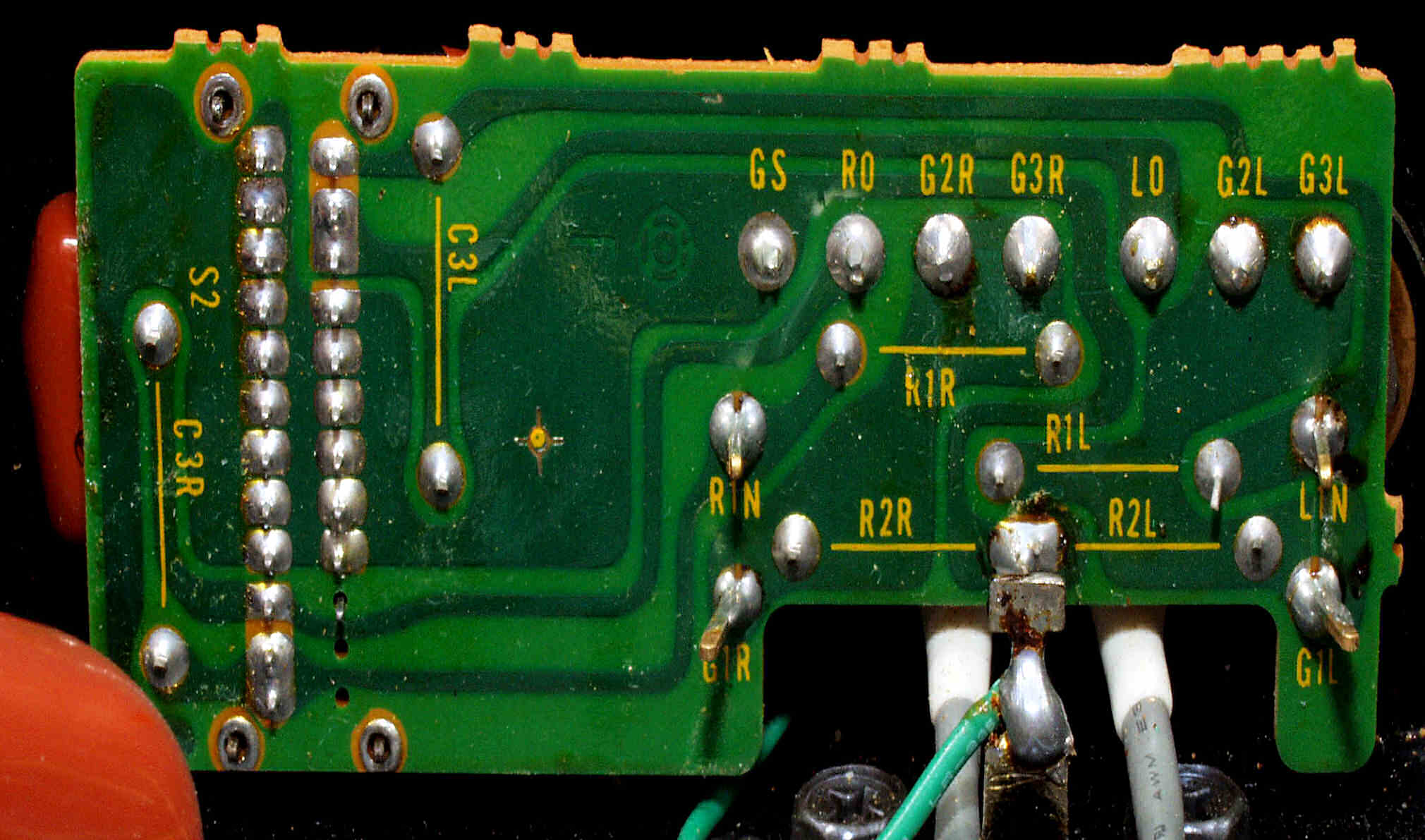 | C67. 修理(半田補正)後 RCA端子基板裏 半田を全部やり直す フイルムコンデンサー2個交換、2個増設 |