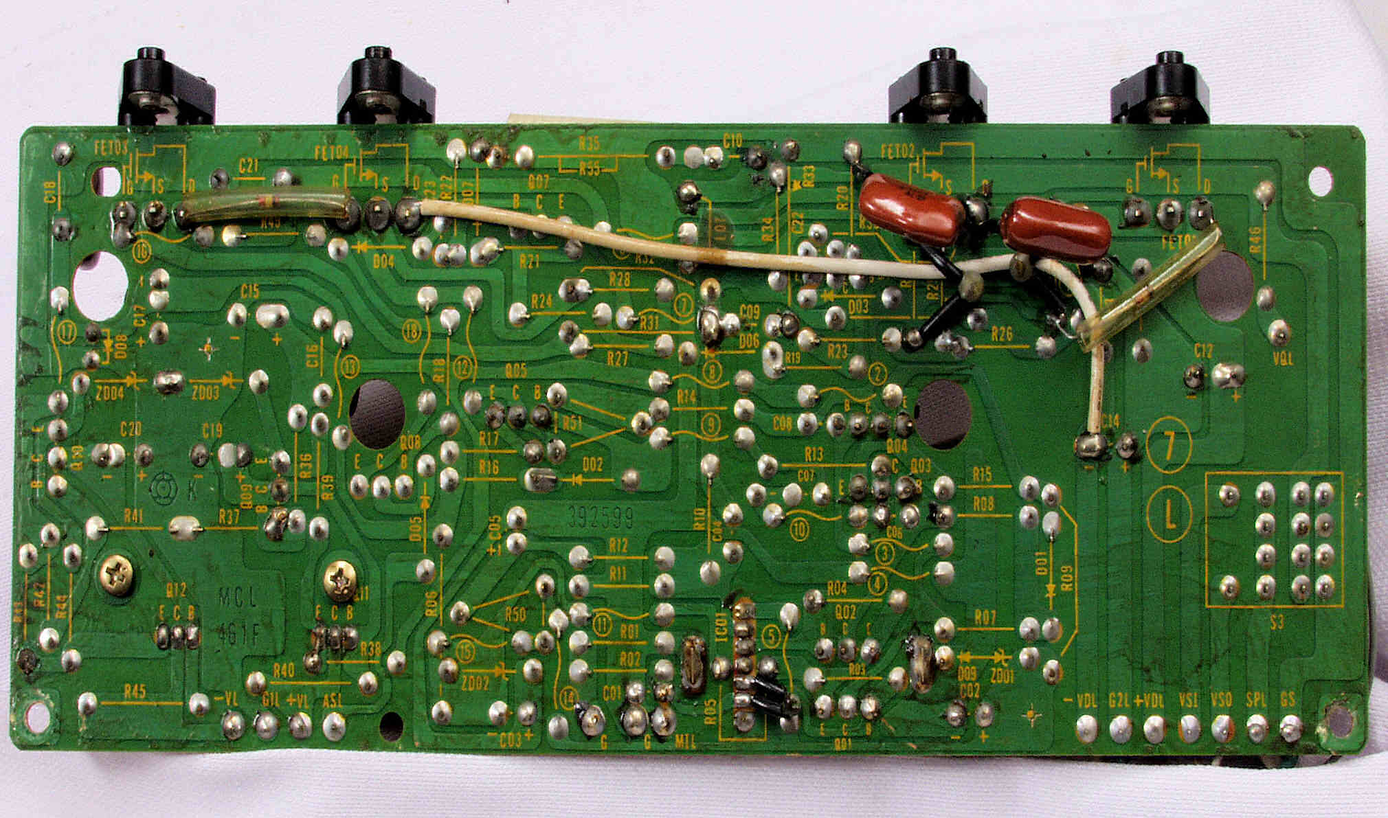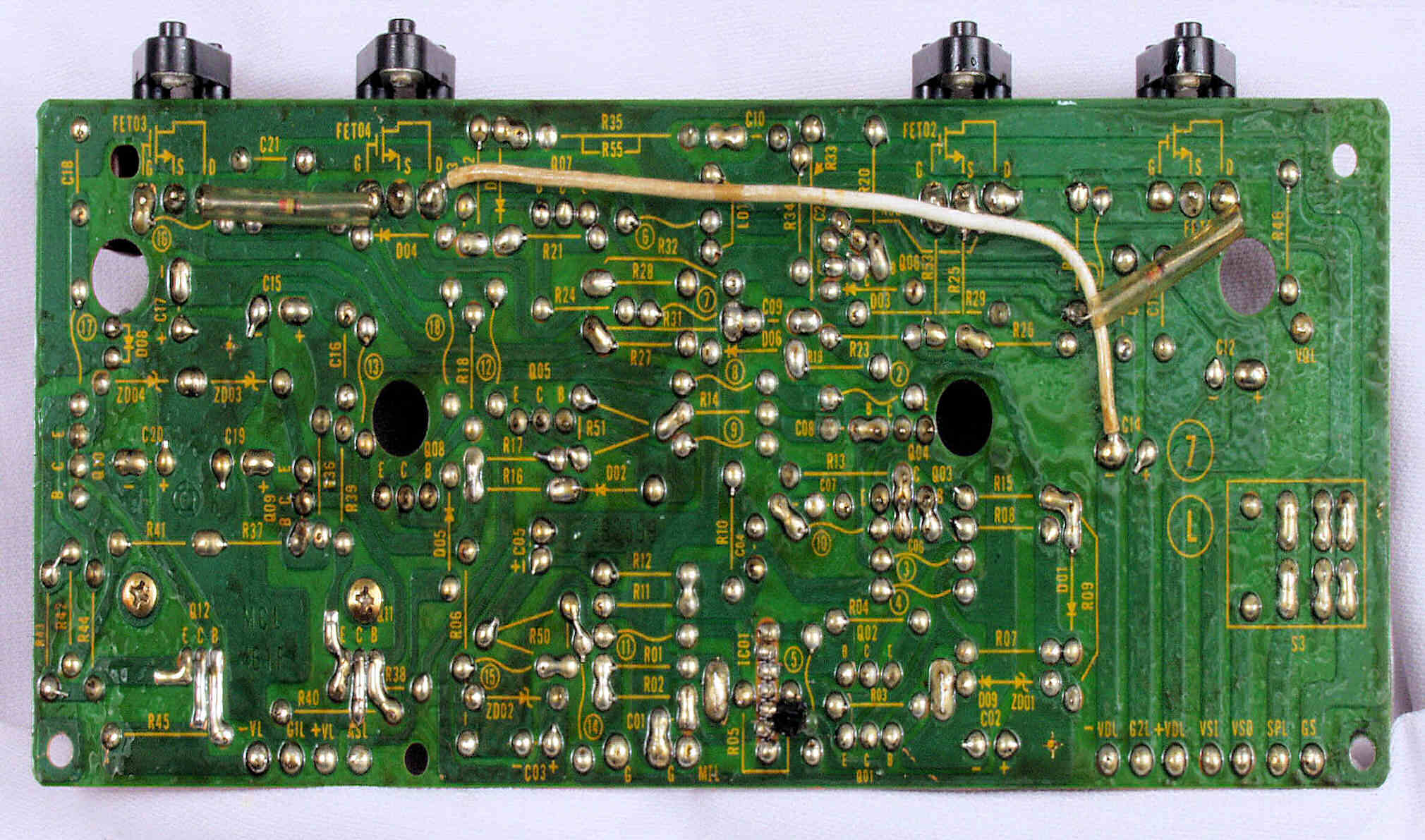 | C24. 修理(半田補正)後 L側ドライブ基板裏 半田を全部やり直す。 普通はこれで完成。 |